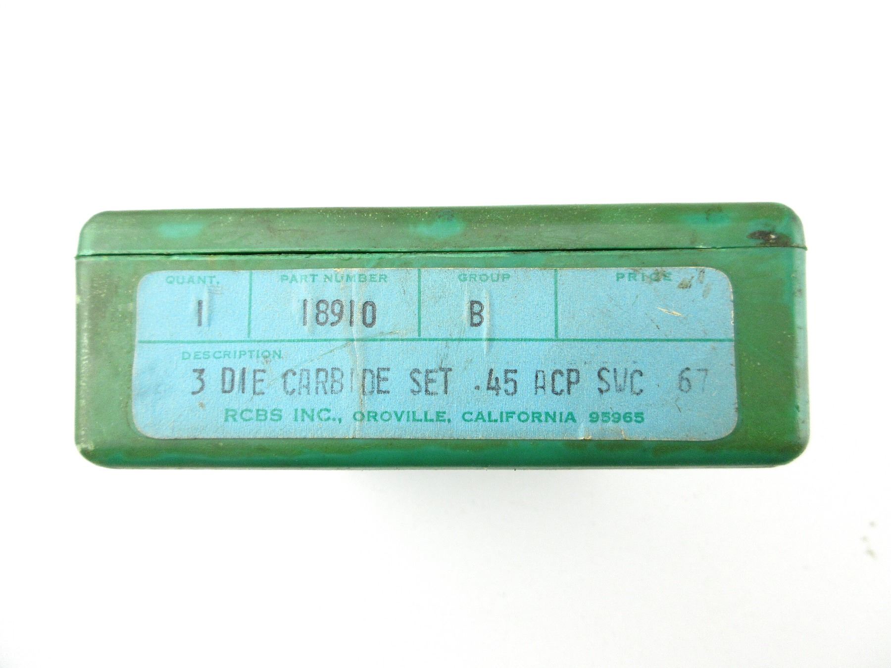 LOT INCLUDES; (1) RCBS .45 ACP 3-PIECE CARBIDE RELOADING DIES WITH #3 SHELL HOLDER & (1) REDDING .45 ACP 1-PIECE TAPER CRIMP DIE. SEE PHOTOS.