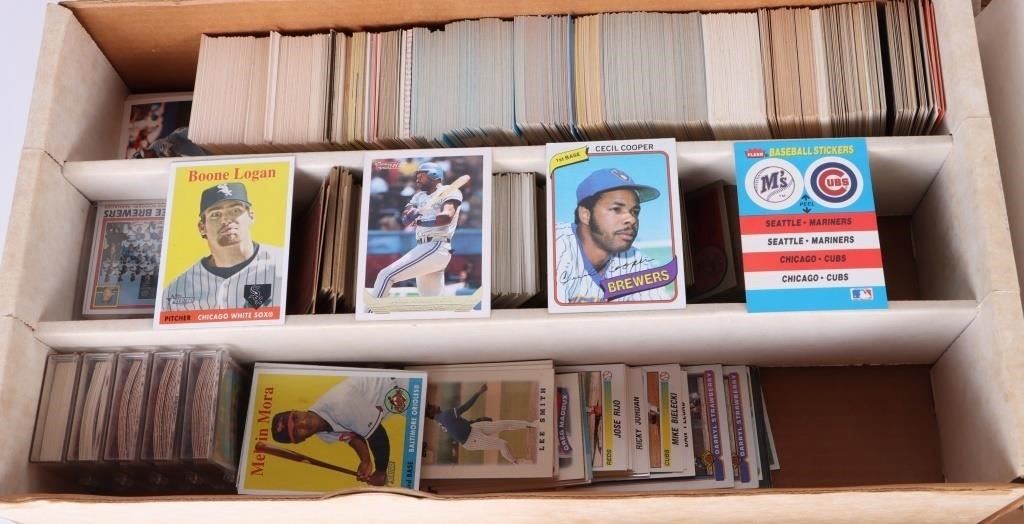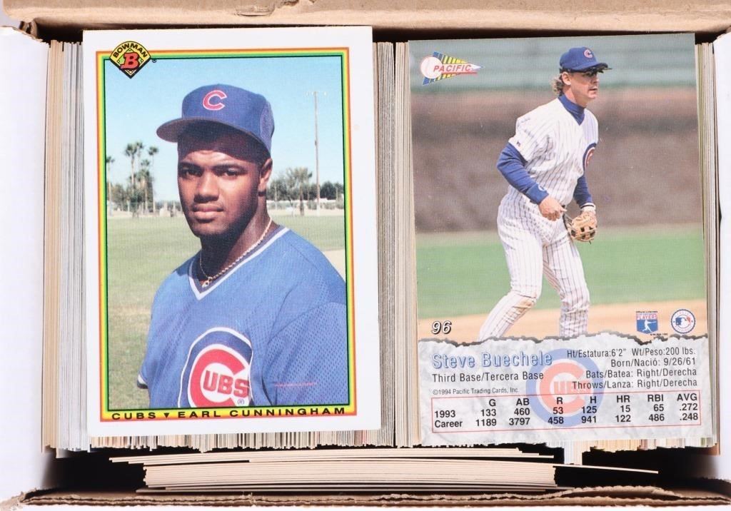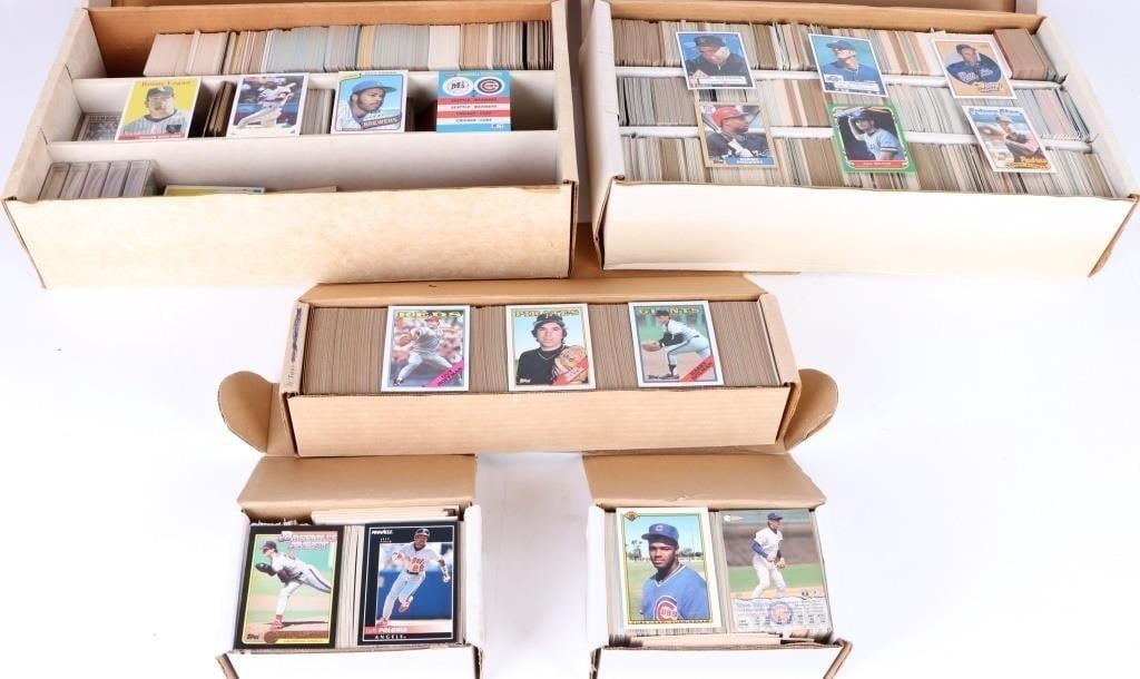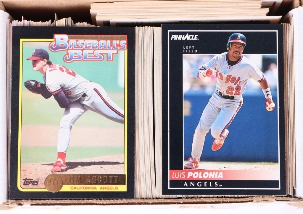 Assorted 80's and 90's baseball card sets to include one set of roughly 300 chicago cubs cards, one set of roughly 300 Los Angeles Angels cards, one compete Topps 1988 baseball set, one assorted set of roughly 1000 cards, and one assorted set of roughly 2000 cards.