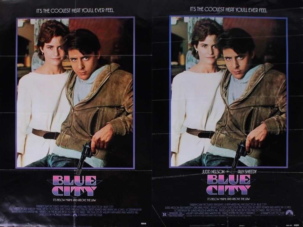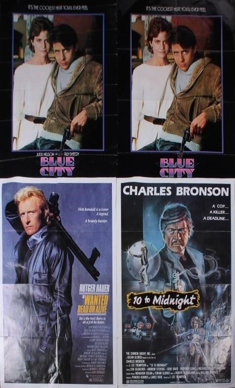 Assorted action movie original posters to include 1983 10 to midnight NSS 830032 original movie poster, two 1986 Blue City NSS 850086 Style B original movie poster, and 1986 Wanted Dead or Alive original movie poster.