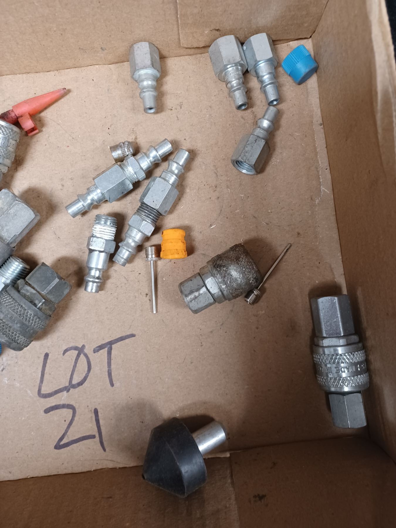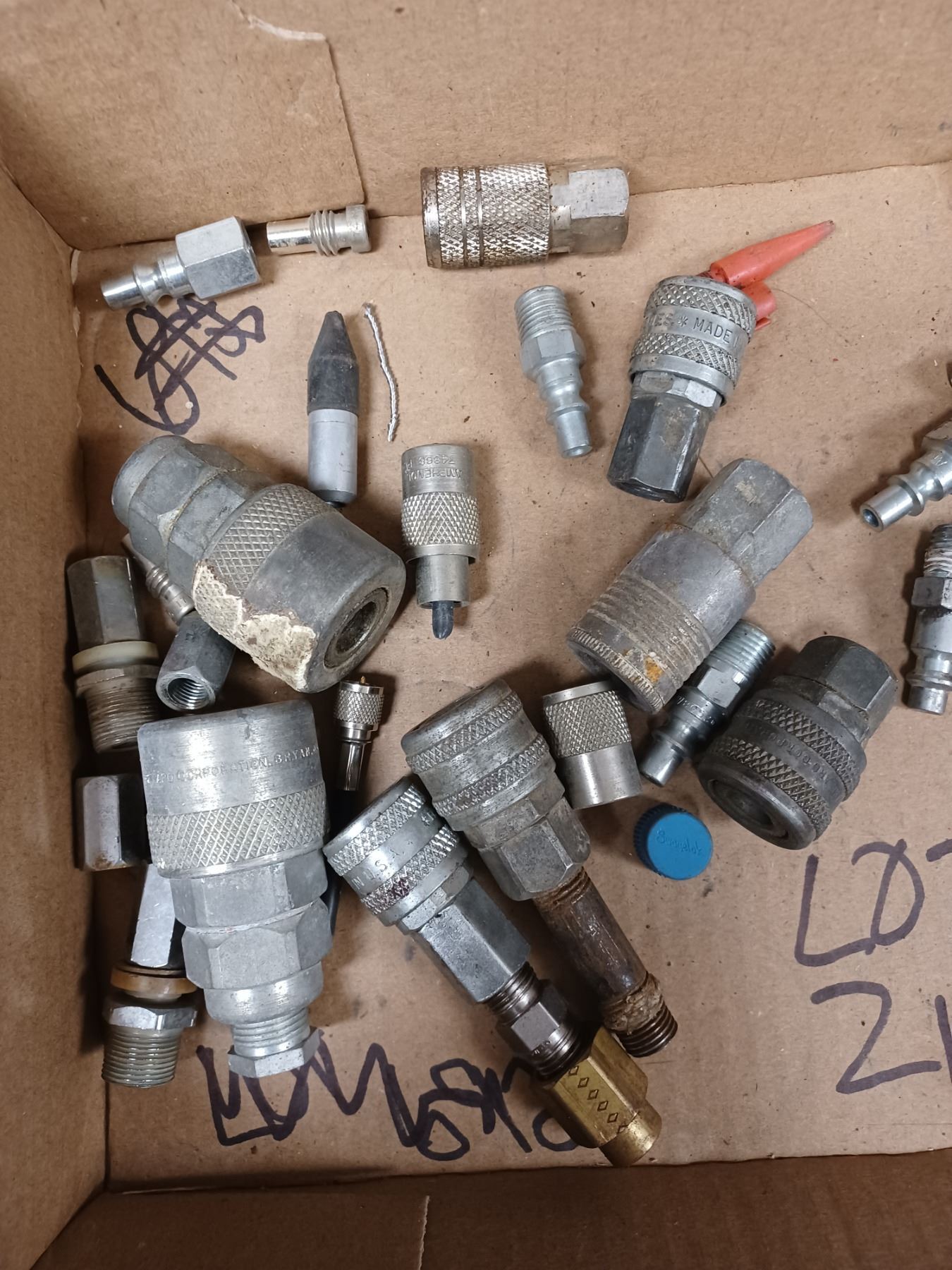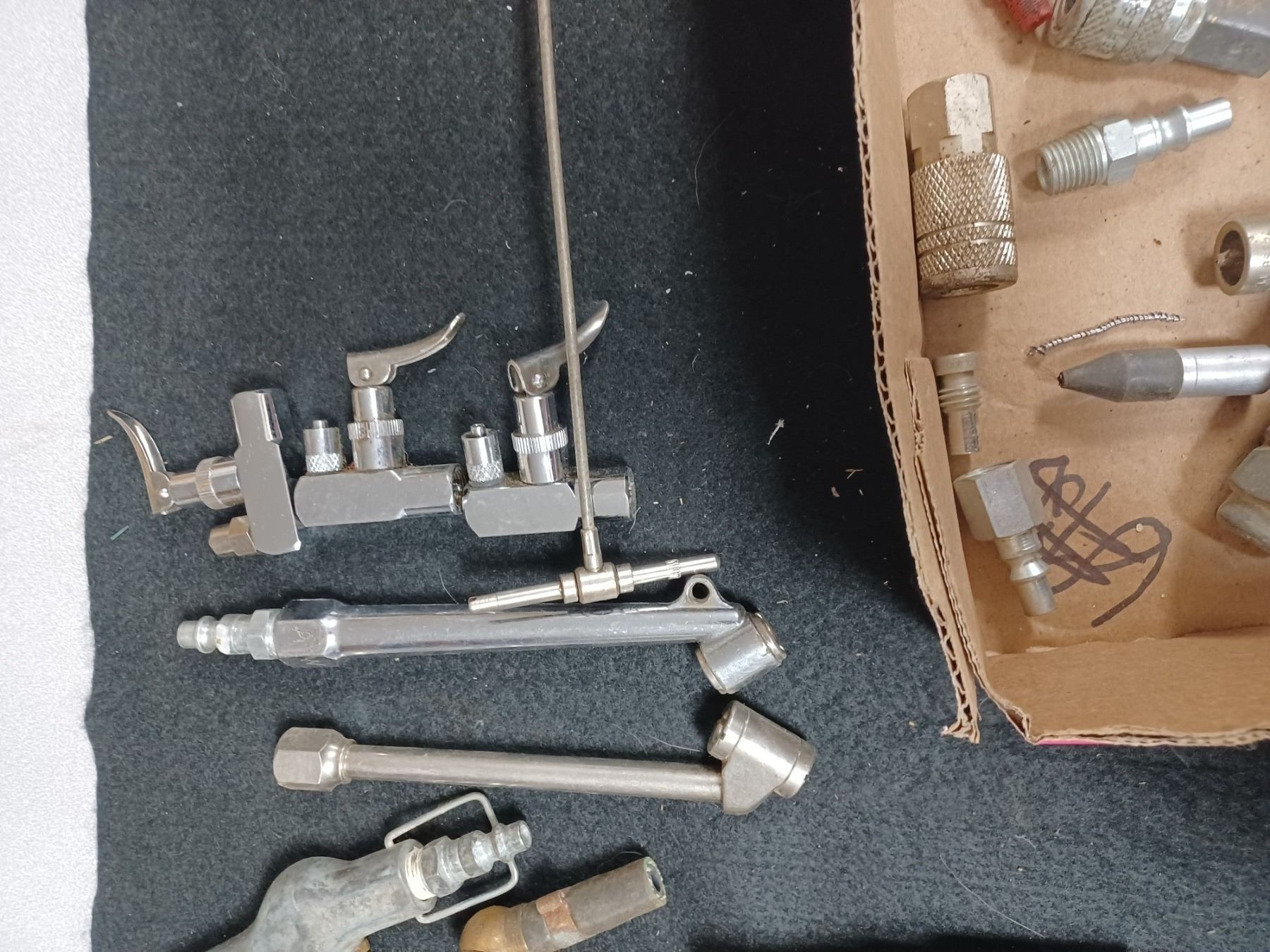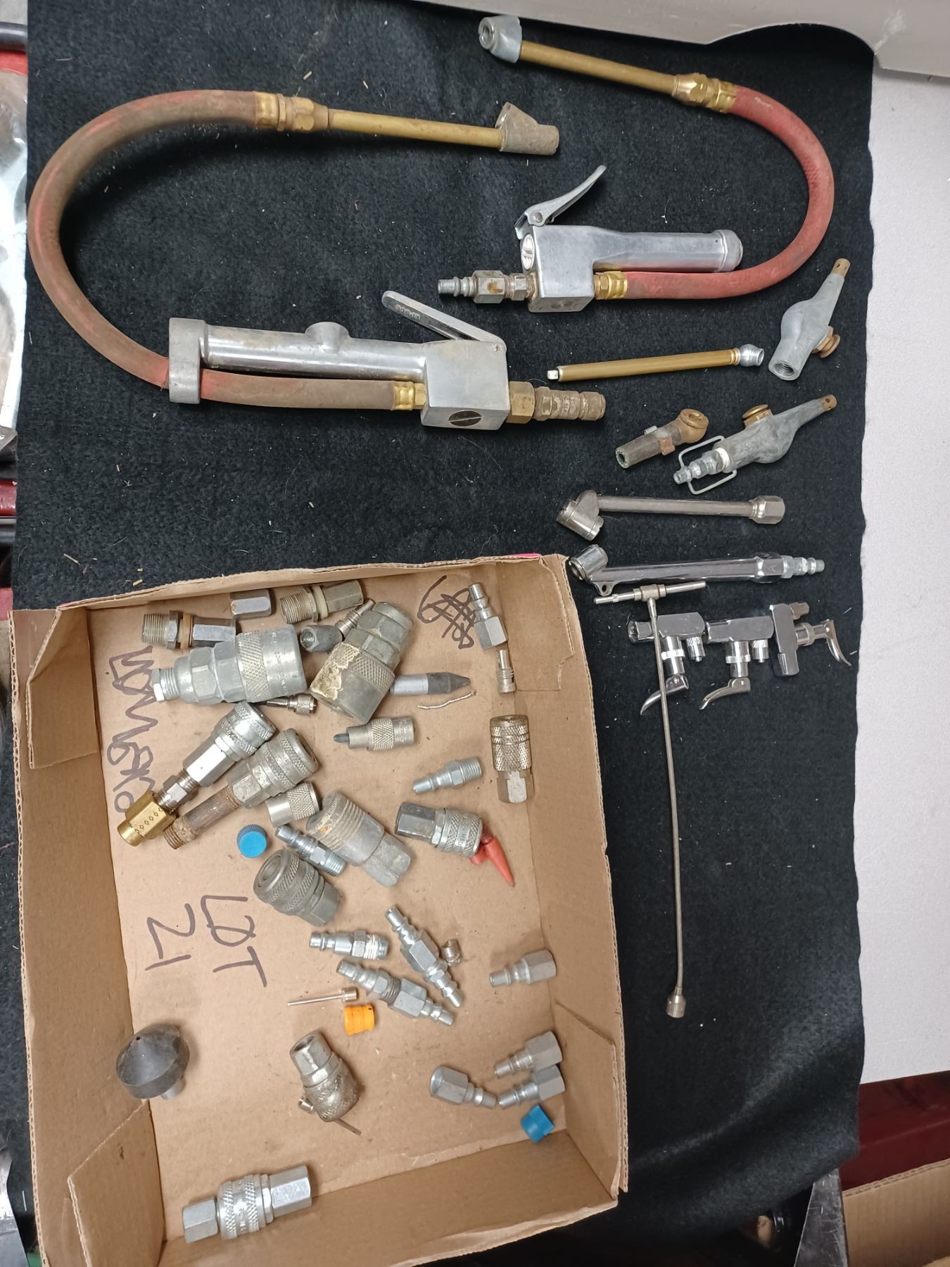 ASSORTED AIR COMPRESSOR ATTACHEMENTS, FITTINGS AND TIRE GUAGES