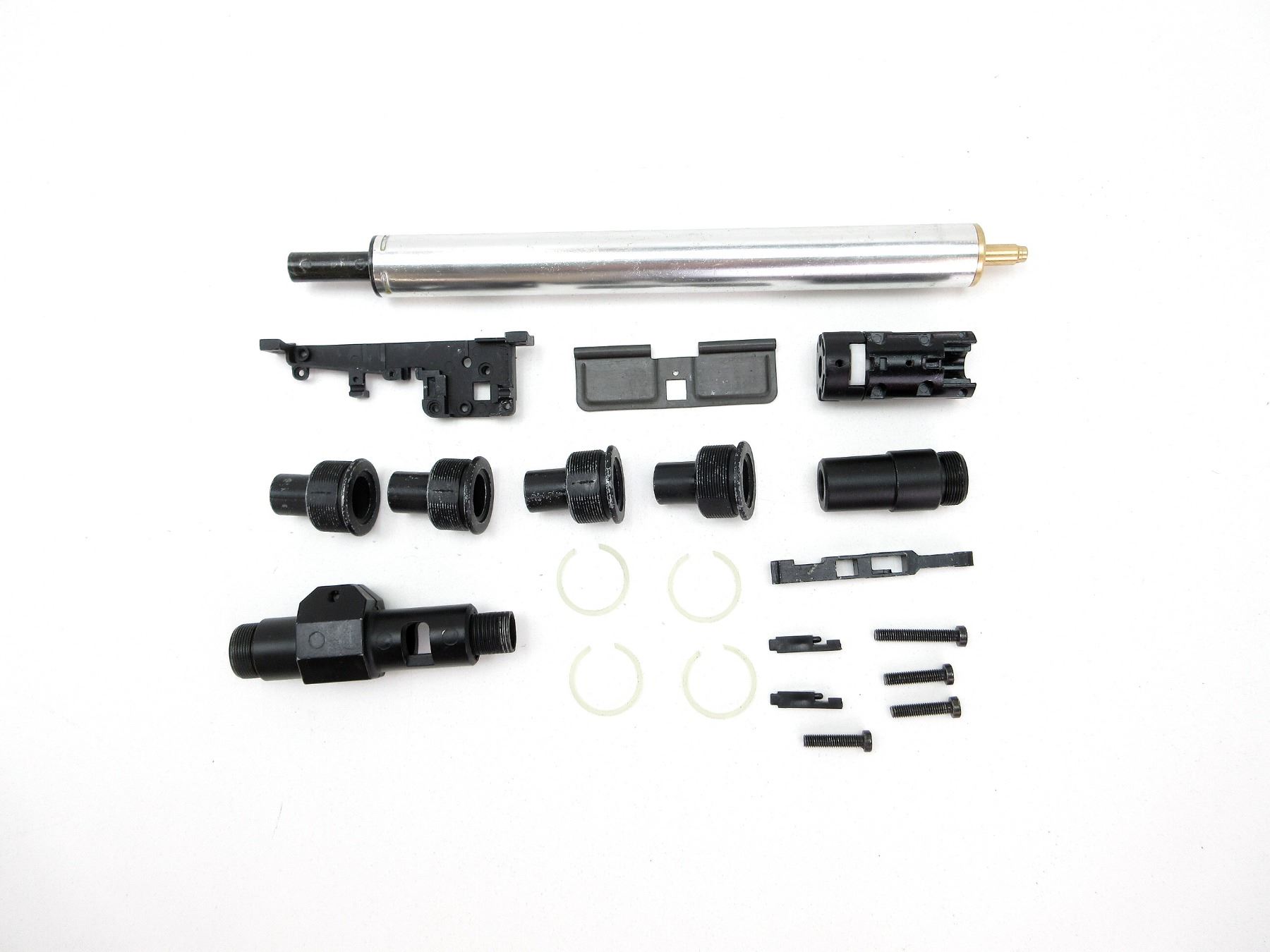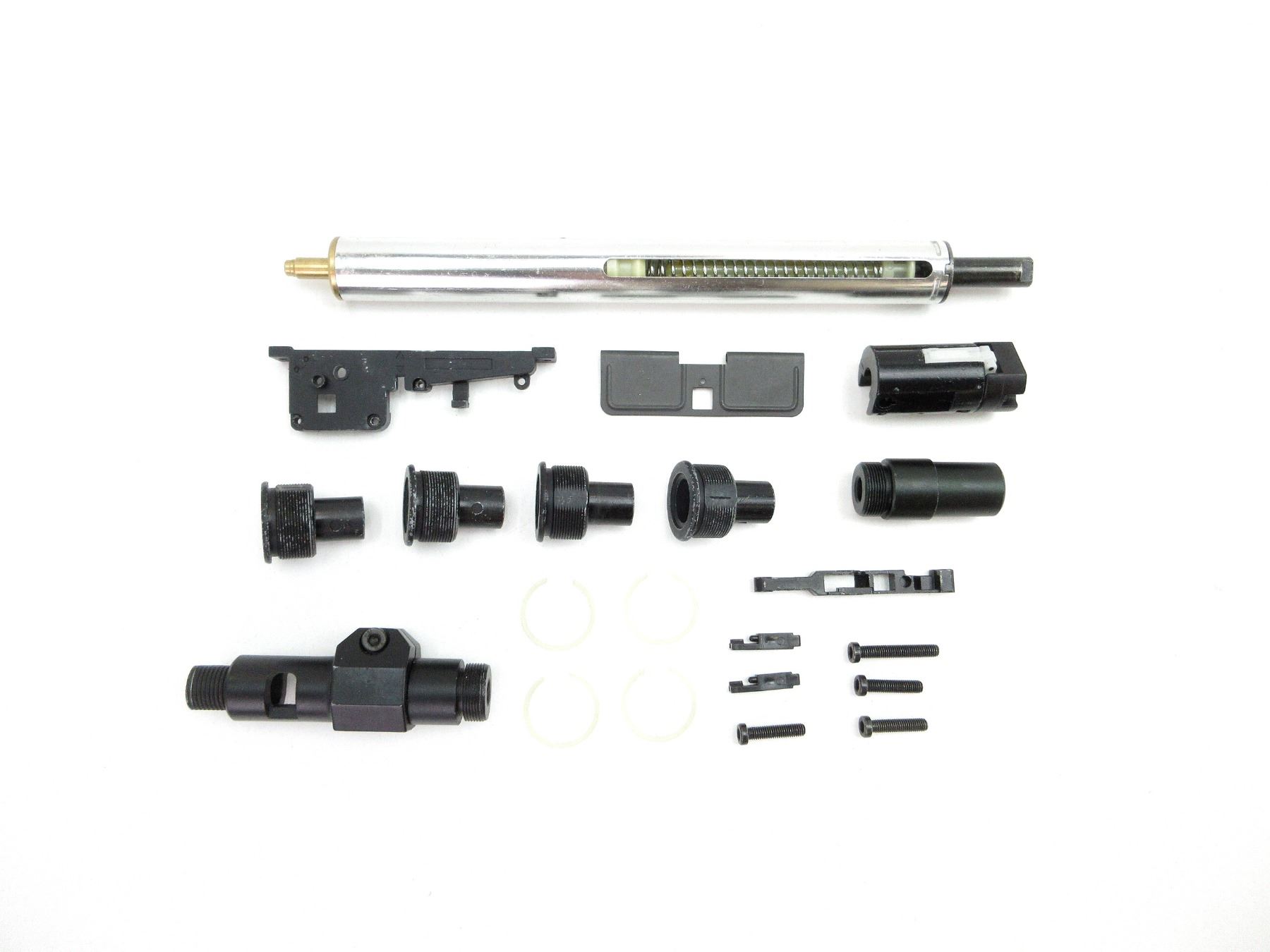 LOT INCLUDES; (1) GROUP HOP UP, COMPLETE HOP UP CHAMBER, FOR BOLT ACTION AIRSOFT RIFLES, FITS MB 4410 / 4411 / 4405, (1) AIRSOFT RIFLE SPRING POWERED RIFLE BOLT, DROP IN DESIGN REQUIRES NO MODIFICATION, INCOMPLETE, MISSING BOLT HANDLE, WITH VARIOUS MOCK SUPPRESSOR ADAPTERS, SCREWS, ETC. SEE PHOTOS.