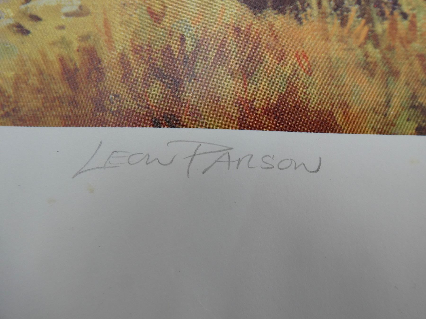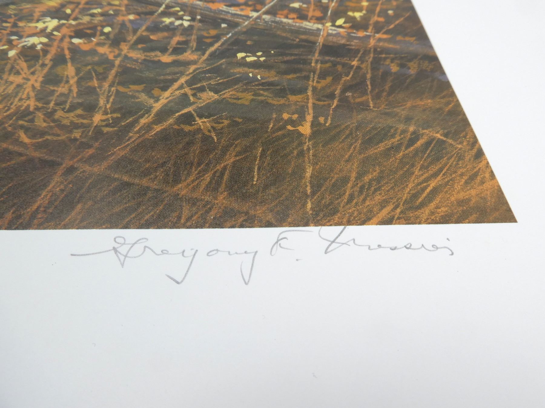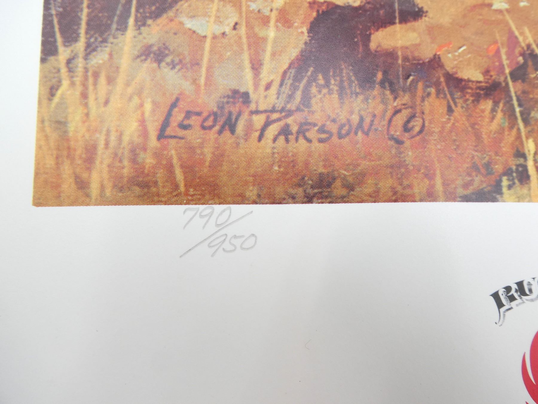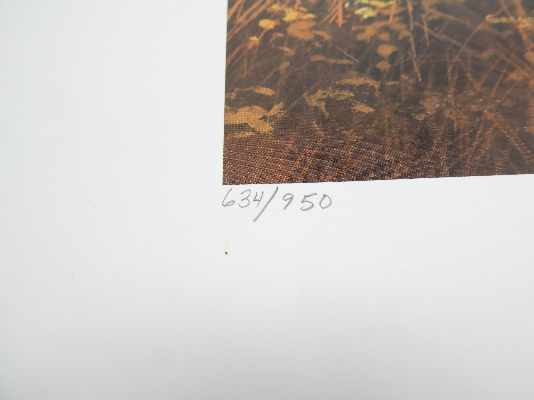 LOT INCLUDES; (1) ANTELOPE PRINT BY LEON PARSON, PRINT NO. 790 / 950, SIGNED BY ARTIST, MARKED: "MIDDAY REPOSE, RUGER NORTH AMERICANS" WITH RUGER SYMBOL, VARIOUS OTHER MARKINGS, COPYRIGHT 1987, SHOWS SOME WEAR & TEAR, APPROX. 24" X 18.5" & (1) "OCTOBER WHITETAILS" PRINT BY GREGORY F. MESSIER, PRINT NO. 634 / 950, SIGNED BY ARTIST, PUBLISHED BY PETERSON PRINTS, COPYRIGHT 1984, SHOWS SOME WEAR & TEAR, APPROX. 26" X 20". SEE PHOTOS.