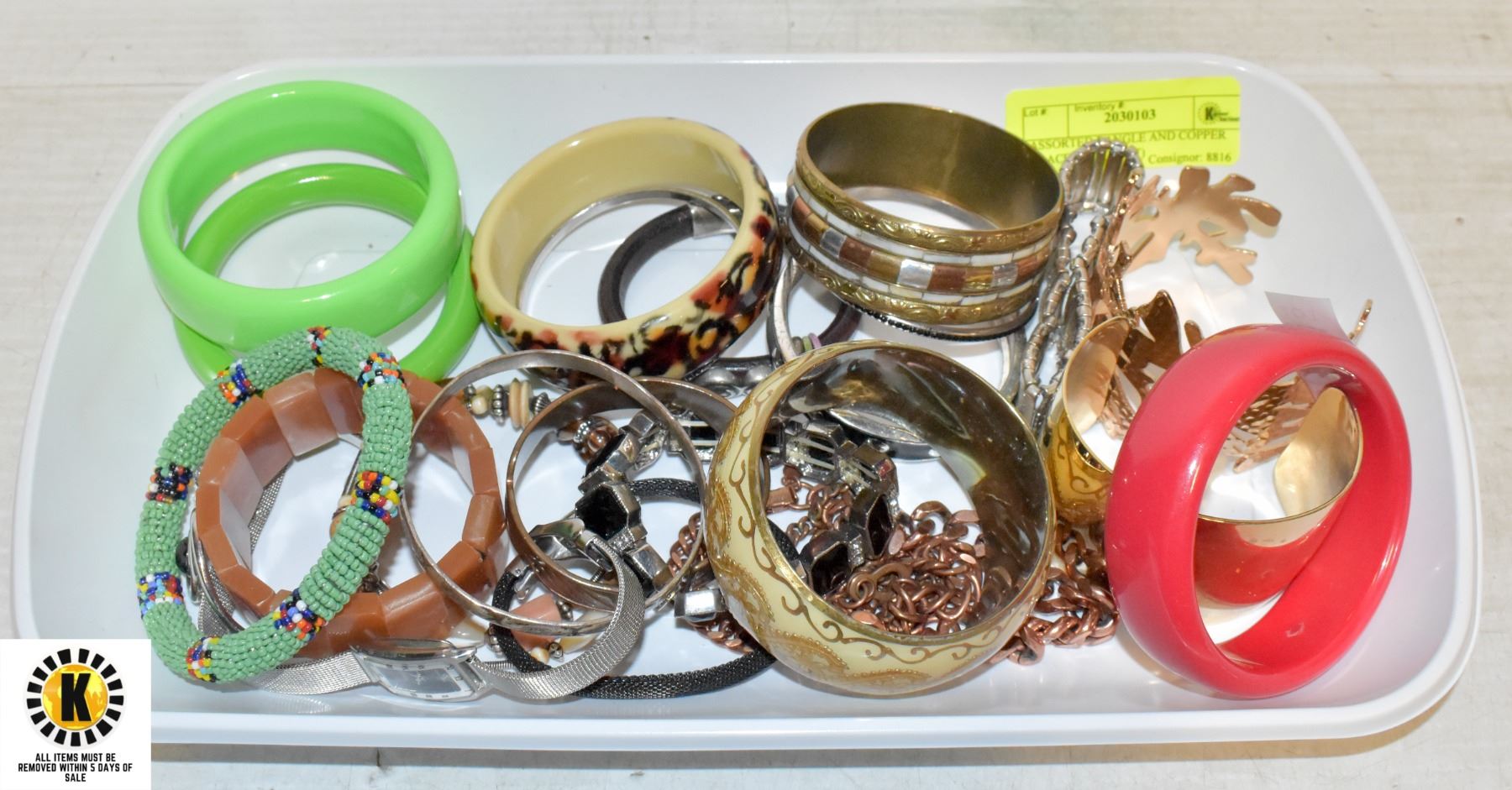 ASSORTED BANGLE AND COPPER BRACELETS (TRAY)
