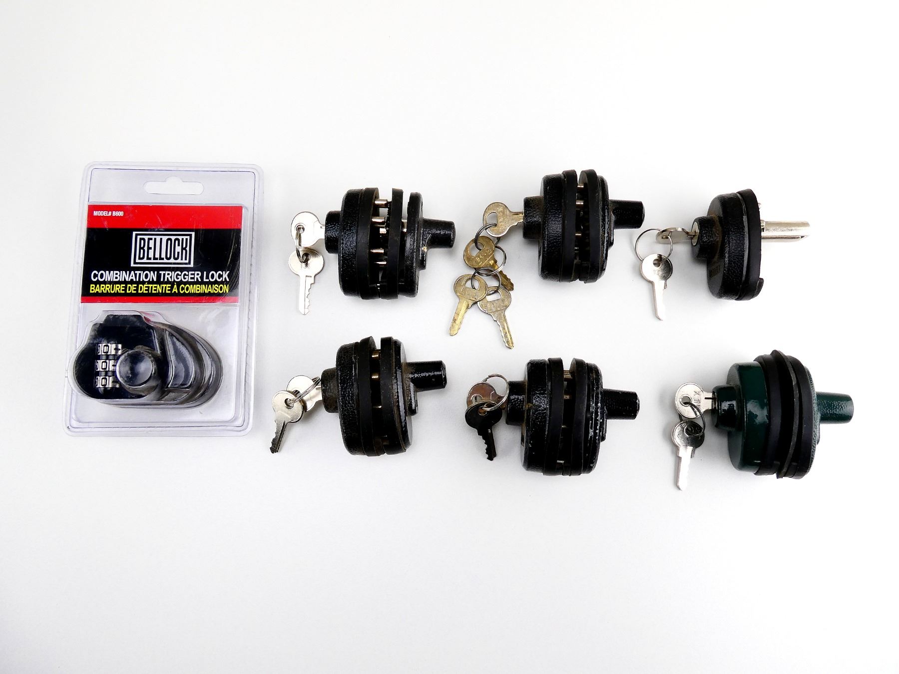ASSORTED BELLOCK / ETC. KEYED / COMBINATION TRIGGER LOCKS AND KEYS LOT