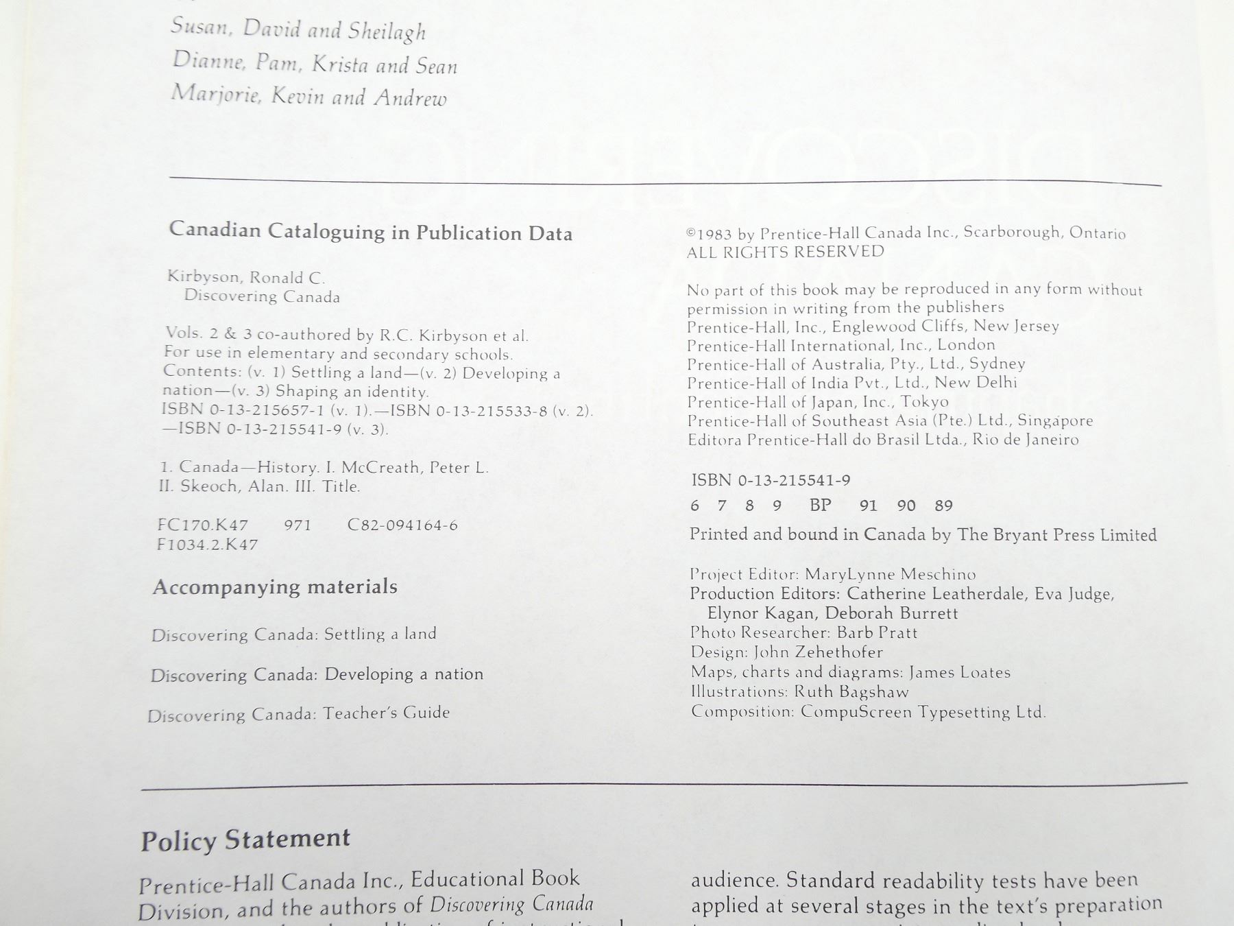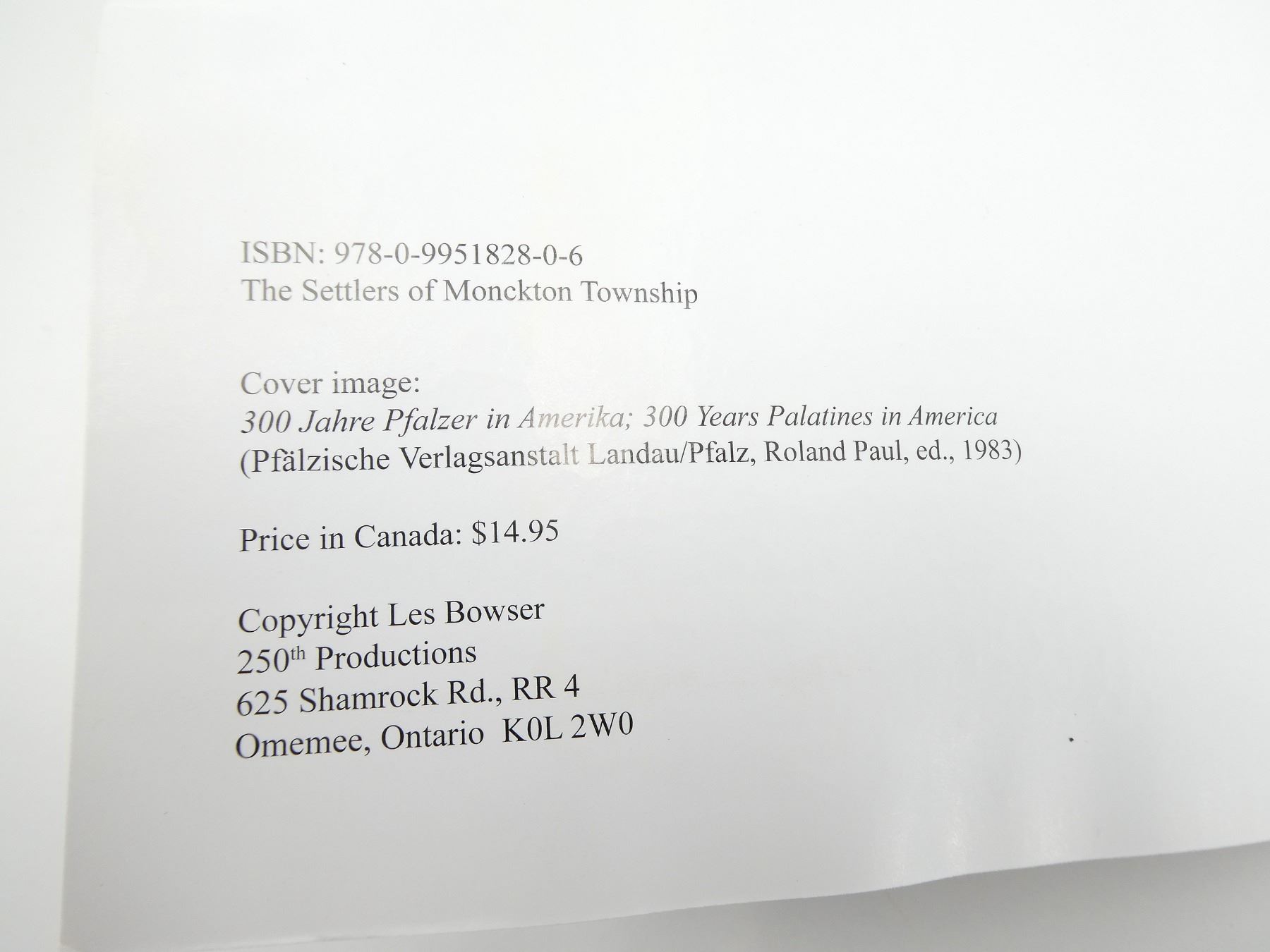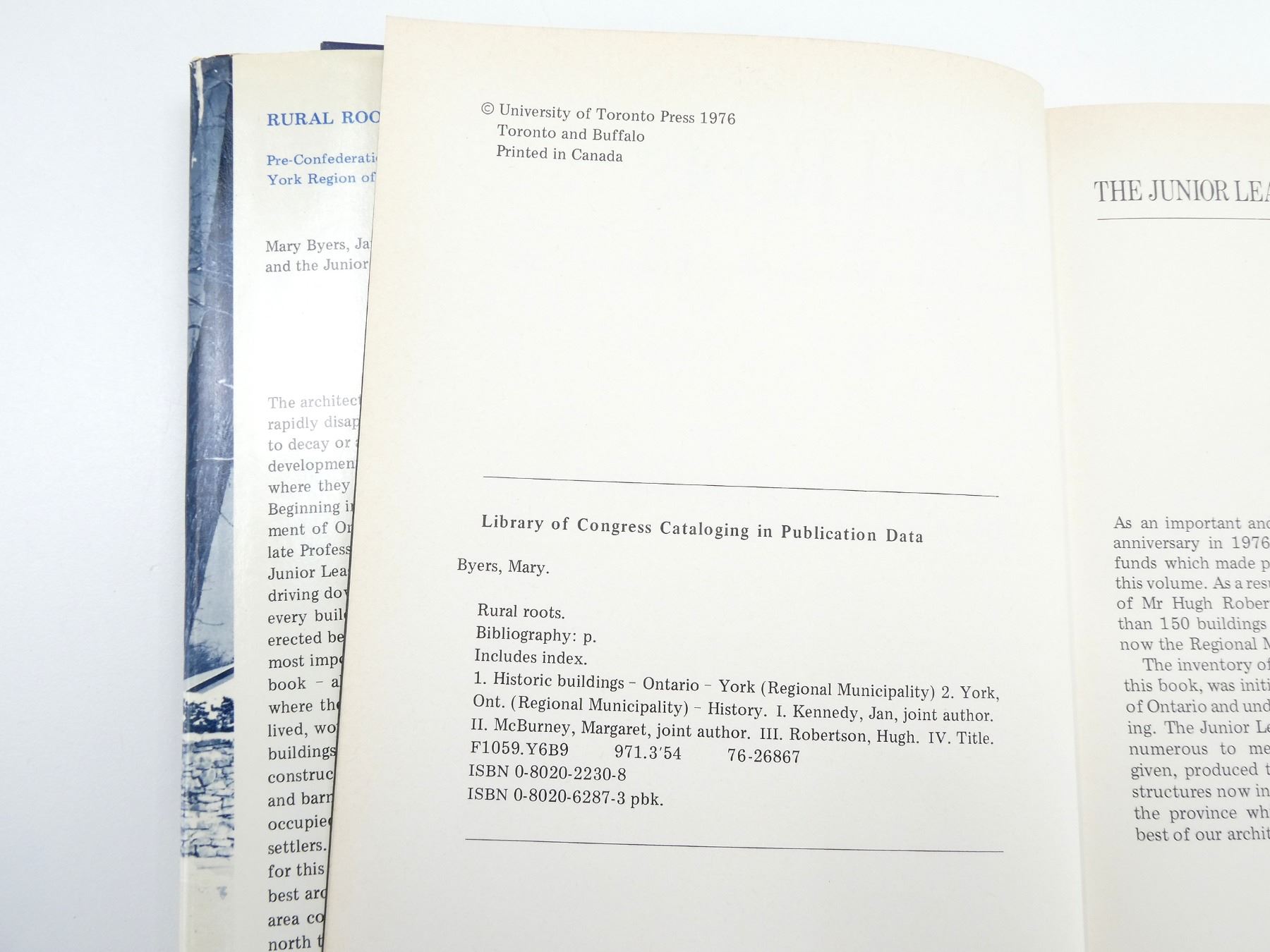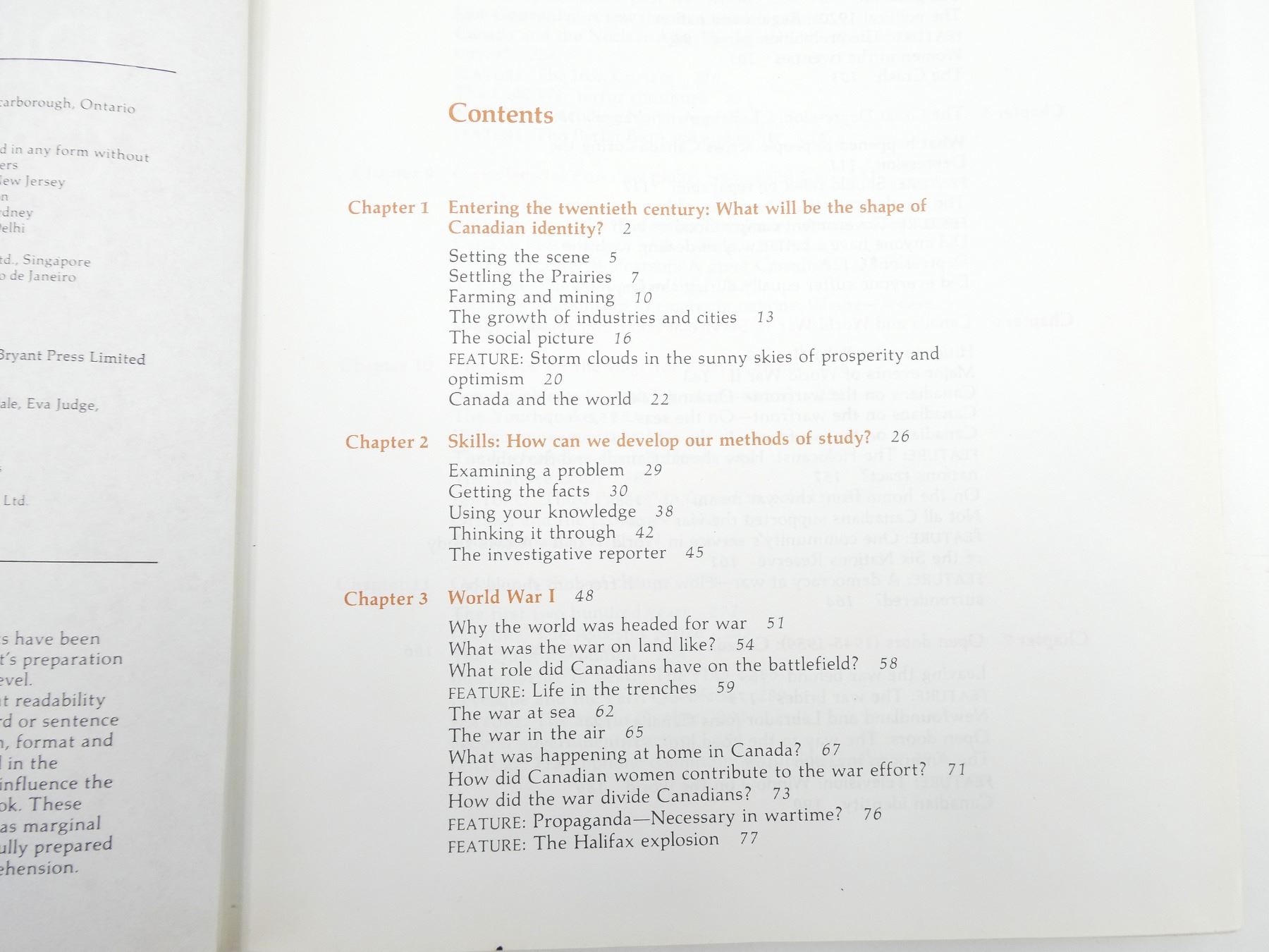 LOT INCLUDES; (1) "THE STAR AND THE LAUREL" BOOK, BY BEVERLY RAE KIMES, HARD COVER WITH DUST COVER, ISBN 0-936573-01-5, (1) "THE LAND AND WILDLIFE OF NORTH AMERICA" BOOK, BY PETER FARB, COPYRIGHT 1966, (1) "DISCOVERING CANADA SHAPING AN IDENTITY" BOOK, EDITED BY RONALD C. KIRBYSON, HARD COVER, ISBN 0-13-215541-9, (1) "THE SETTLERS OF MONCKTON TOWNSHIP" BOOK, BY LES BOWSER, SOFT COVER, ISBN 0-978-0-9951828-0-6, (1) "RURAL ROOTS" BOOK, BY MARY BYERS, JAN KENNEDY & MARGARET MCBURNEY, HARD COVER WITH DUST COVER, ISBN 0-8020-2230-8, (1) "HOLLYWOOD'S CANADA" BOOK, BY PIERRE BERTON, HARD COVER WITH DUST COVER, ISBN 0-7710-1223-3, (1) "CHEERS! A INTEMPERATE HISTORY OF BEER IN CANADA" BOOK, BY NICHOLAS PASHLEY, SOFT COVER, ISBN 978-55468-257-7. SEE PHOTOS.