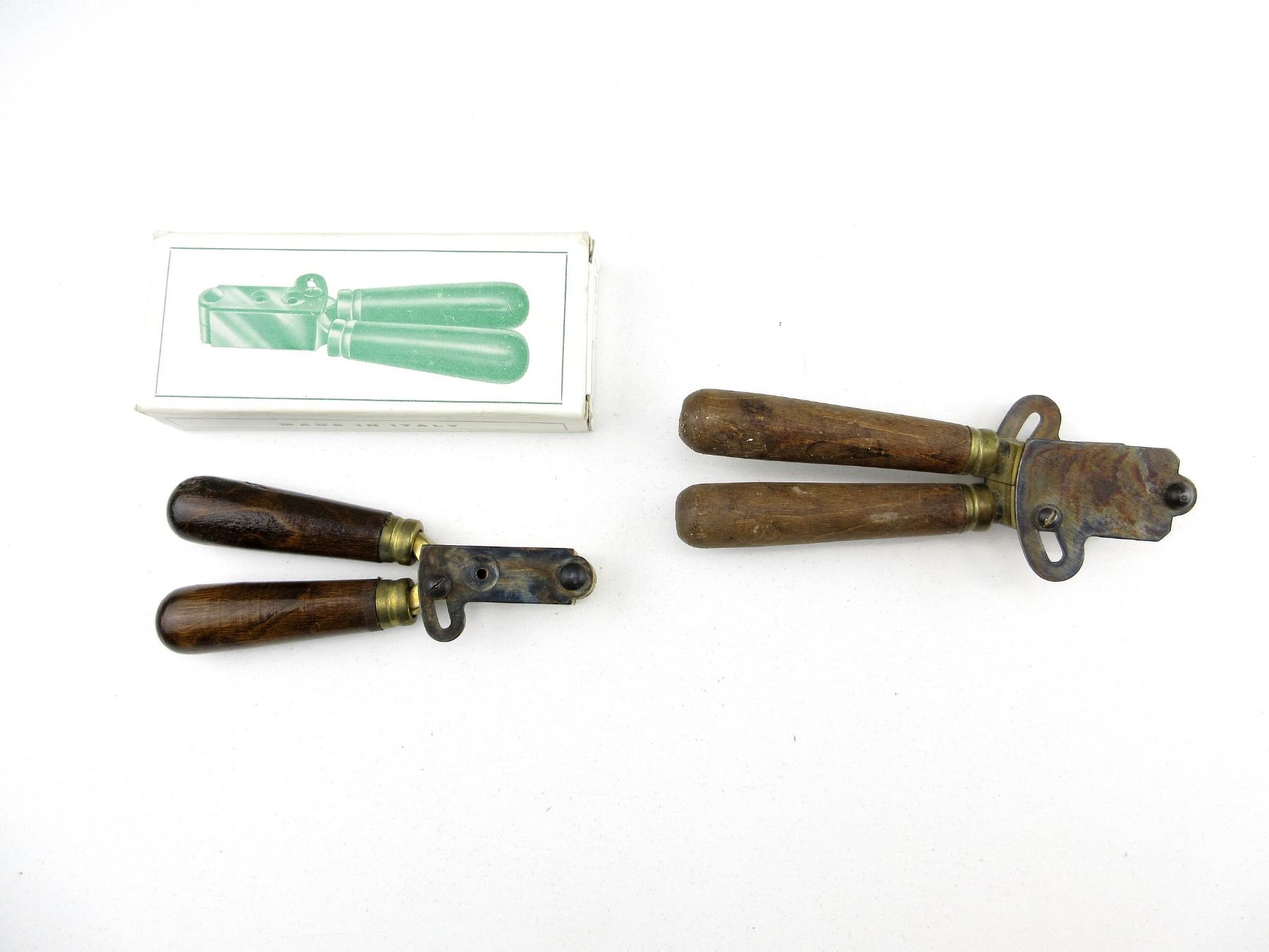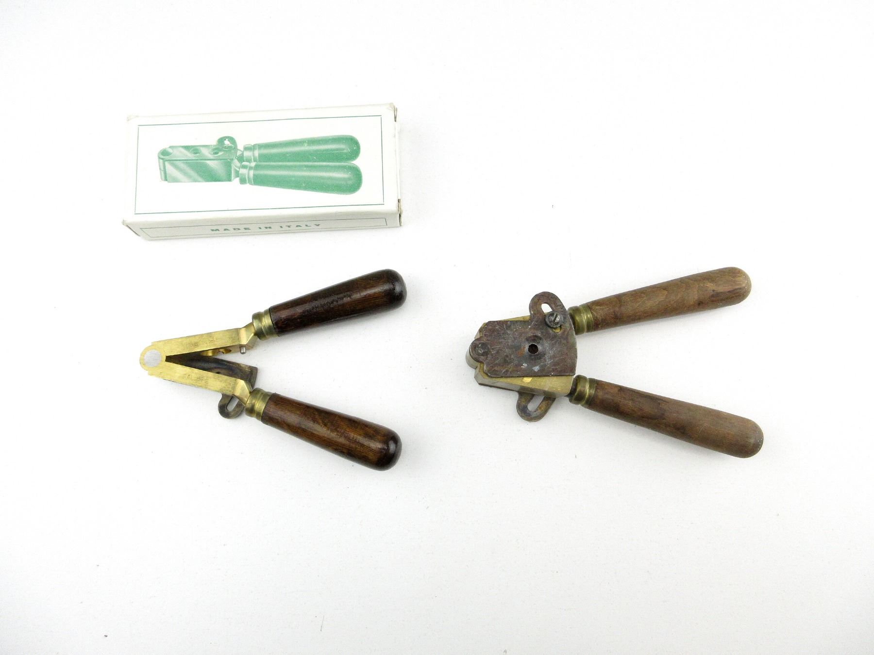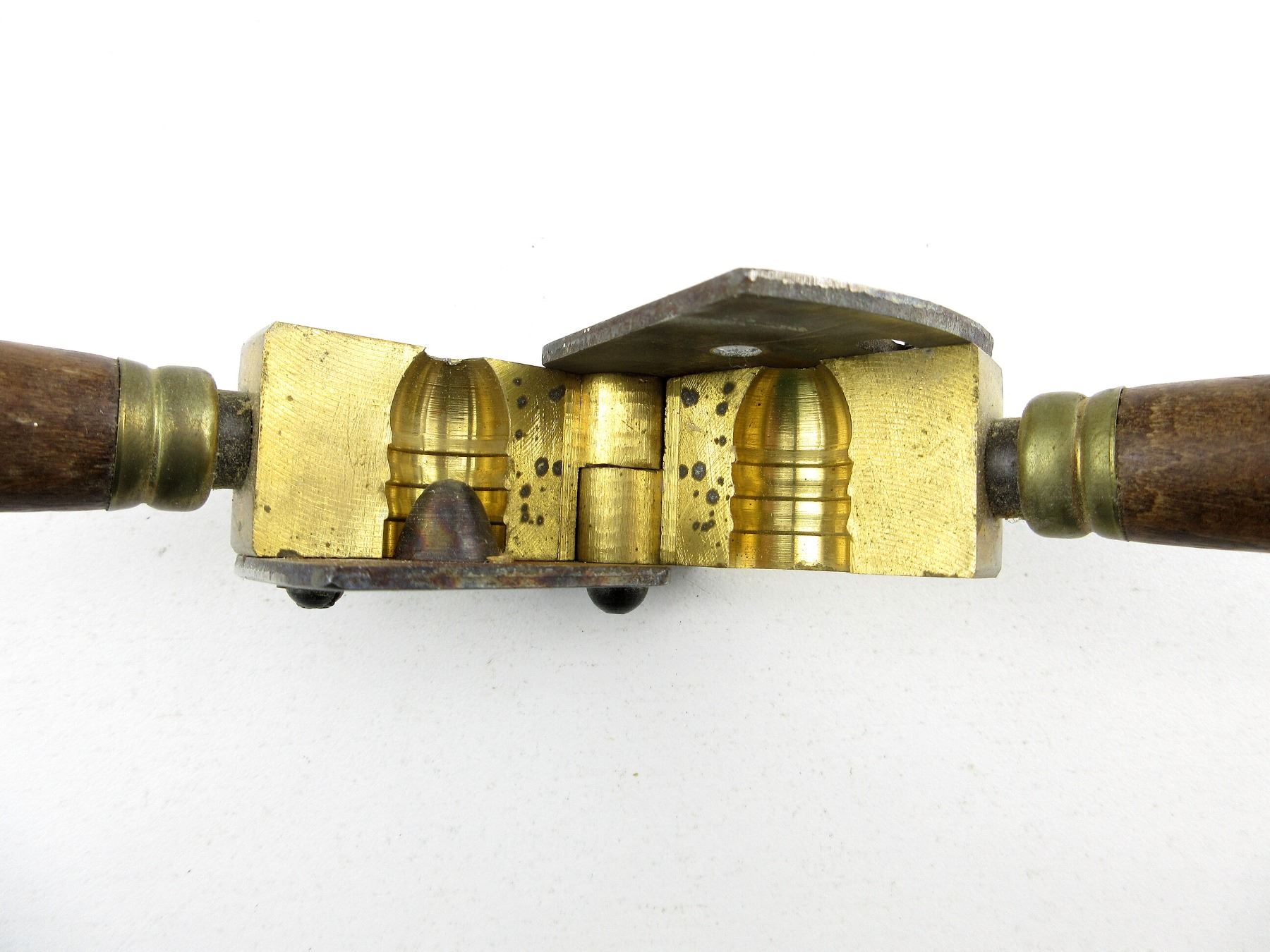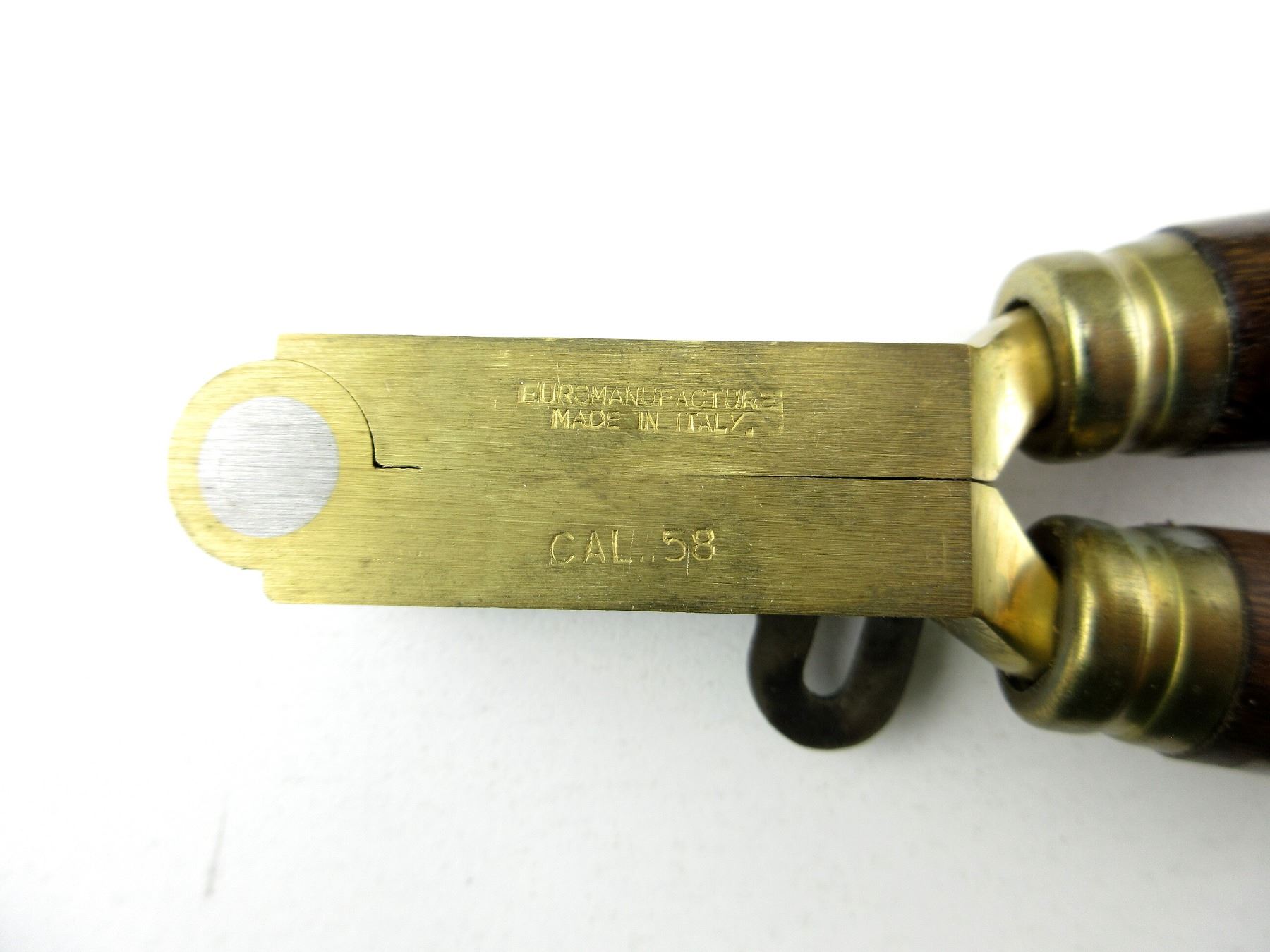 LOT INCLUDES; (1) BRASS .58 CAL. SINGLE-CAVITY HOLLOW BASE BULLET MOLD WITH WOOD HANDLES ATTACHED, MOLD MARKED: "??UROARMS, MADE IN ITALY" & (1) BRASS .58 CAL. SINGLE-CAVITY ROUND BALL BULLET MOLD WITH WOOD HANDLES ATTACHED, MOLD MARKED: "EUROMANUFACTURE, MADE IN ITALY, CAL .58" & "0196", WITH ORIGINAL PACKAGING. SEE PHOTOS.