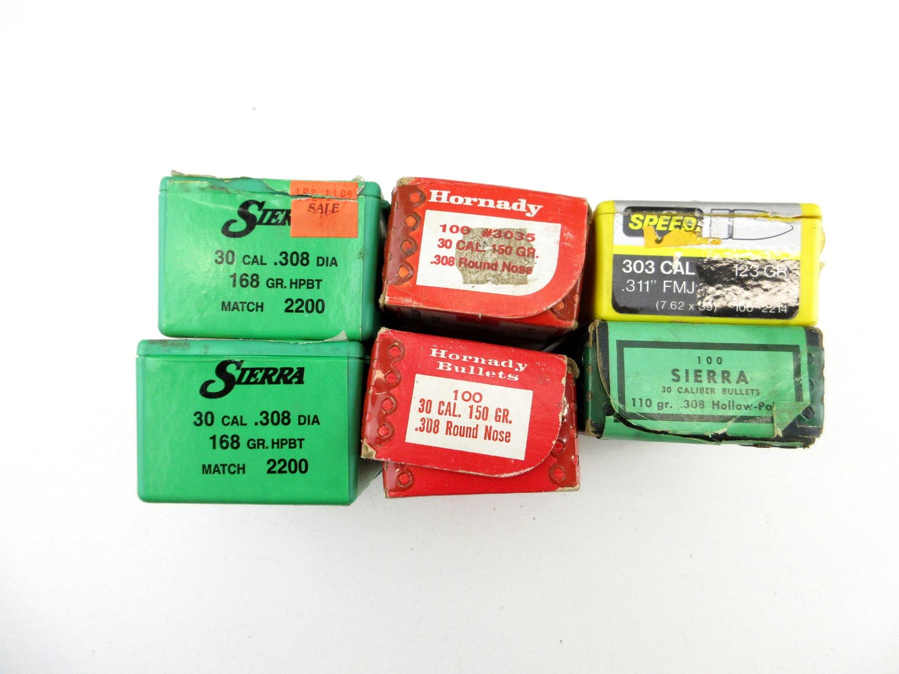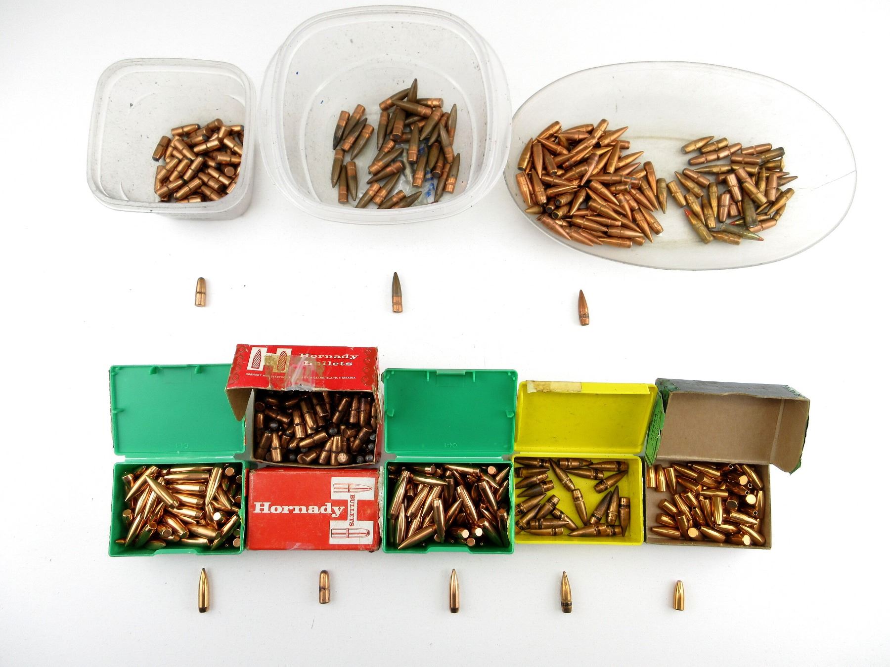 LOT INCLUDES; APPROX. 14.5 LBS BULLETS, APPROX. DIA .308" / .311", VARIOUS MANUFACTURERS INCLUDING; HORNADY, SIERRA, SPEER, ETC.