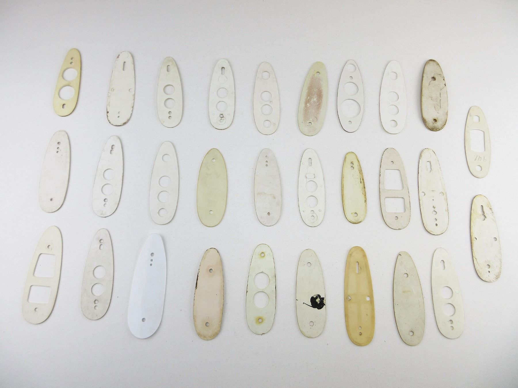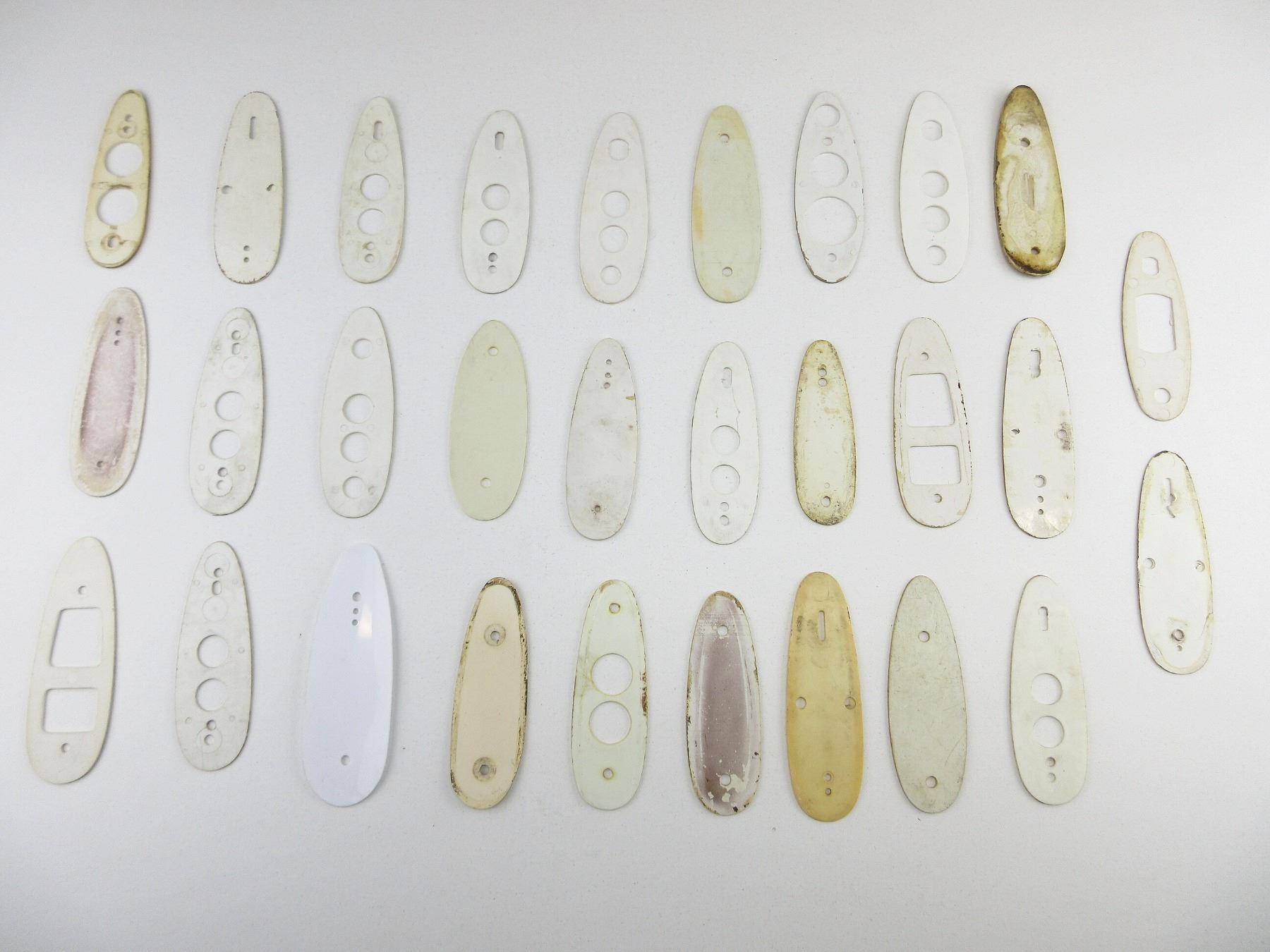 LOT INCLUDES; APPROX. (30) BUTT PLATE SPACERS, WHITE POLYMER, VARIOUS SIZES. MAY REQUIRE FITTING. SEE PHOTOS.