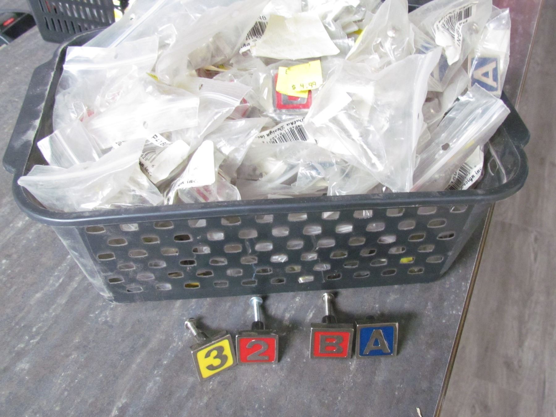 ASSORTED CABINET KNOBS ( A,B,C,2,3) X 113