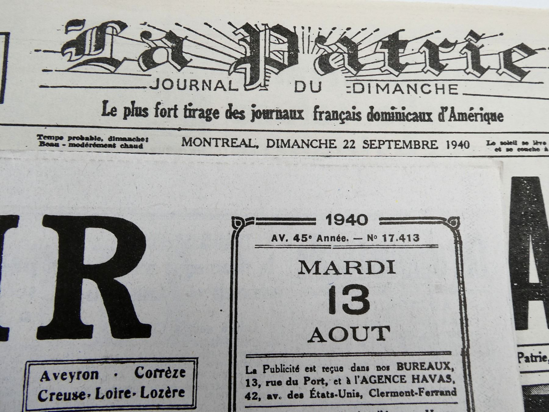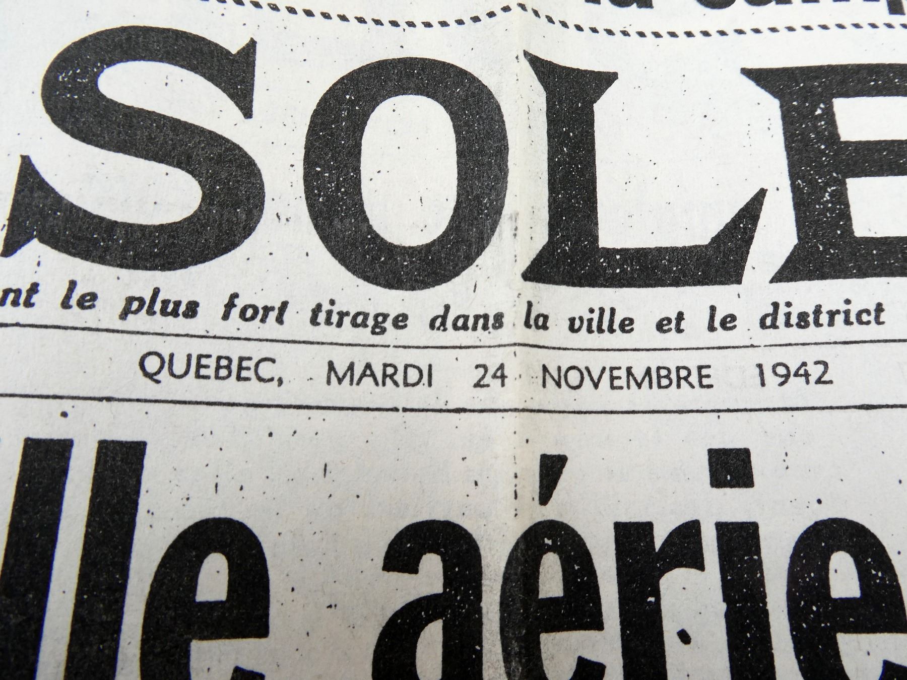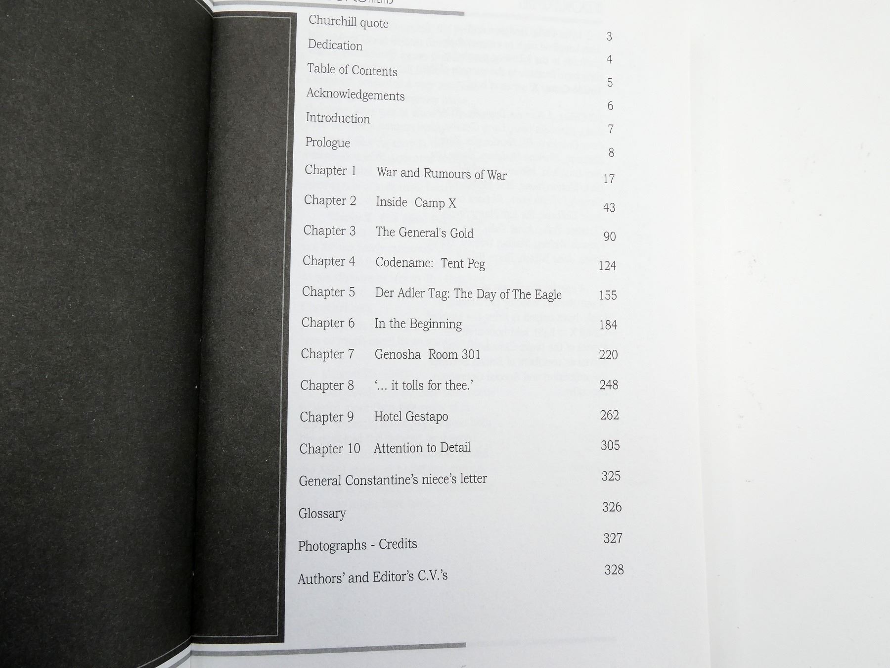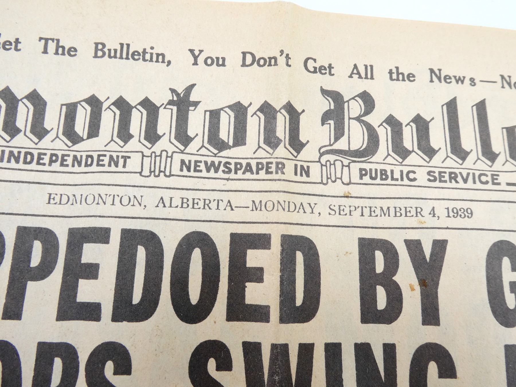 LOT INCLUDES; (1) "CAMP X, THE FINAL BATTLE" BOOK BY LYNN-PHILIP HODGSON & ALAN PAUL LONGFIELD, SOFT COVER, SIGNED BY AUTHORS, ISBN: 0-9687062-3-1, (1) "FOR FREEDOM AND THE RIGHT" NEWSPAPER PUBLISHED BY THE MONTREAL DAILY STAR, THE FAMILY HERALD & WEEKLY STAR, (1) "EDMONTON BULLETIN" PUBLISHED 1939, (1) "LE SOLEIL" PUBLISHED 1942, (1) "LA PATRIE" PUBLISHED 1940, (1) "L'AVENIR" PUBLISHED 1940 & (1) BATTLE OF VIMY RIDGE MINT CONDITION STAMP SET. SEE PHOTOS.