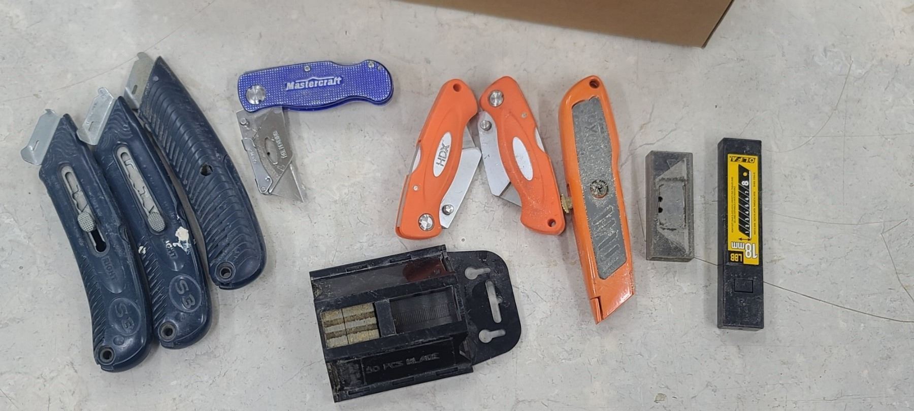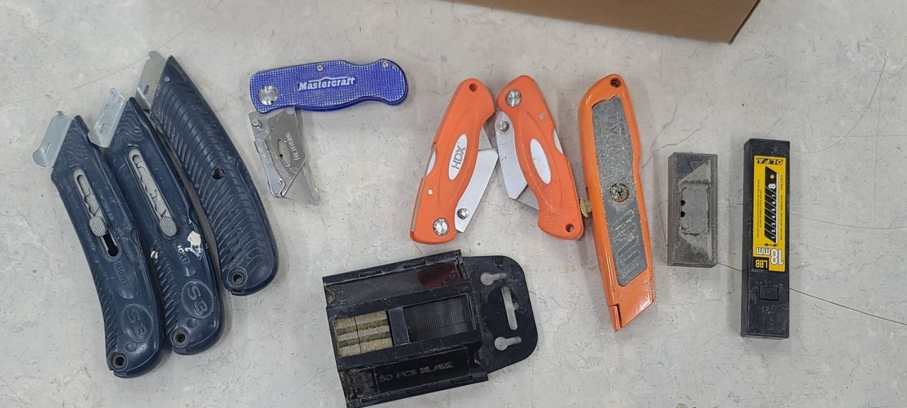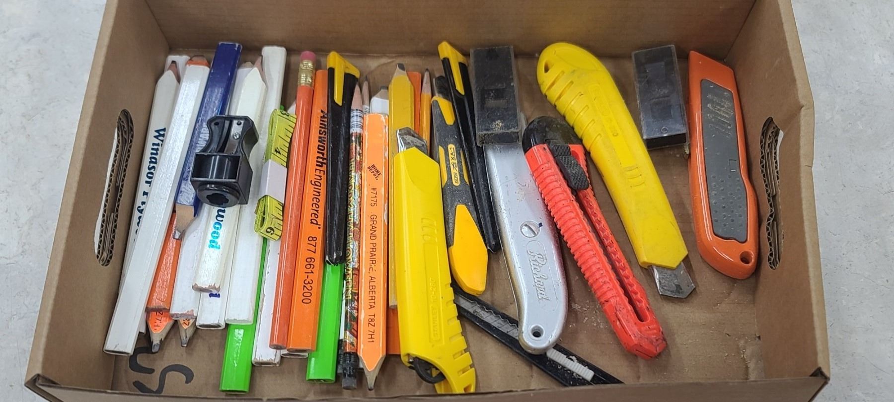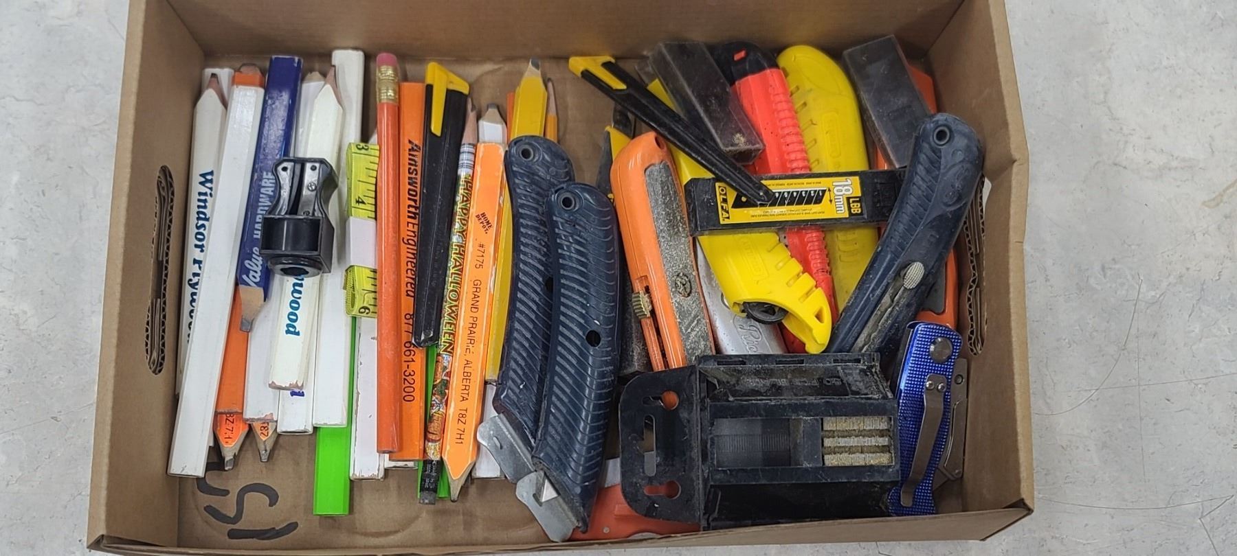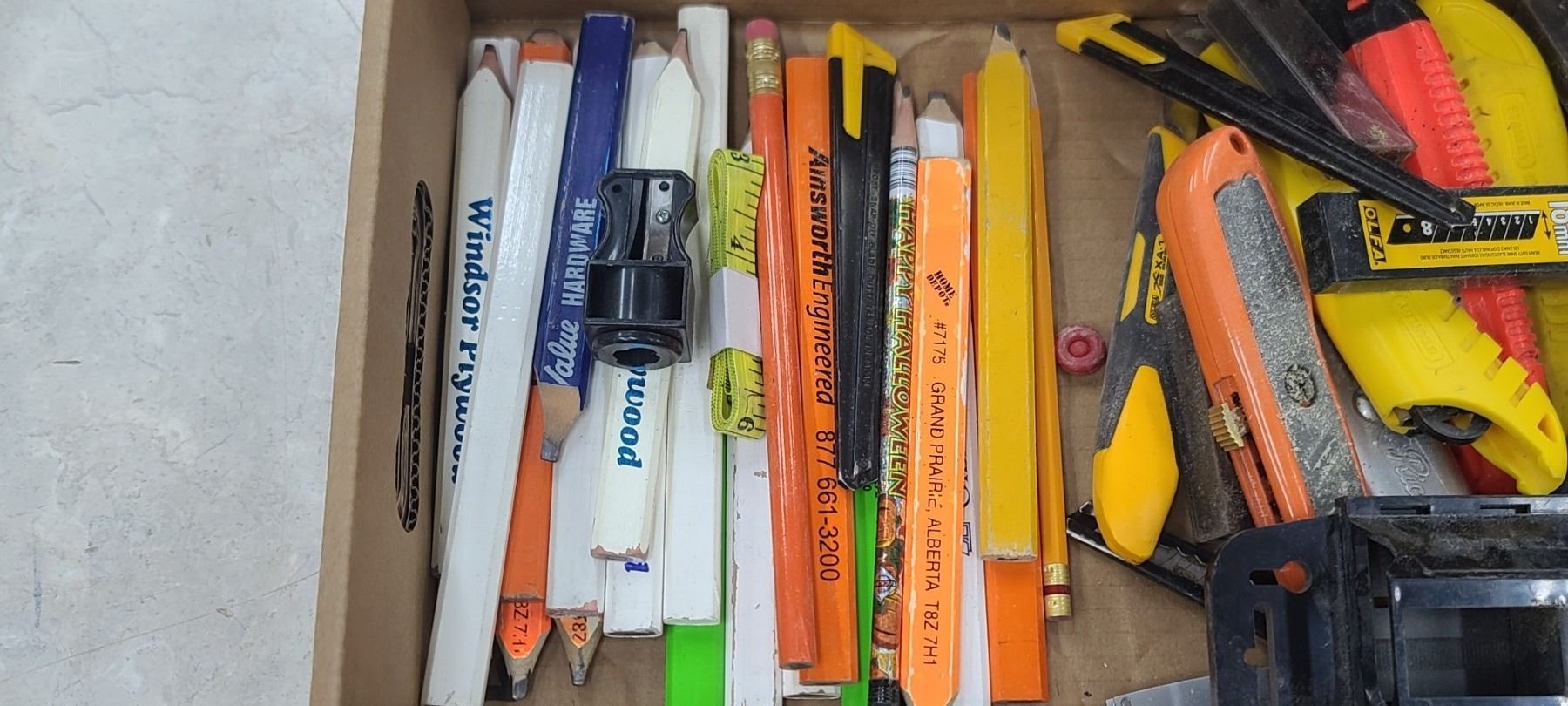 ASSORTED CARPENTERS PENCILS AND UTILITY KNIVES