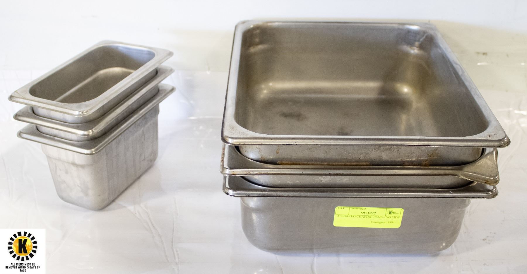 ASSORTED CHAFING PANS - NO LIDS