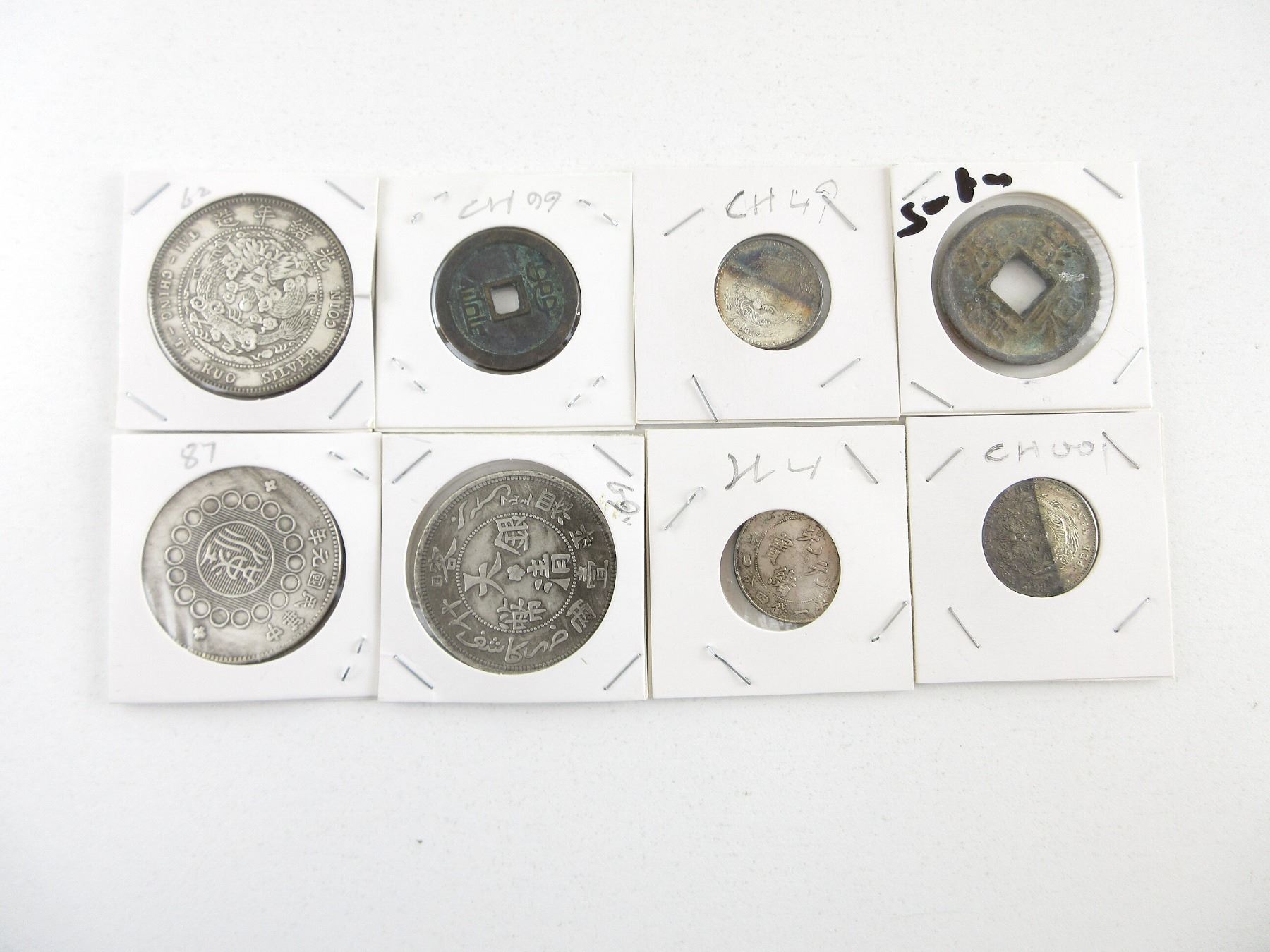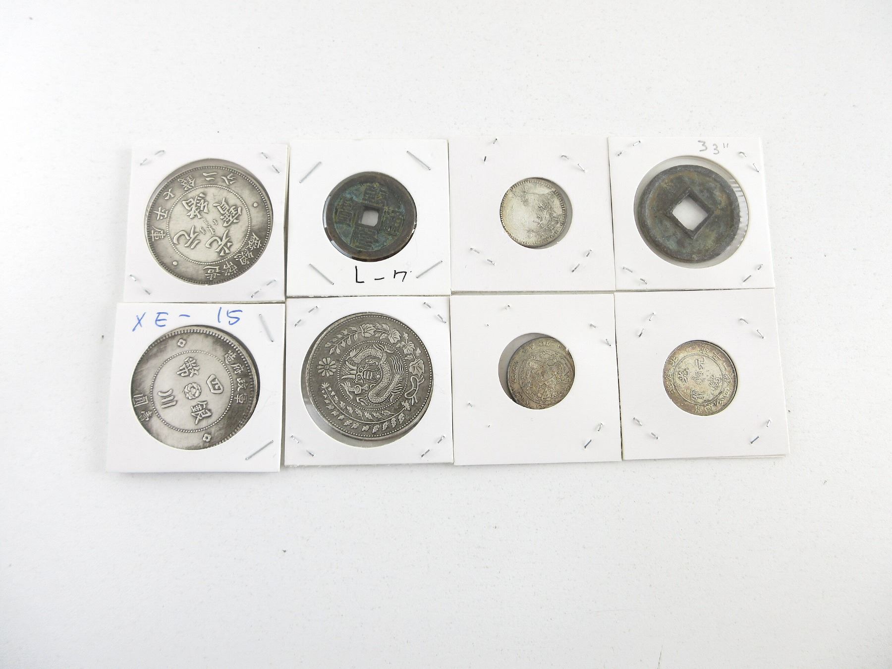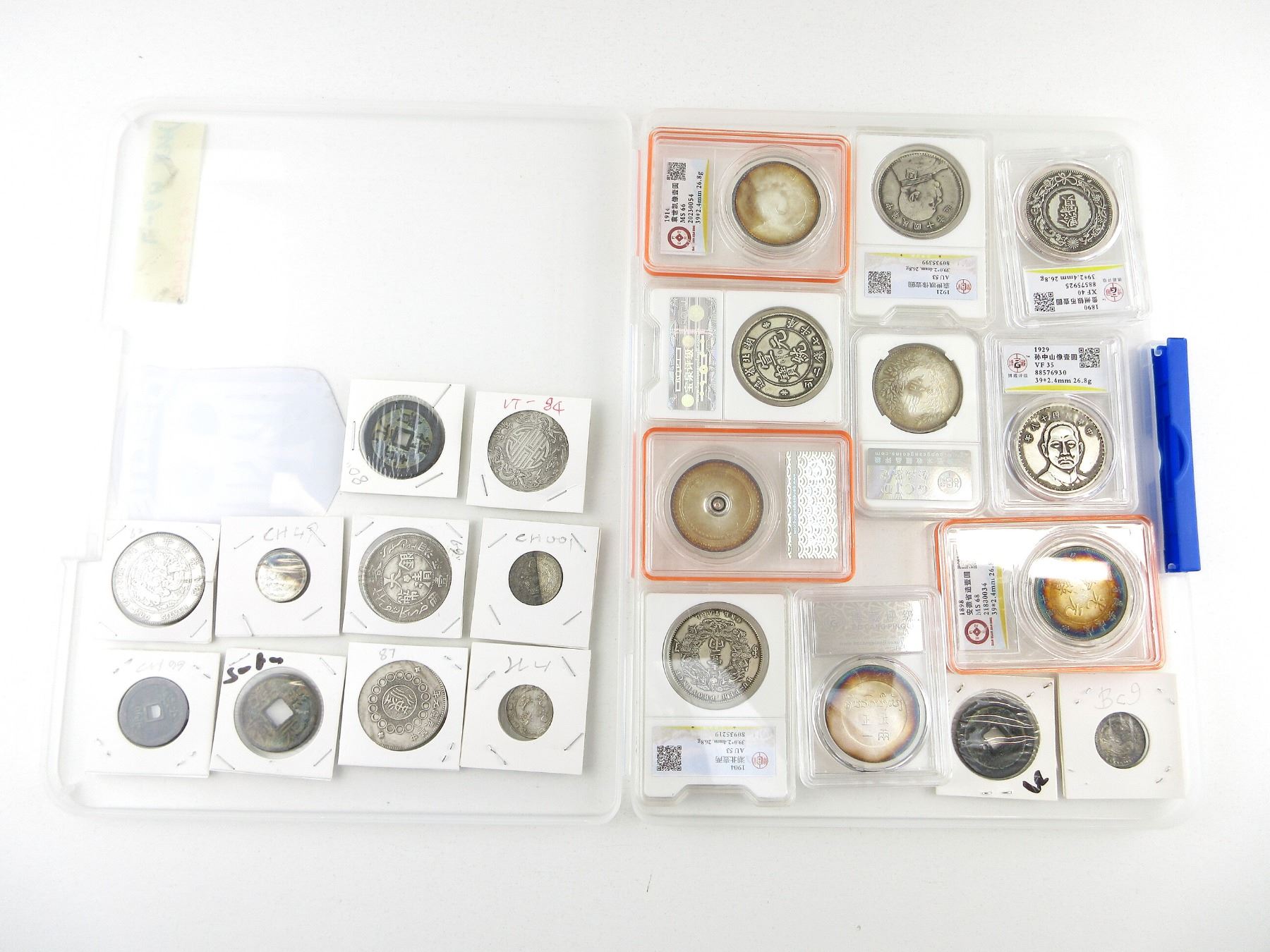 APPROX. (22) COINS / TOKENS, VARIOUS DENOMINATIONS / MATERIALS / DATES / SIZES, CONSIGNOR STATES: "A COLLECTION OF VARIOUS REPUBLIC OF CHINA WARLORDS TOKENS AND COINS", SOME WITH PLASTIC COVERS WITH VARIOUS MARKINGS, OTHERS IN CARDBOARD SLEEVES. SEE PHOTOS.