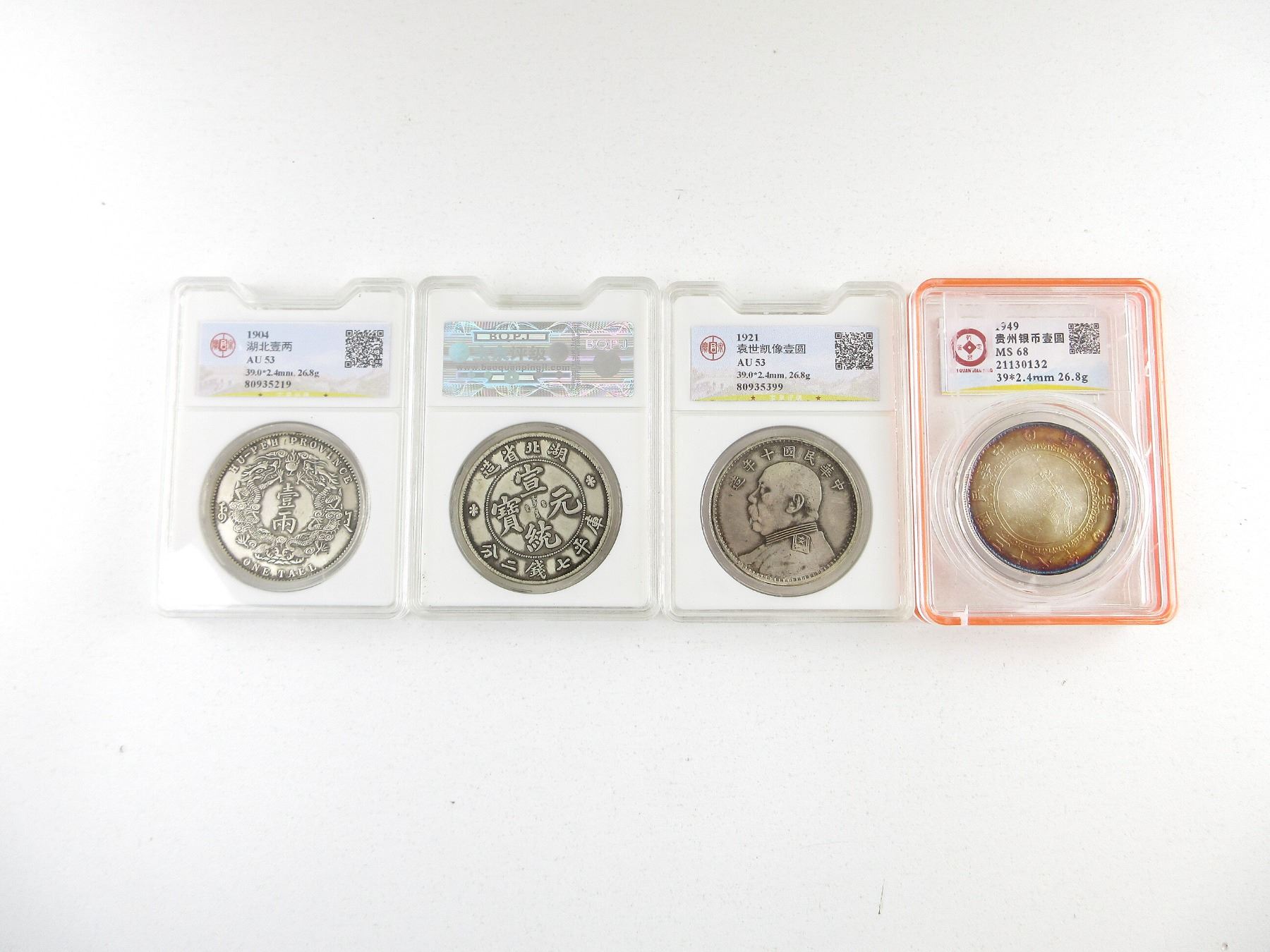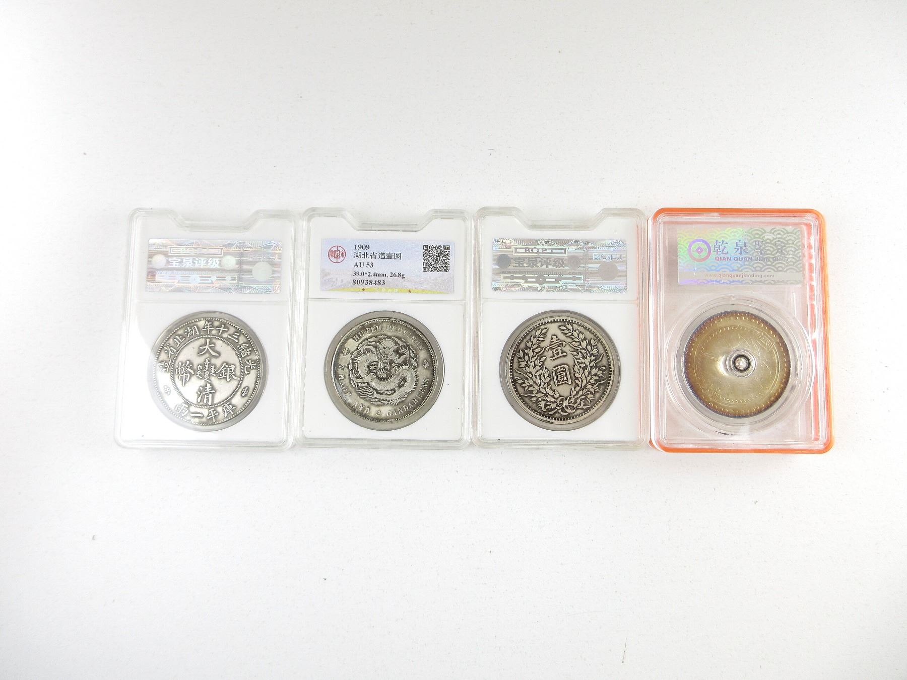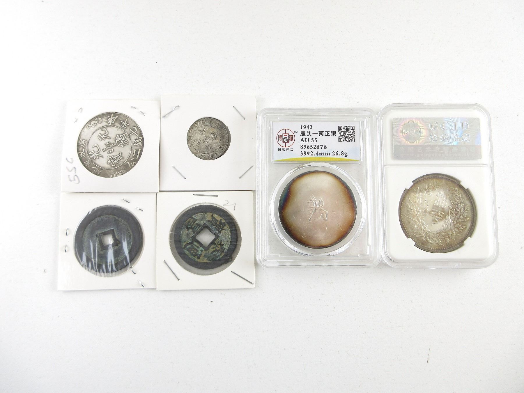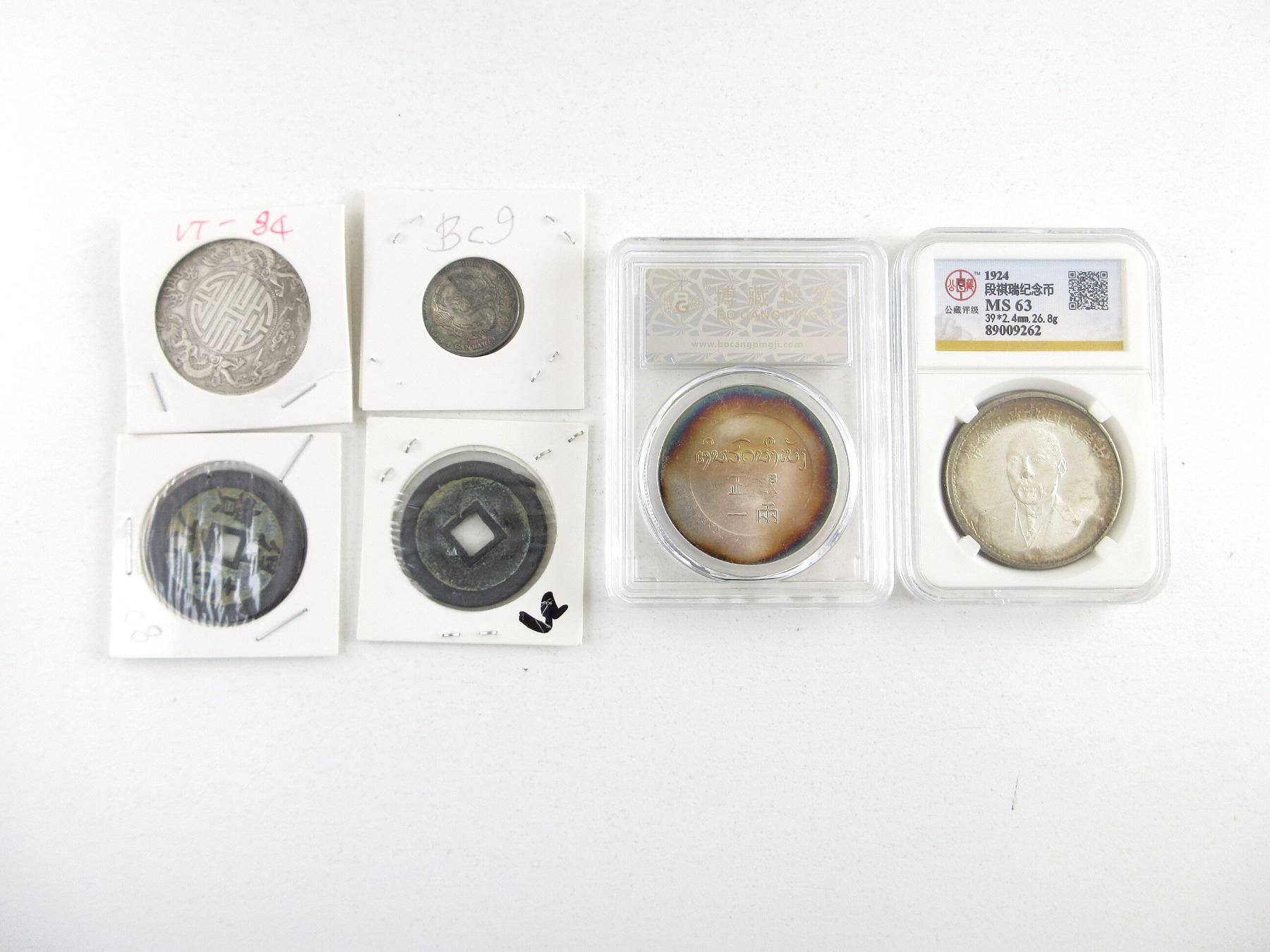 APPROX. (22) COINS / TOKENS, VARIOUS DENOMINATIONS / MATERIALS / DATES / SIZES, CONSIGNOR STATES: "A COLLECTION OF VARIOUS REPUBLIC OF CHINA WARLORDS TOKENS AND COINS", SOME WITH PLASTIC COVERS WITH VARIOUS MARKINGS, OTHERS IN CARDBOARD SLEEVES. SEE PHOTOS.