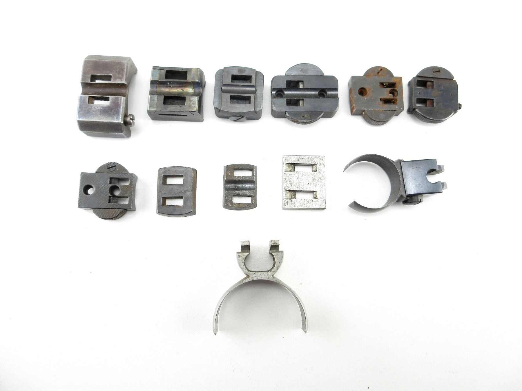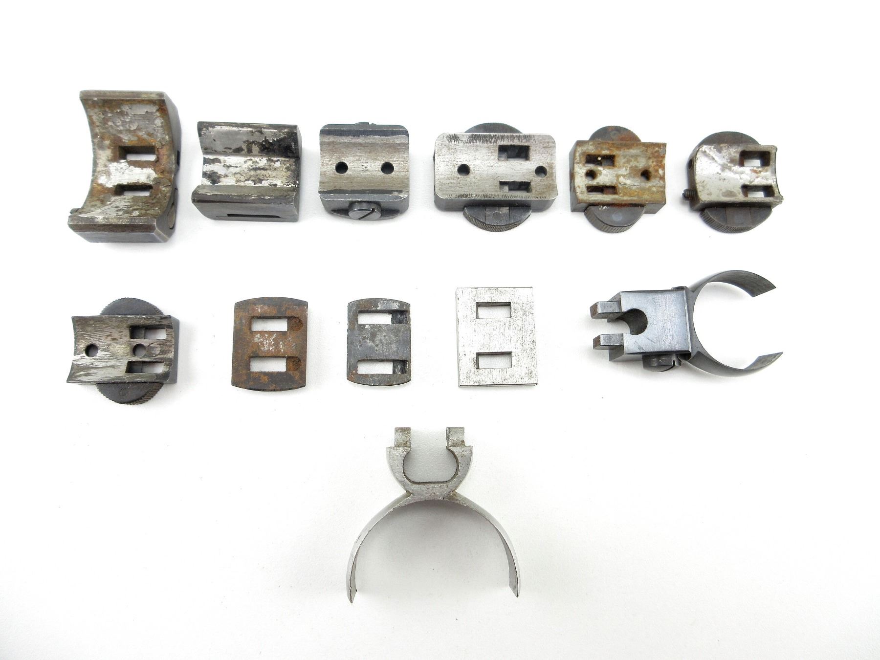 LOT INCLUDES; APPROX. (6) FRONT CLAW BASES, (4) REAR CLAW BASES, (2) RINGS, VARIOUS SIZES & STYLES, MAY NOT BE COMPLETE. MAY REQUIRE FITTINGS. SEE PHOTOS.