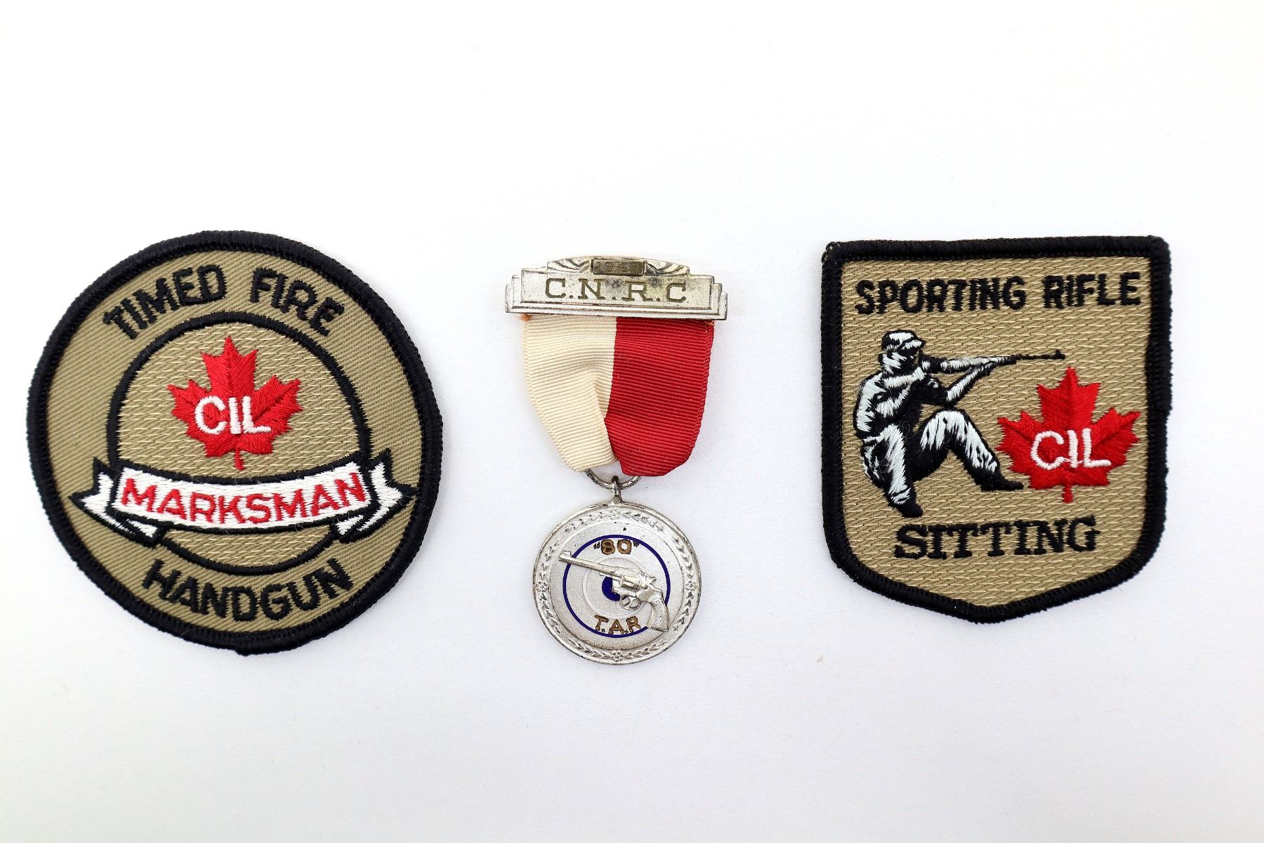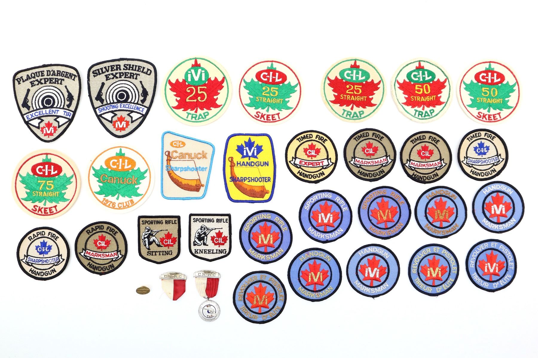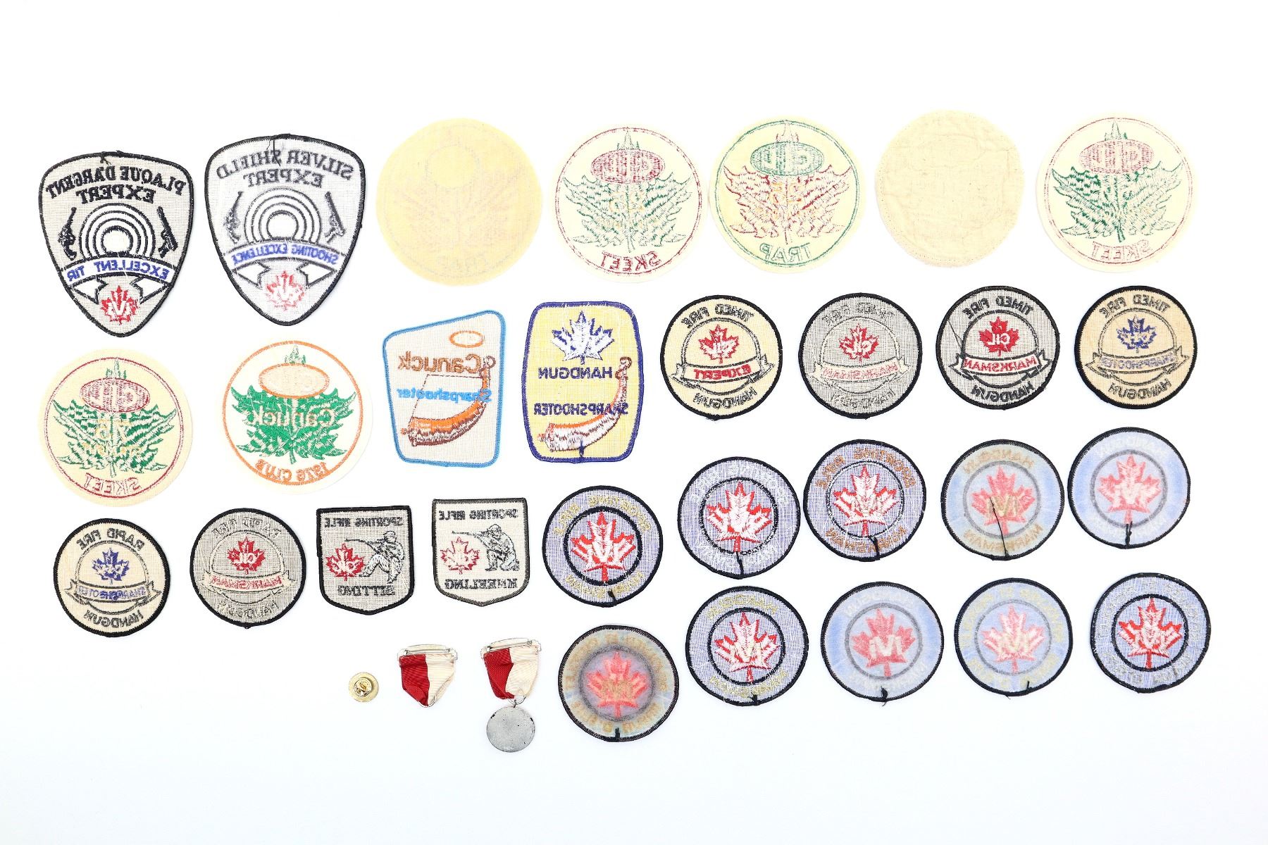 LOT INCLUDES; APPROX. (29) ASSORTED MARKSMEN / ETC. PATCHES, VARIOUS CLUBS / ORGANIZATIONS / LEVELS & (2) ASSORTED C.N.R.C. MEDALS. SEE PHOTOS.