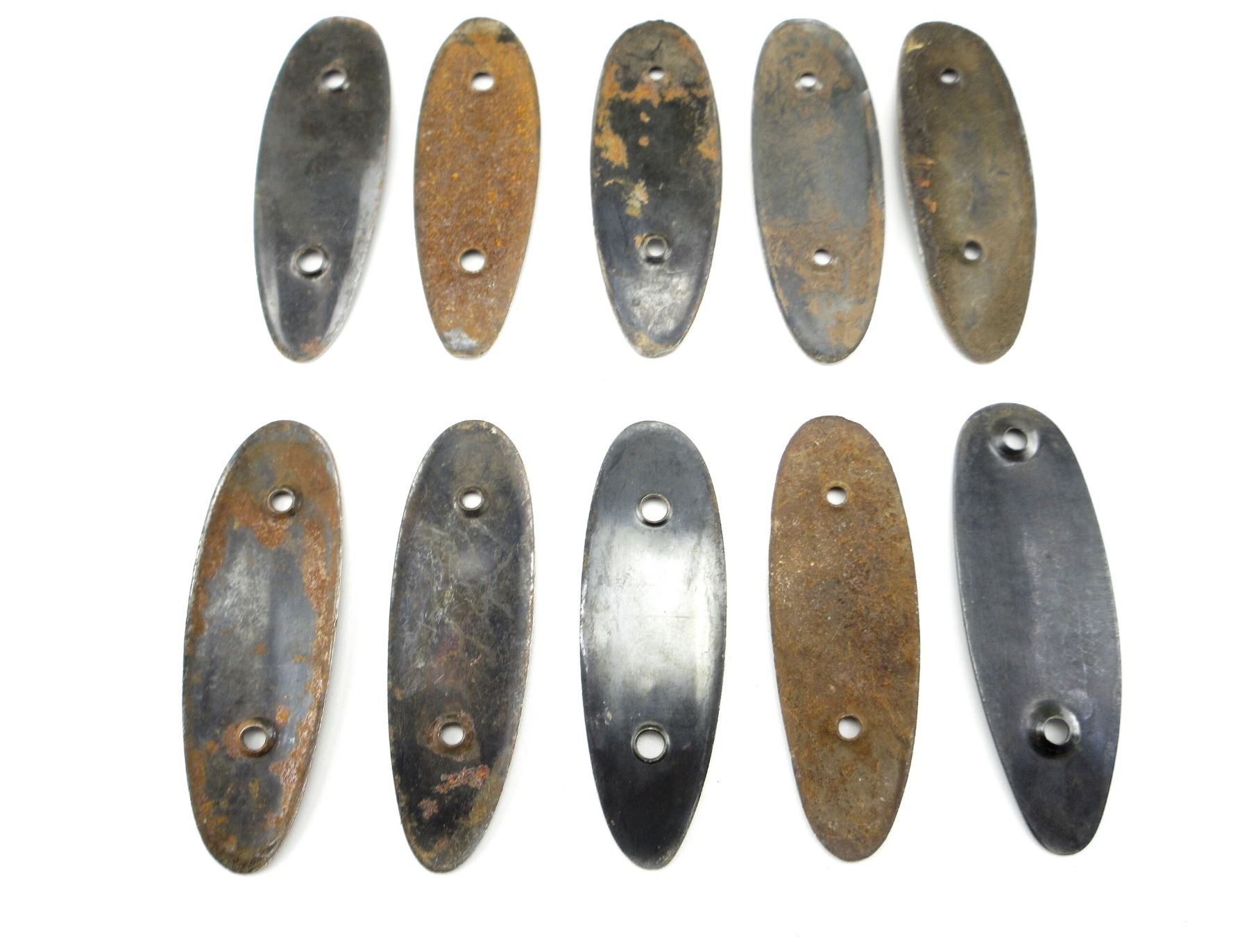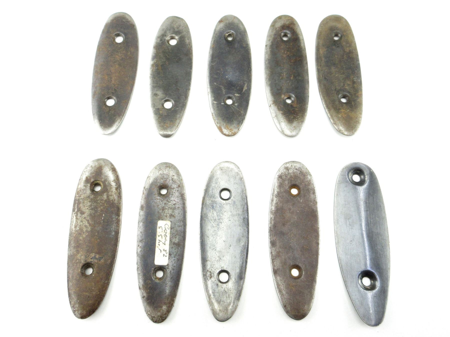LOT INCLUDES; APPROX. (10) STEEL BUTT PLATES, SMOOTH, VARIOUS SIZES, NO SCREWS. MAY REQUIRE FITTING. SEE PHOTOS.