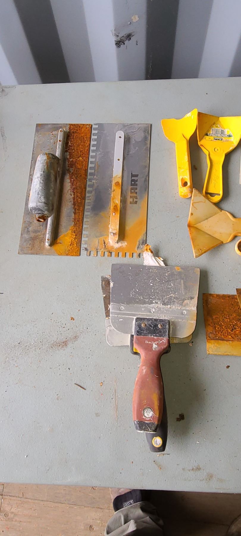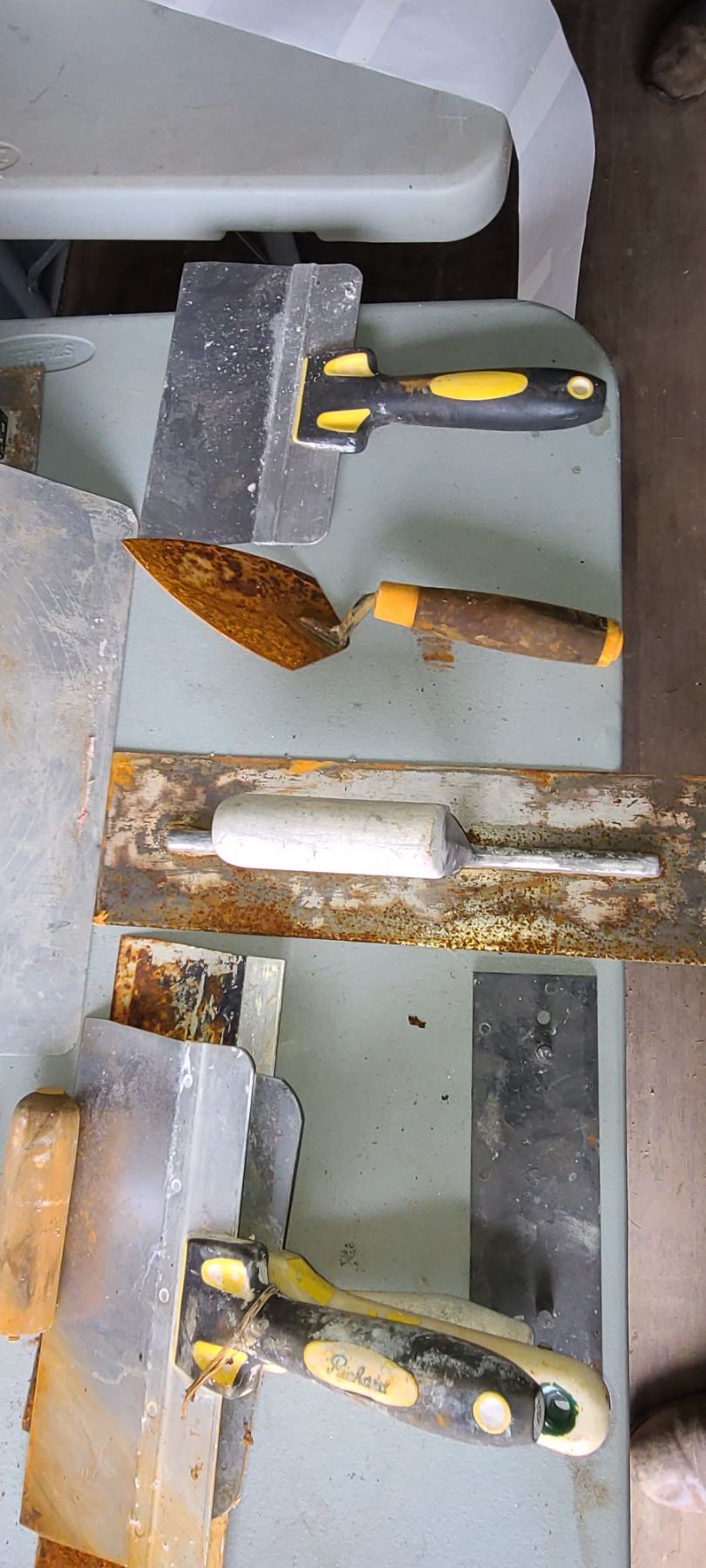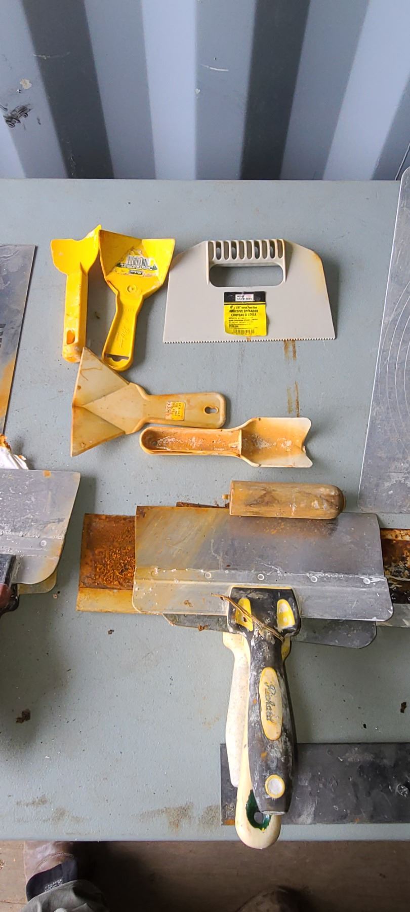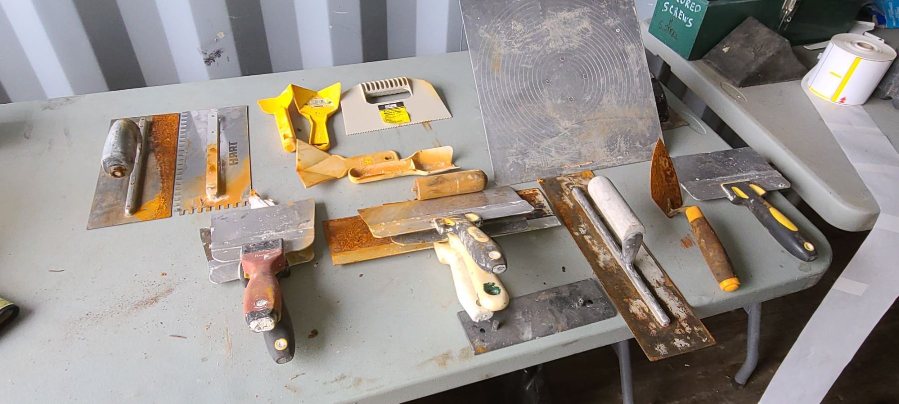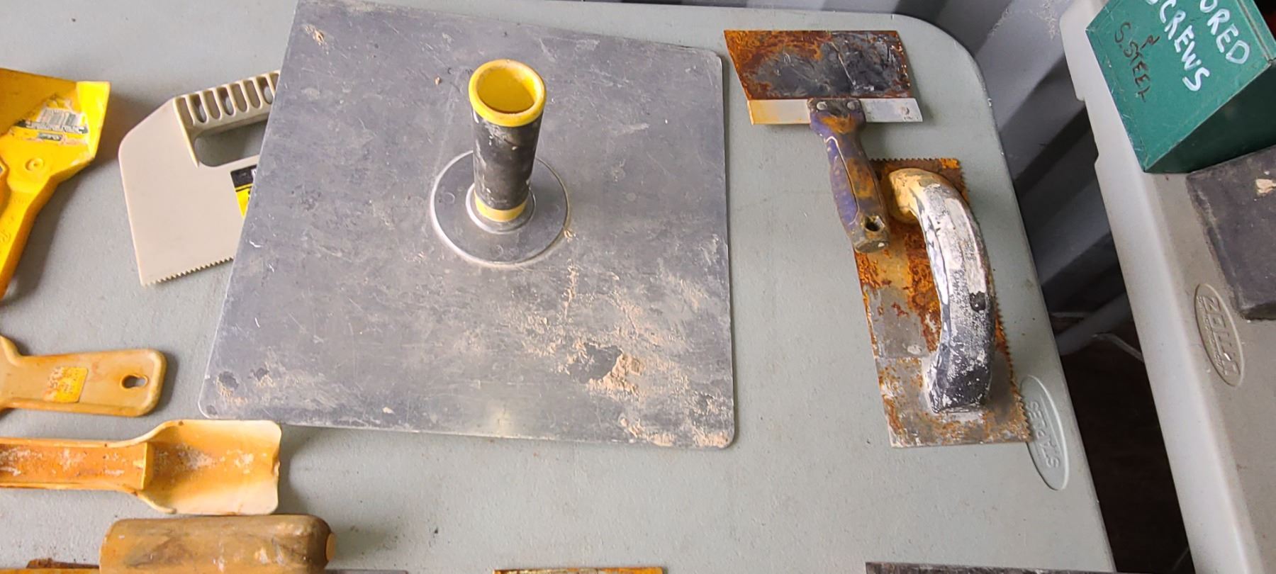 ASSORTED DRYWALL/ TILE TOOLS AND TROWELS