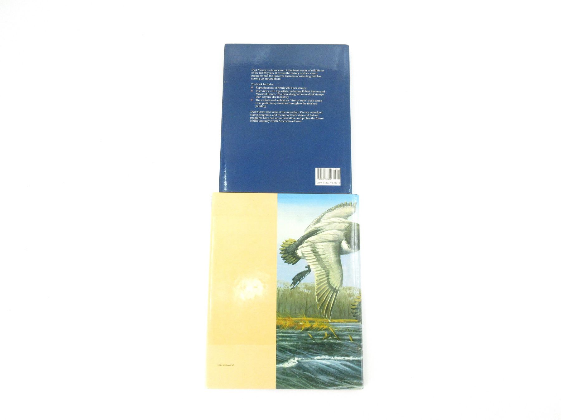HARD COVERS WITH DUST COVERS, LOT INCLUDES; (1) "DUCK STAMPS AND PRINTS, THE COMPLETE FEDERAL AND STATE EDITIONS" BOOK PUBLISHED BY PARK LANE, INTRODUCTION BY JOE MCCADDIN, ISBN: 0-517-66573-5 & (1) "DUCK STAMPS ART IN THE SERVICE OF CONVERSATION" BOOK BY SCOTT WEIDENSAUL, ISBN: 0-8317-6381-7, SEE PHOTOS.