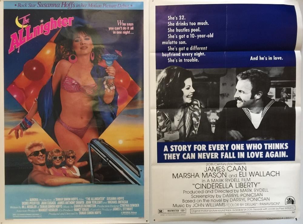 'The Allnighter' (two copies) , 'Cinderella Liberty', a Walt Disney poster, reproduction or later posters for Citizen Kane, The Maltese Falcon.