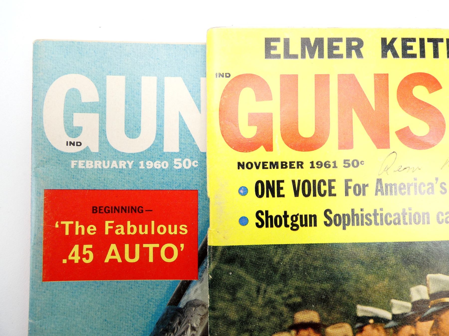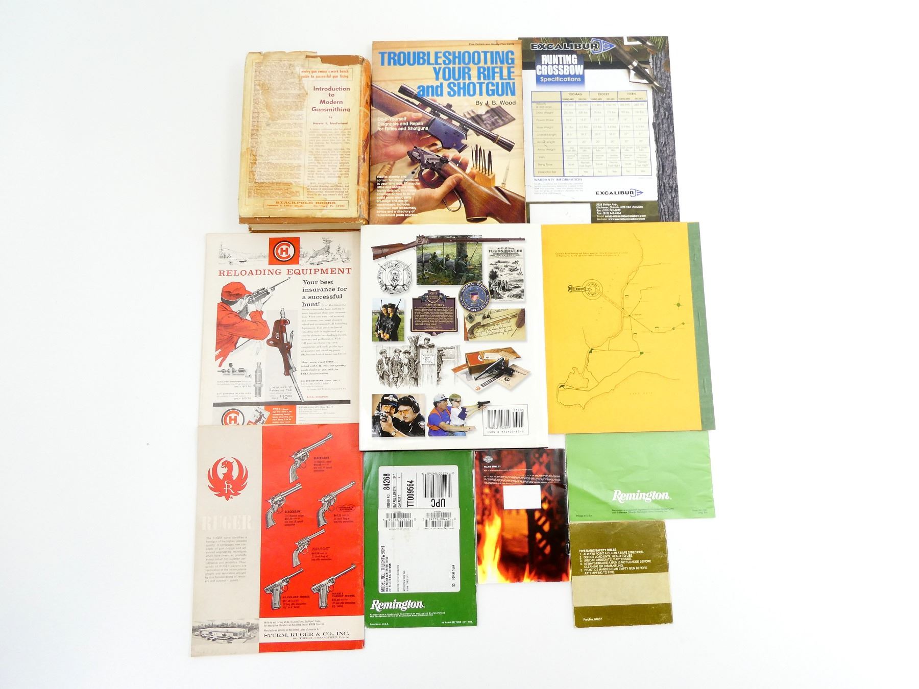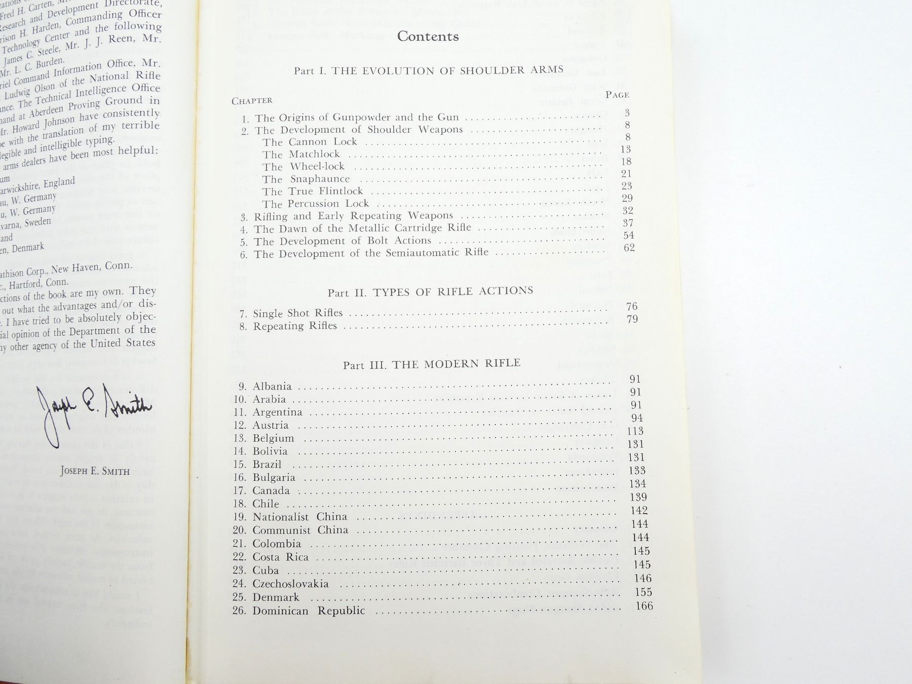 LOT INCLUDES; (1) "NRA, AN AMERICAN LEGEND" BOOK, BY JEFFREY L. RODENGEN, HARD COVER WITH DUST COVER, ISBN 0-945903-81-2, (1) "THE BOOK OF RIFLES" BOOK, BY W.H.B. SMITH & JOSEPH E. SMITH, HARD COVER WITH DUST COVER, SECOND PRINTING 1965, (1) "TROUBLESHOOTING YOUR RIFLE AND SHOTGUN" BOOK, BY J.B. WOOD, SOFT COVER, ISBN 0695-81198-3, (1) "THE SPORTSMAN'S CATALOG", SOFT COVER, DATED 1961, (1) "GUNS & AMMO" MAGAZINE, SOFT COVER, DATED FEBRUARY 1960, IN PLASTIC, (1) "GUNS & AMMO" MAGAZINE, SOFT COVER, DATED NOVEMBER 1961, IN PLASTIC, ETC. SEE PHOTOS.