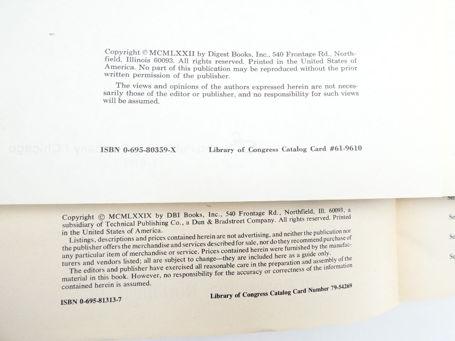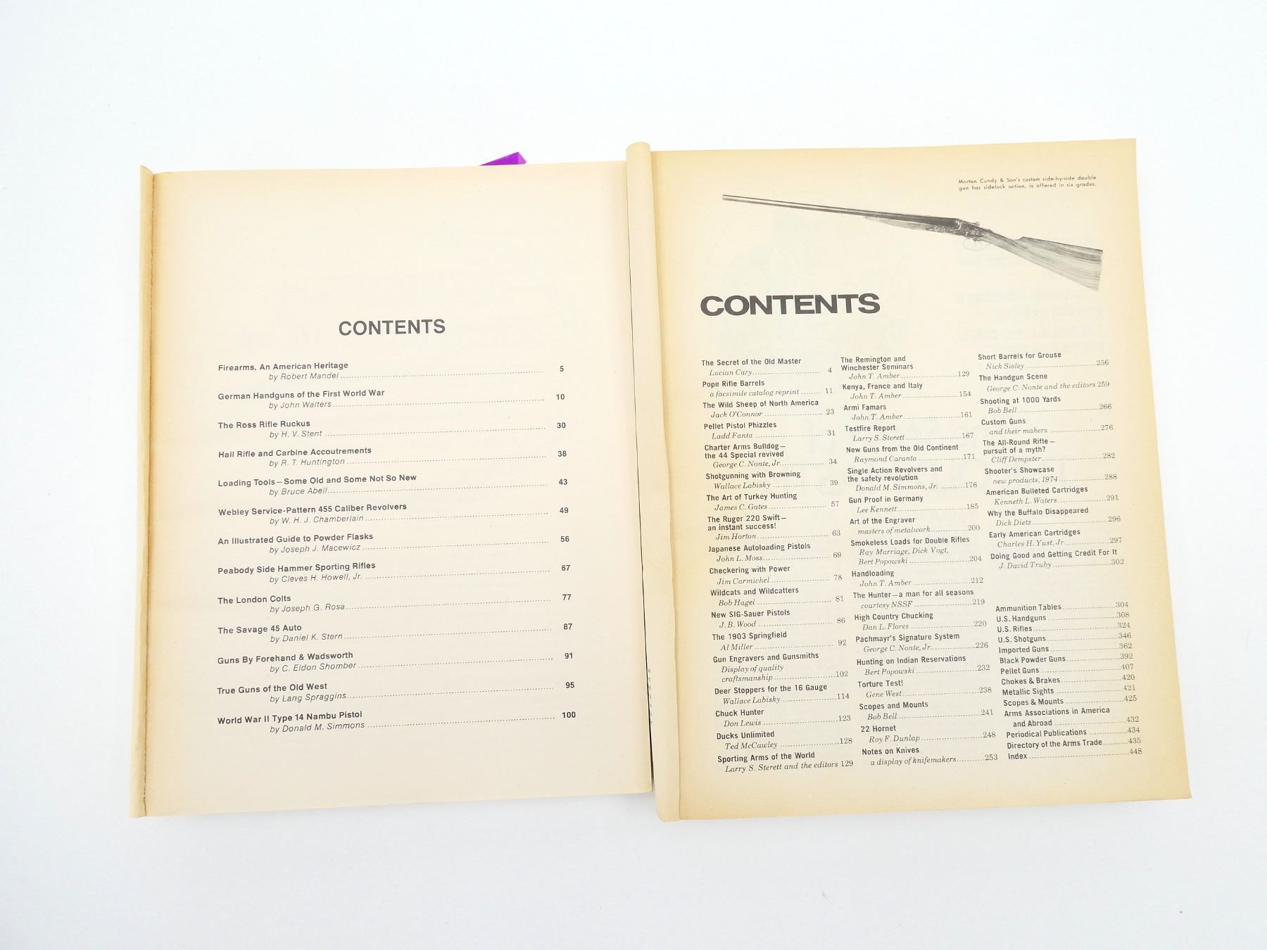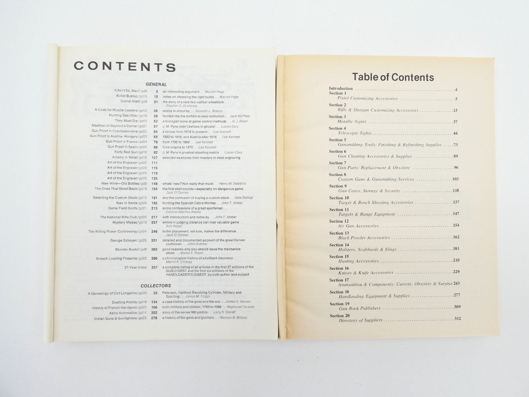 SOFT COVERS, LOT INCLUDES; (1) "GUN DIGEST, 29TH ANNIVERSARY 1975 DELUXE EDITION" CATALOGUE BY JOHN T. AMBER, ISBN: 0-695-80498-7, (1) "GUN DIGEST TREASURY" CATALOGUE BY JOHN T. AMBER, ISBN: 0-695-80359-X, (1) "GUN DIGEST BOOK OF GUN ACCESSORIES & SERVICES" BOOK EDITED BY JOSEPH J. SCHROEDER AND THE EDITORS OF GUN DIGEST, ISBN: 0-695-81313-7 & (1) "GUN COLLECTOR'S DIGEST, VOLUME II" CATALOGUE EDITED BY JOSEPH J. SCHROEDER, ISBN: 0-695-80684-X. SEE PHOTOS.