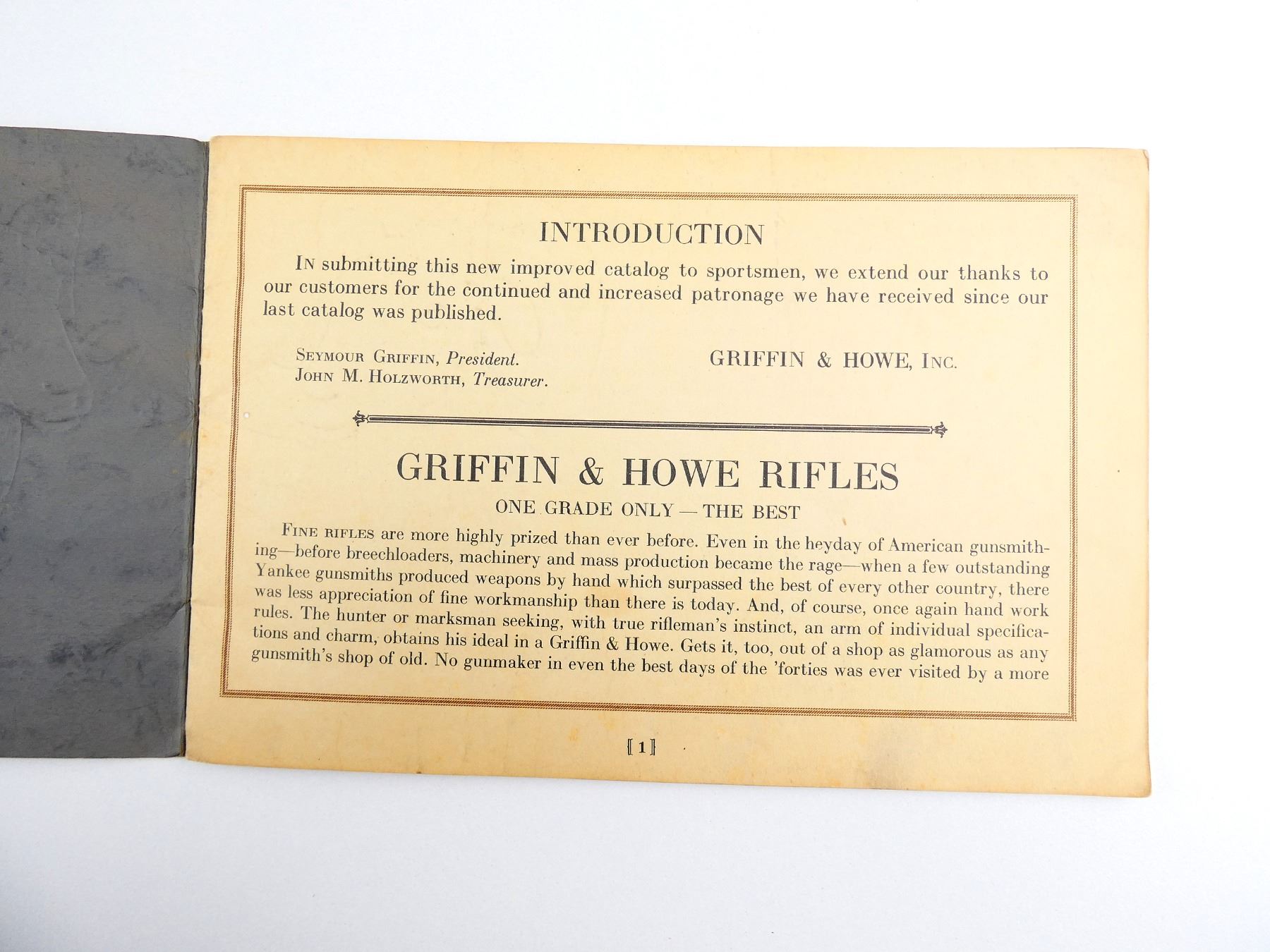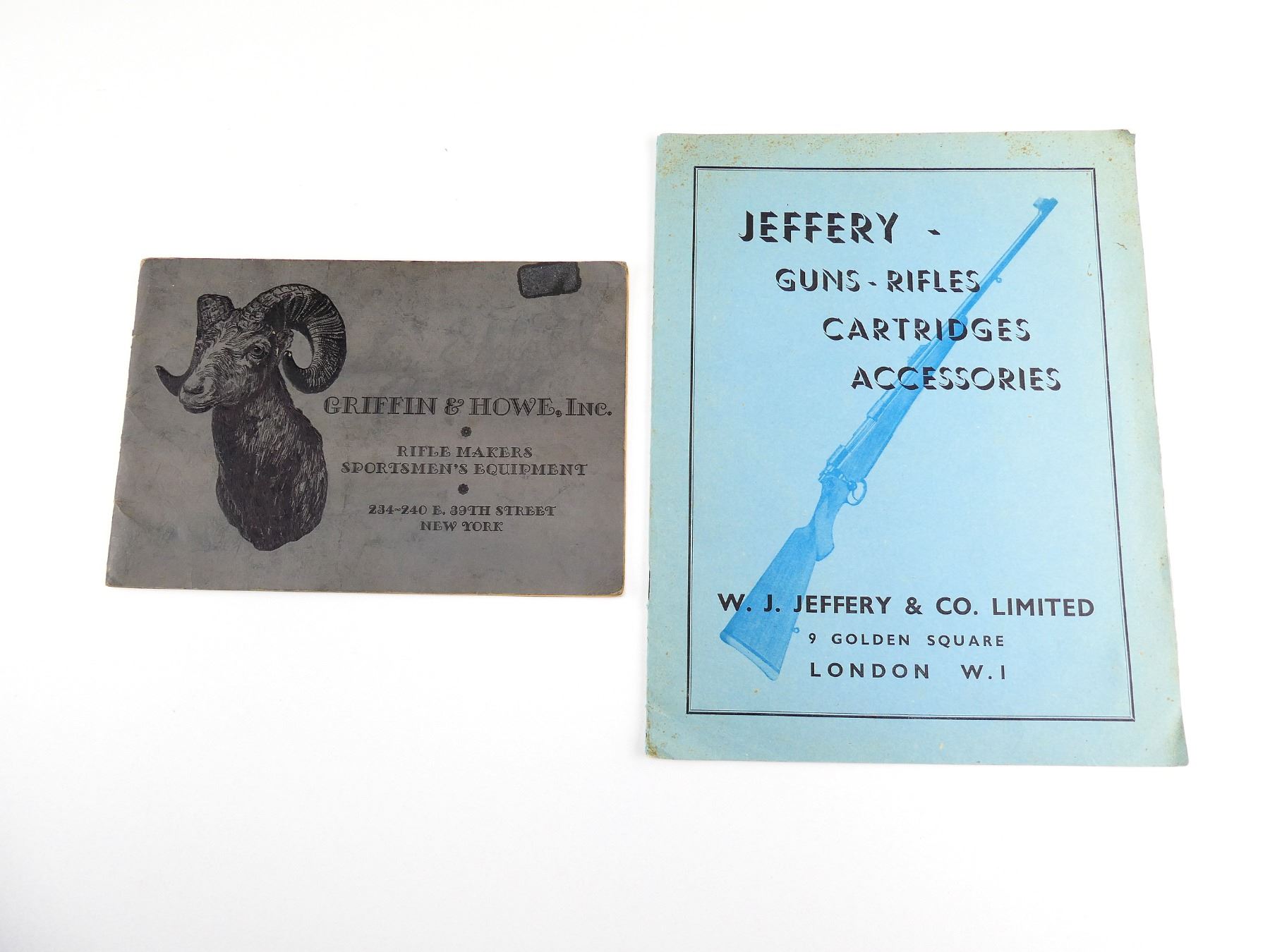 SOFT COVERS, LOT INCLUDES; (1) "JEFFERY - GUNS - RIFLES, CARTRIDGES, ACCESSORIES" CATALOGUE BY W. J. JEFFERY & CO. LIMITED & (1) "GRIFFIN & HOWE INC. RIFE MAKERS SPORTSMEN'S EQUIPMENT" CATALOGUE. SEE PHOTOS.