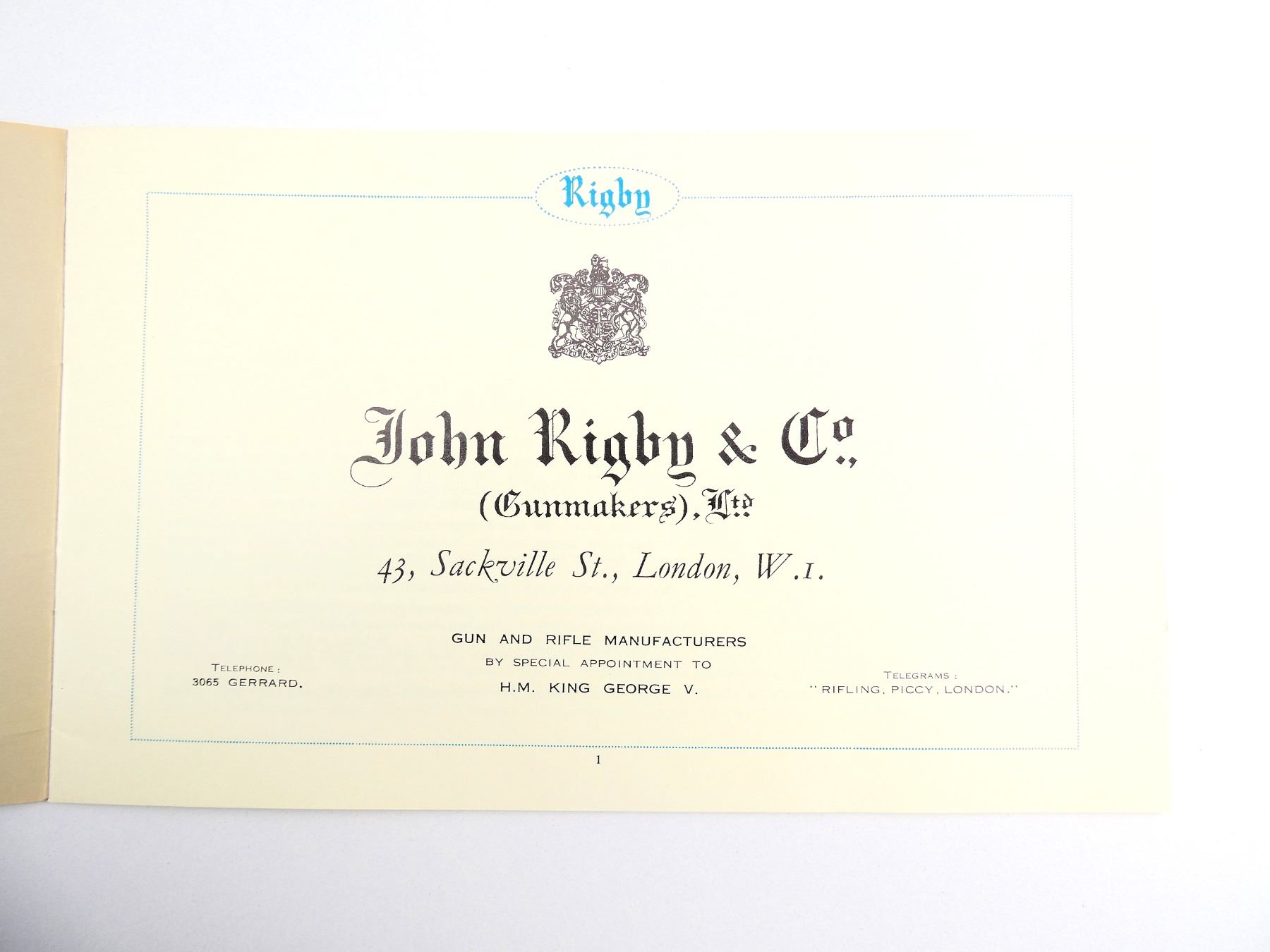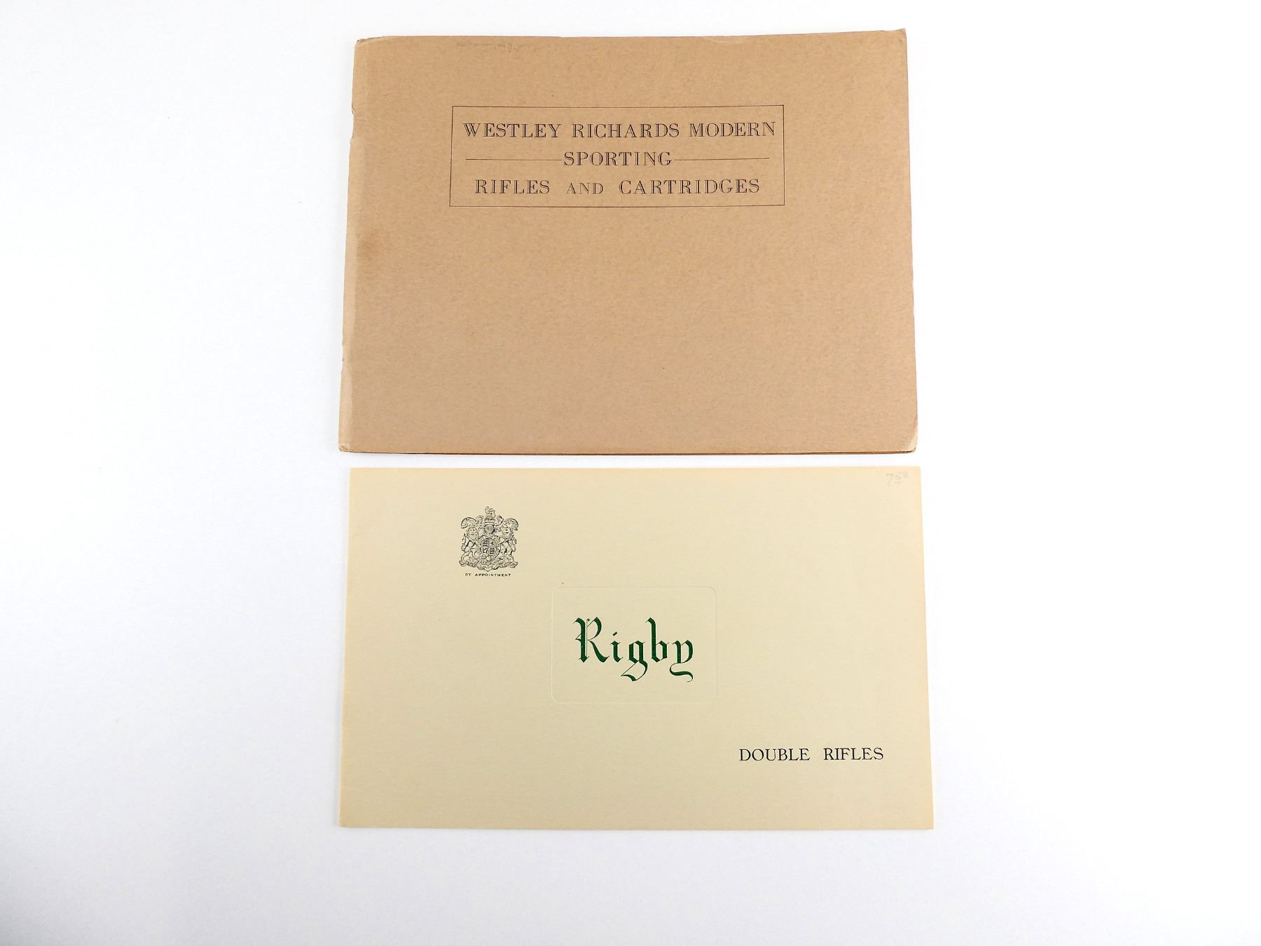 SOFT COVERS, LOT INCLUDES; (1) "RIGBY DOUBLE RIFLES" CATALOGUE BY GUN AND RIFLE MANUFACTURERS, DATED 1932 & (1) "WESTLEY RICHARDS MODERN SPORTING RIFLES AND CARTRIDGES" CATALOGUE BY WESTLEY RICHARDS & CO. LTD. SEE PHOTOS.