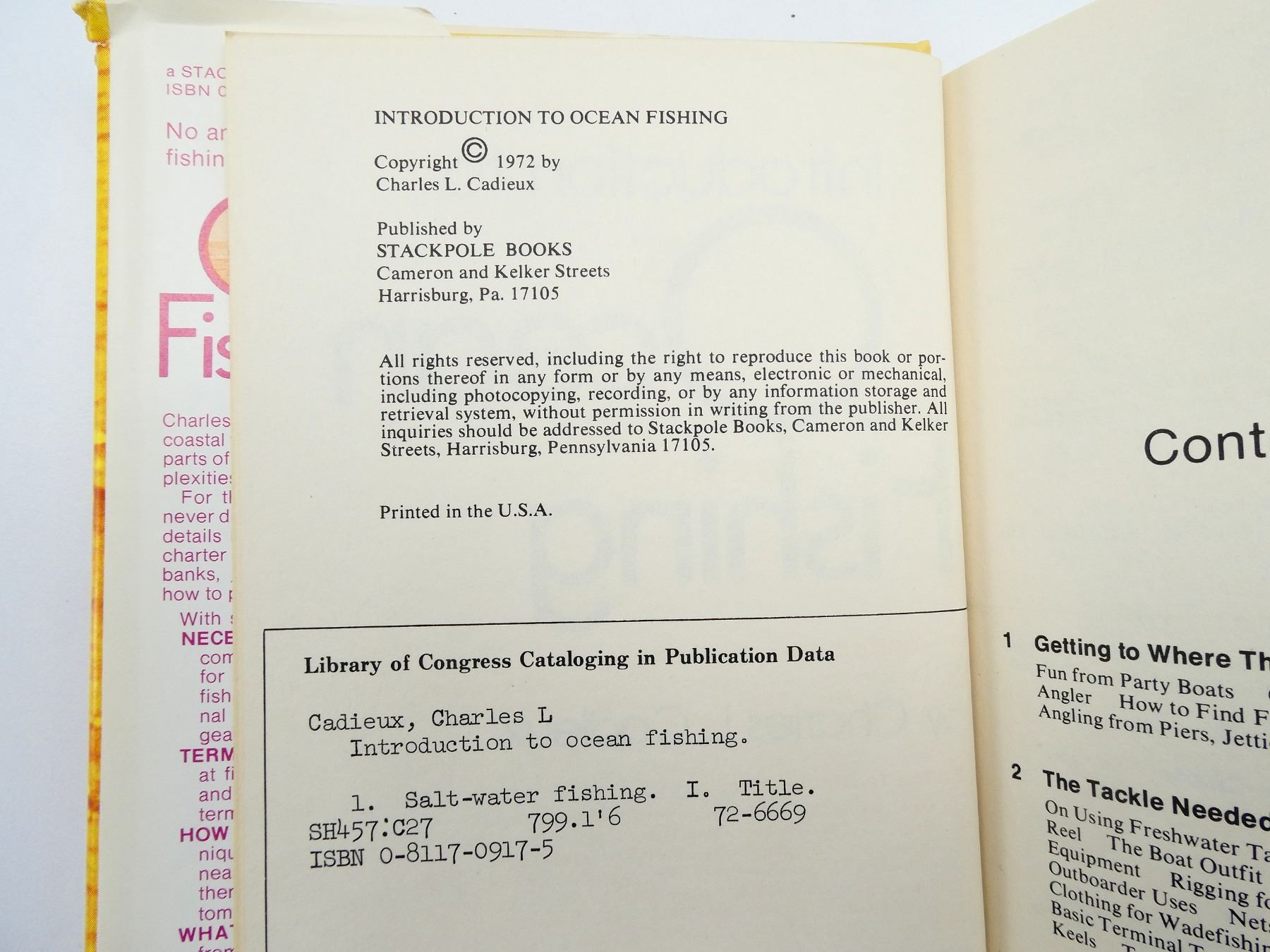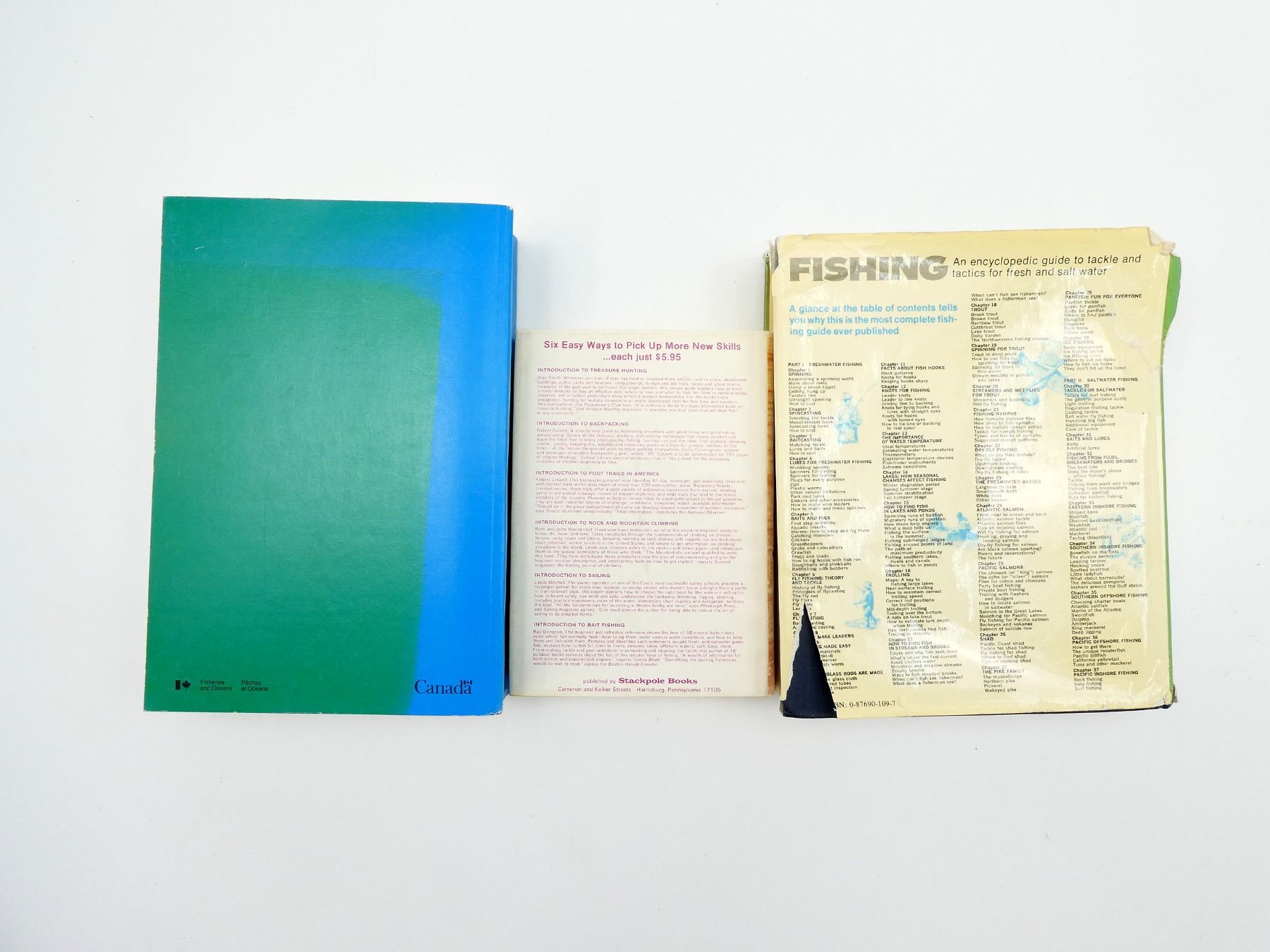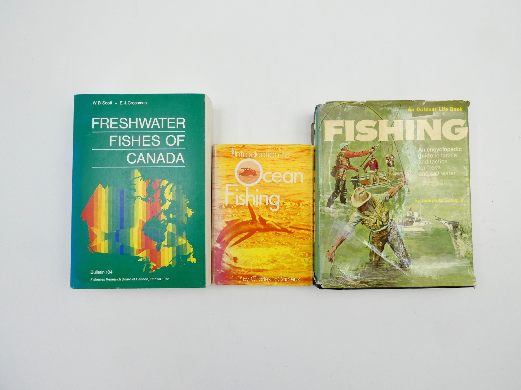 LOT INCLUDES; (1) "INTRODUCTION TO OCEAN FISHING" BOOK BY CHARLES L. CADIEUX, HARD COVER WITH DUST COVER, ISBN: 0-8117-0917-5, (1) "FRESHWATER FISHES OF CANADA" BOOK BY W.B. SCOTT & E.J. CROSSMAN, SOFT COVER, ISBN: 0-660-10239-0 & (1) "FISHING" BOOK BY JOSEPH D. BATES JR., HARD COVER WITH DUST COVER, SBN: 0-87690-109-7. SEE PHOTOS.