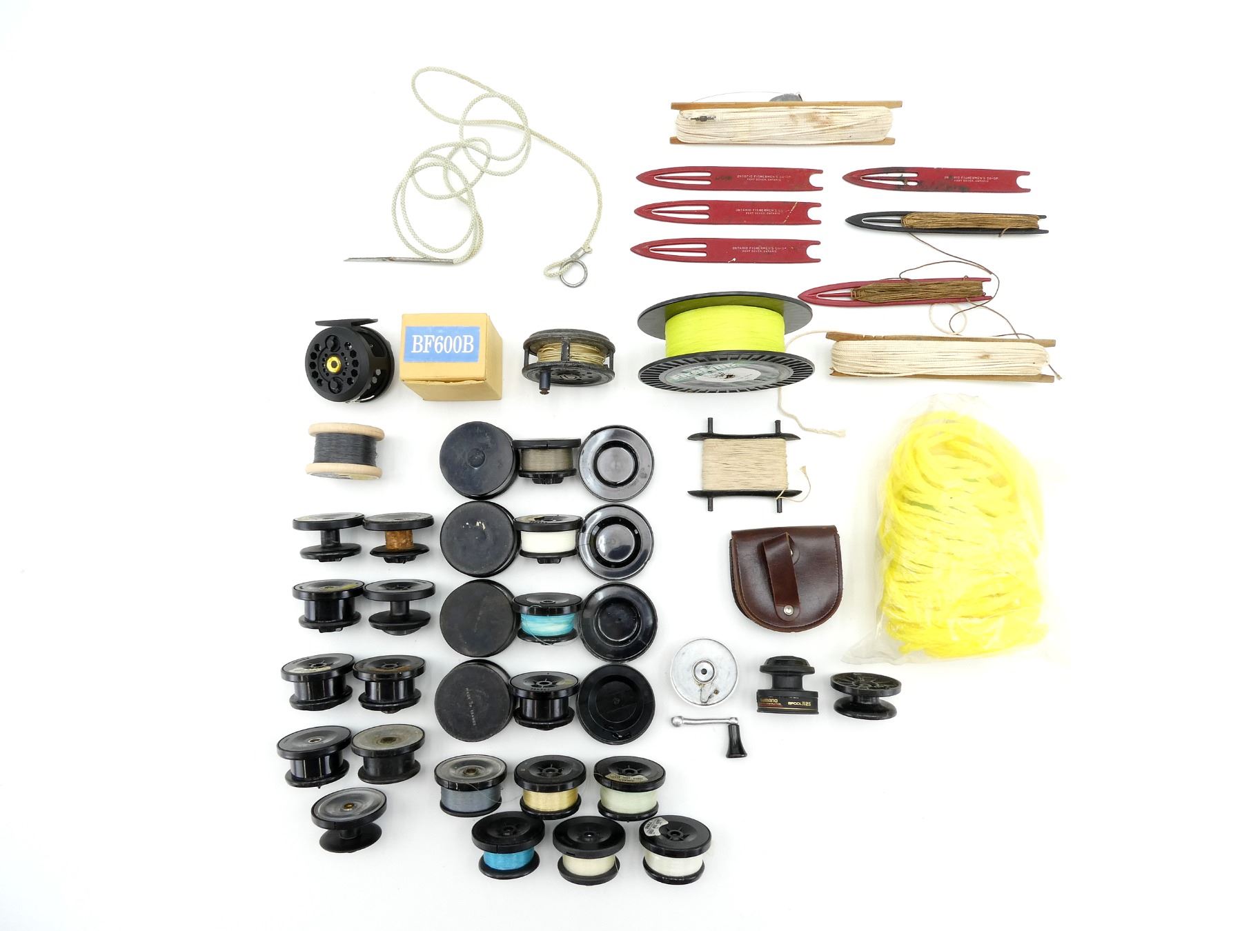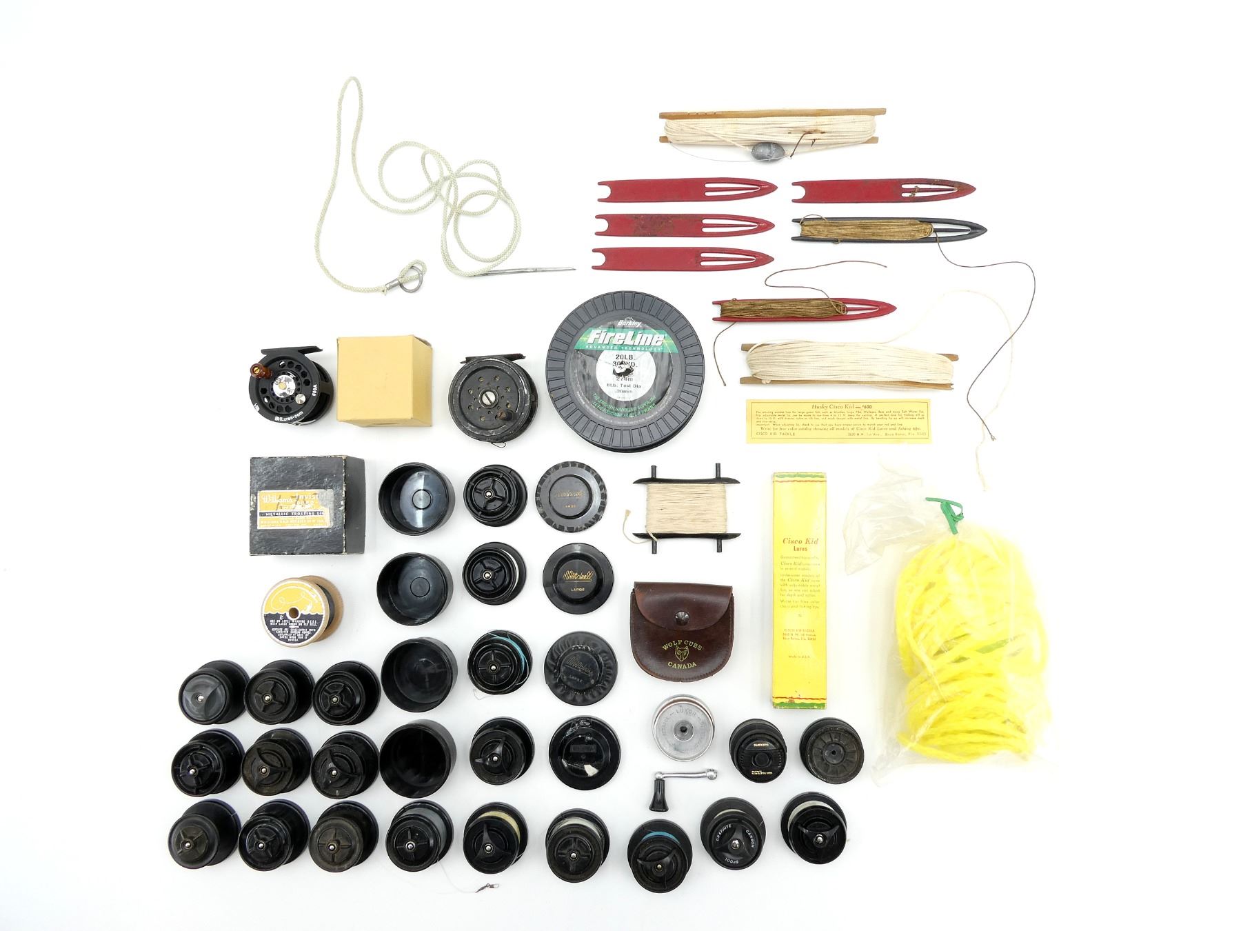 ASSORTED FISHING REEL SPOOLS, ROPE, ETC. LOT