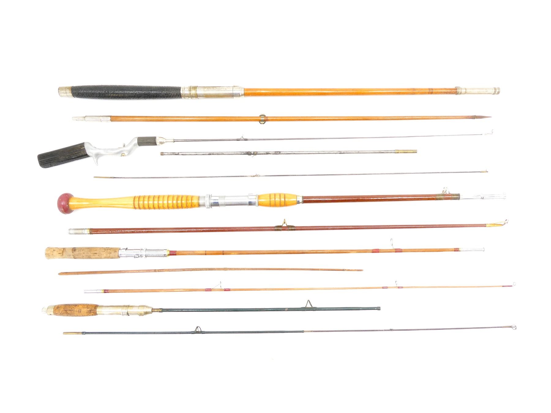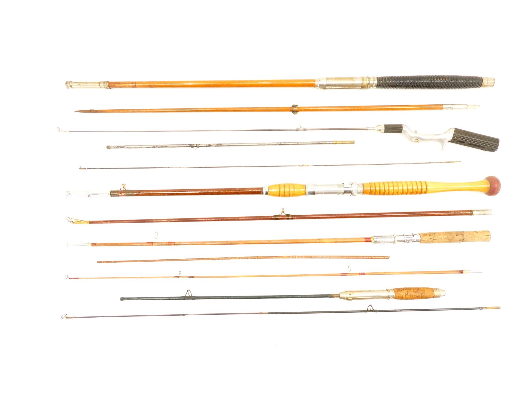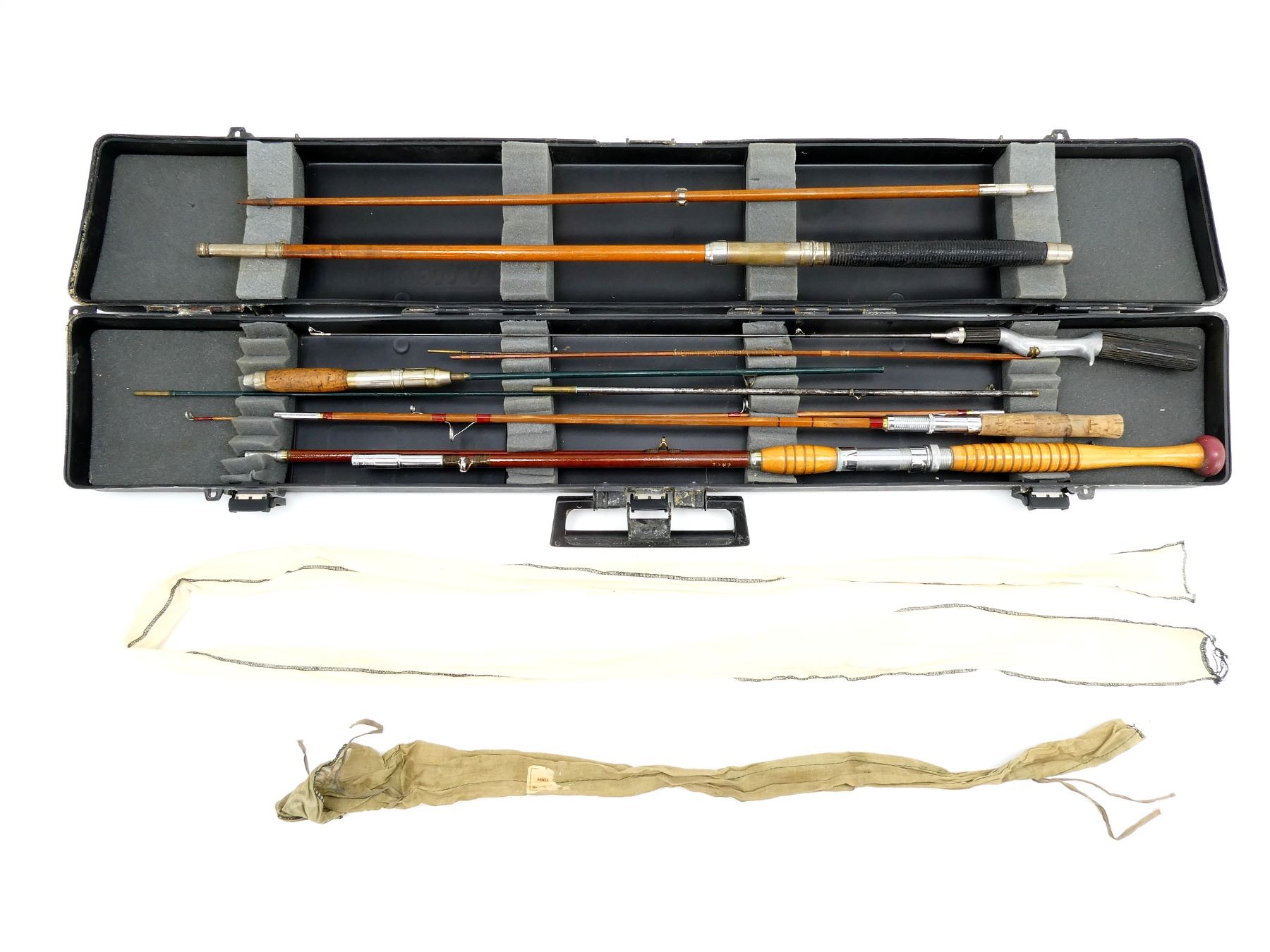 LOT INCLUDES; (5) FISHING RODS WITH FABRIC AND PLASTIC CASES, UNTESTED. SEE PHOTOS.