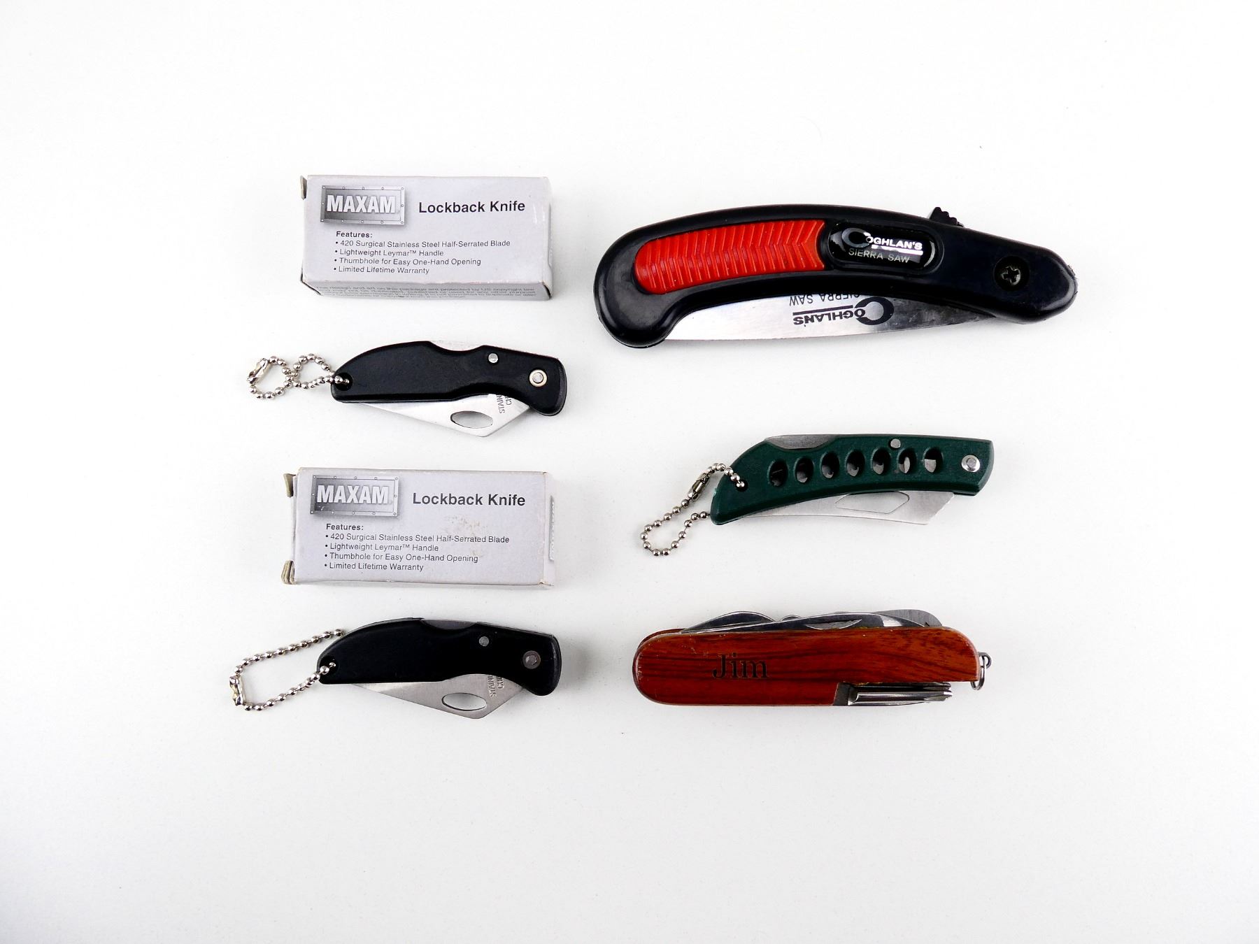 LOT INCLUDES; (5) ASSORTED FOLDING POCKET KNIVES, VARIOUS MANUFACTURERS, TWO APPEAR NOS WITH ORIGINAL PACKAGING, BLADES APPROX. 1.5"-4" & OAL'S APPROX. 4"-9". SEE PHOTOS.