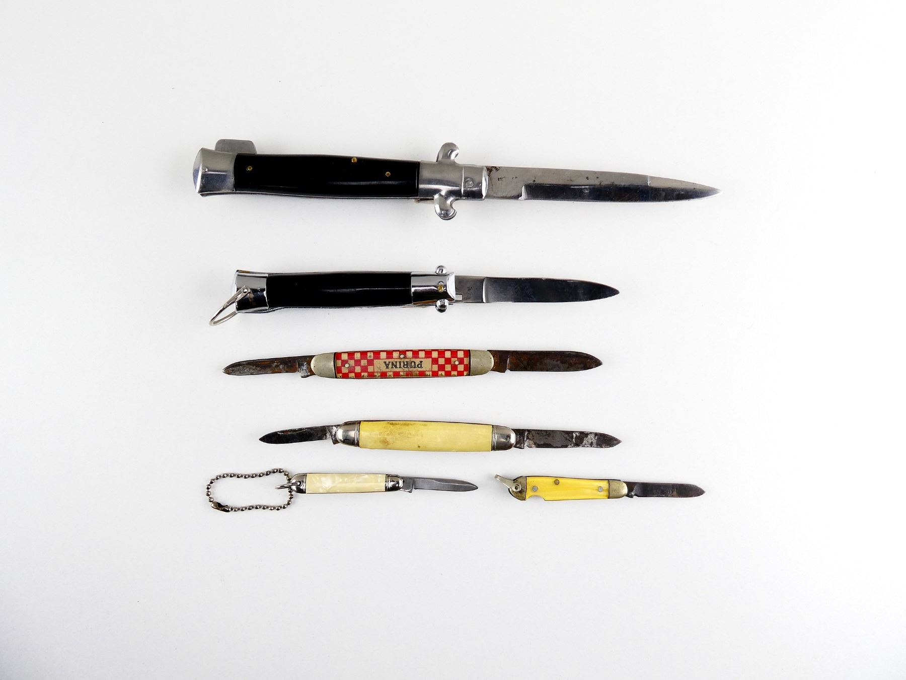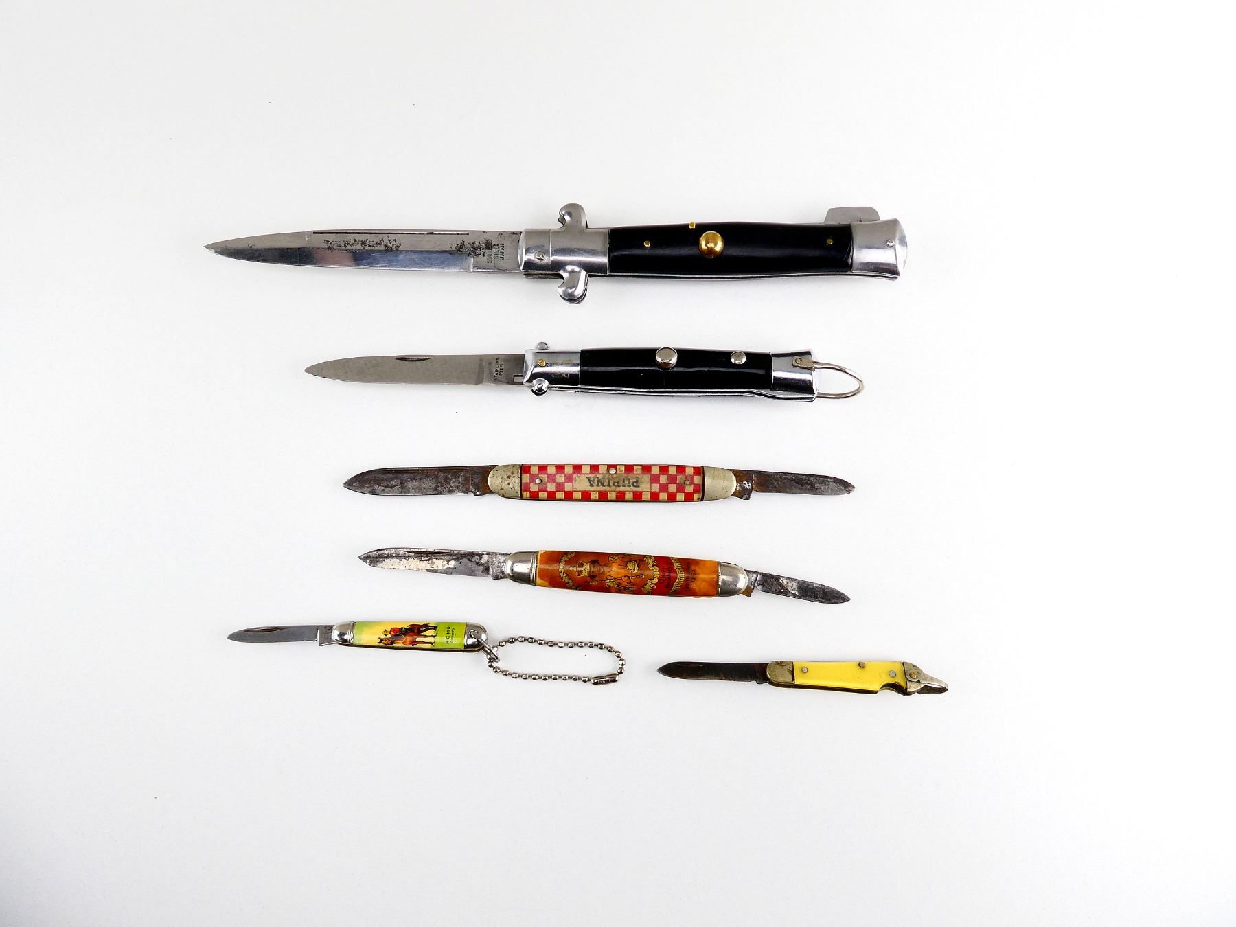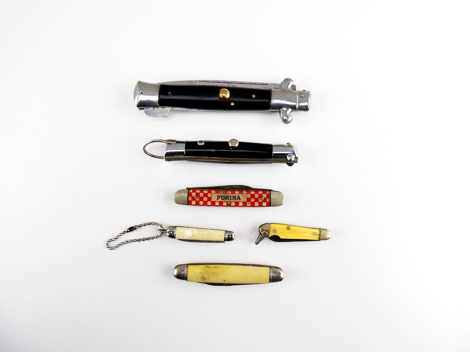 LOT INCLUDES; (6) ASSORTED FOLDING POCKET KNIVES, VARIOUS MANUFACTURERS, BLADES APPROX. 1.25"-4" & OAL'S APPROX. 3.25"-9". SEE PHOTOS.