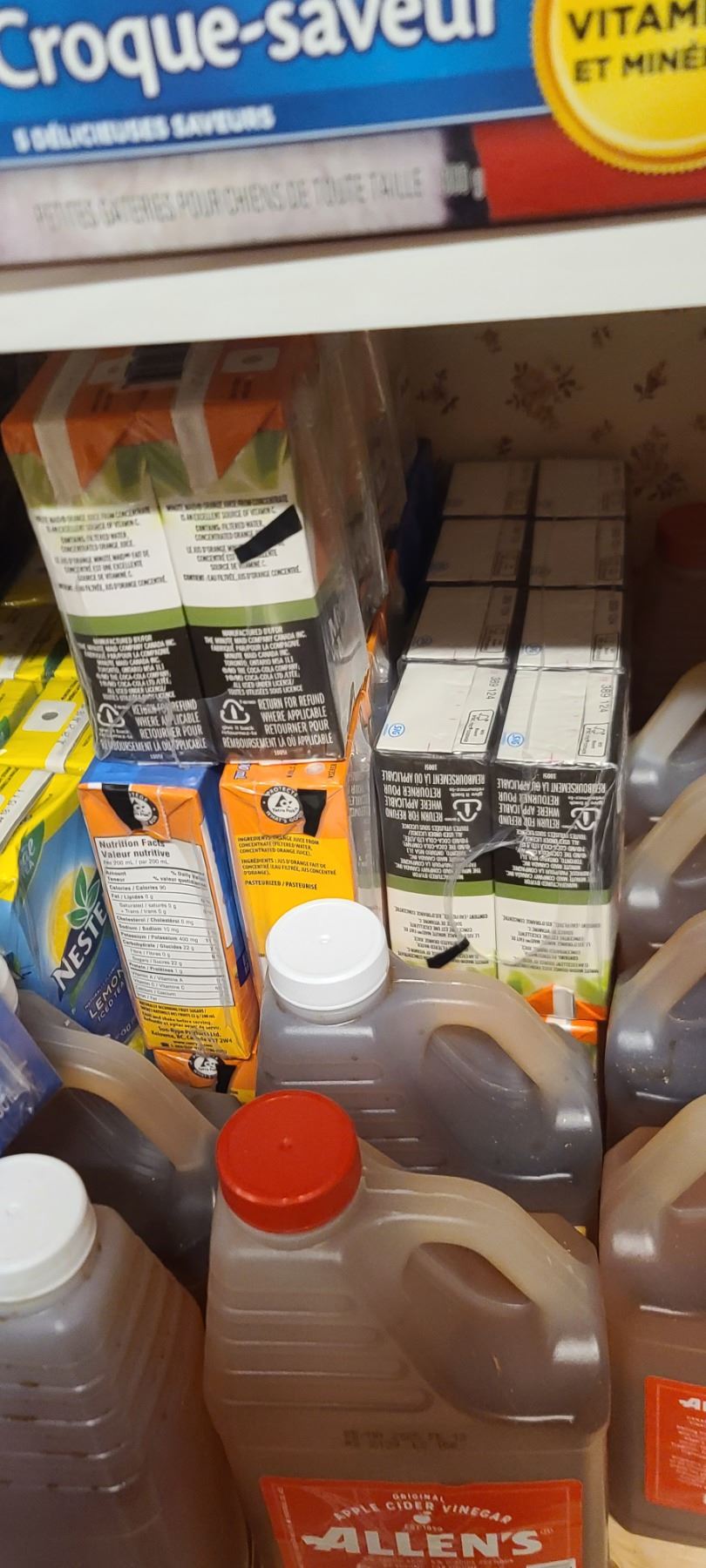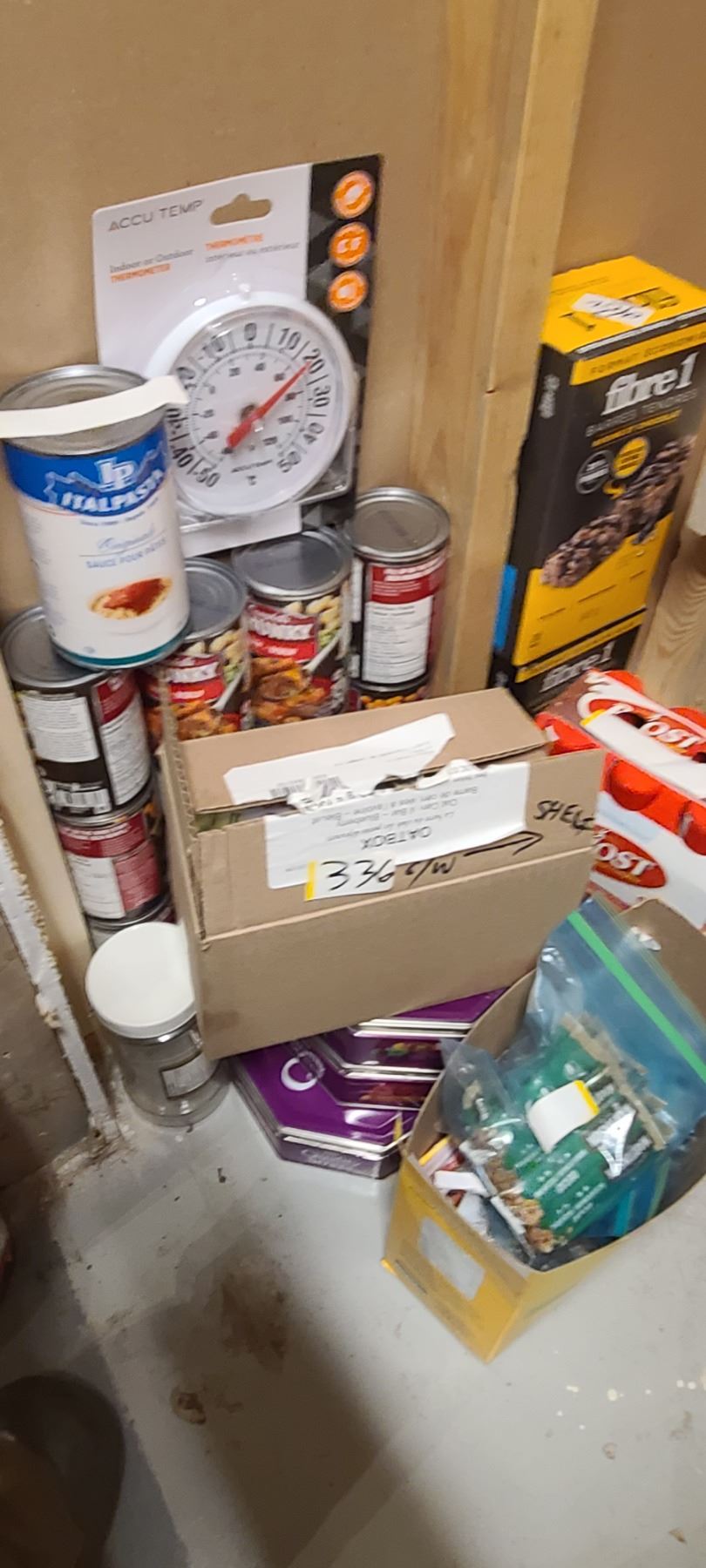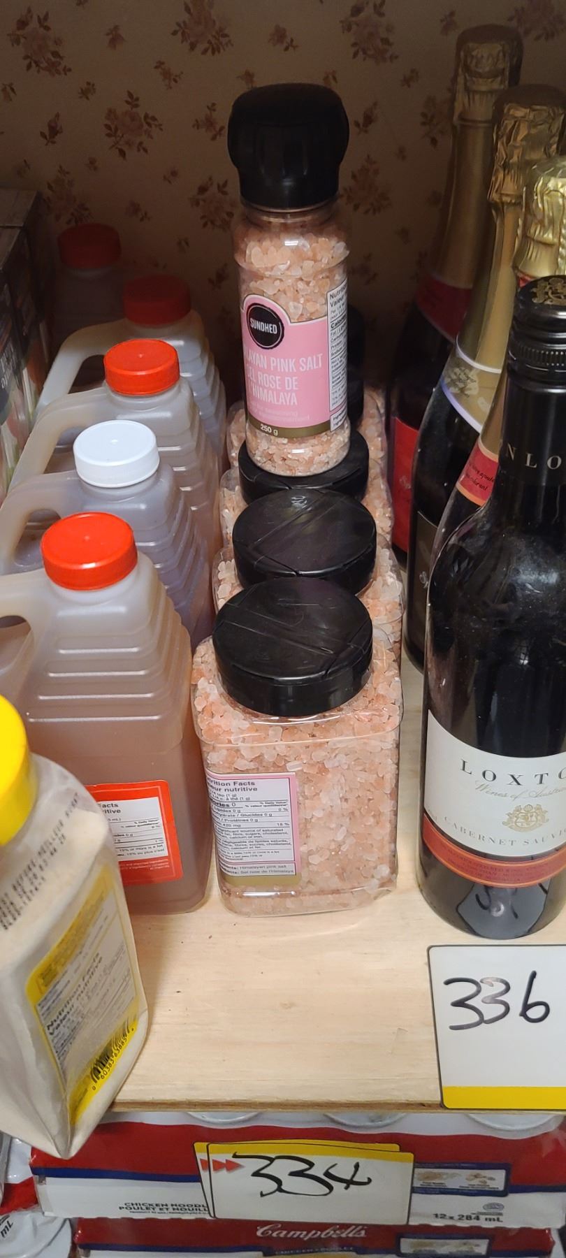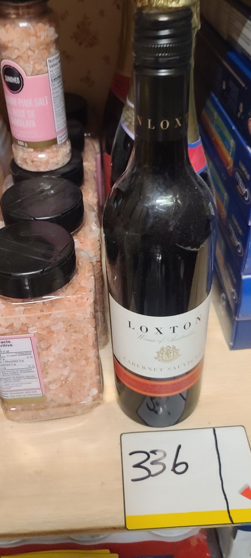 ASSORTED FOOD ITEMS ON FLOOR AND ON FIRST SHELF INCL WINE BOTTLES SEE NOTE IN LOT 300A