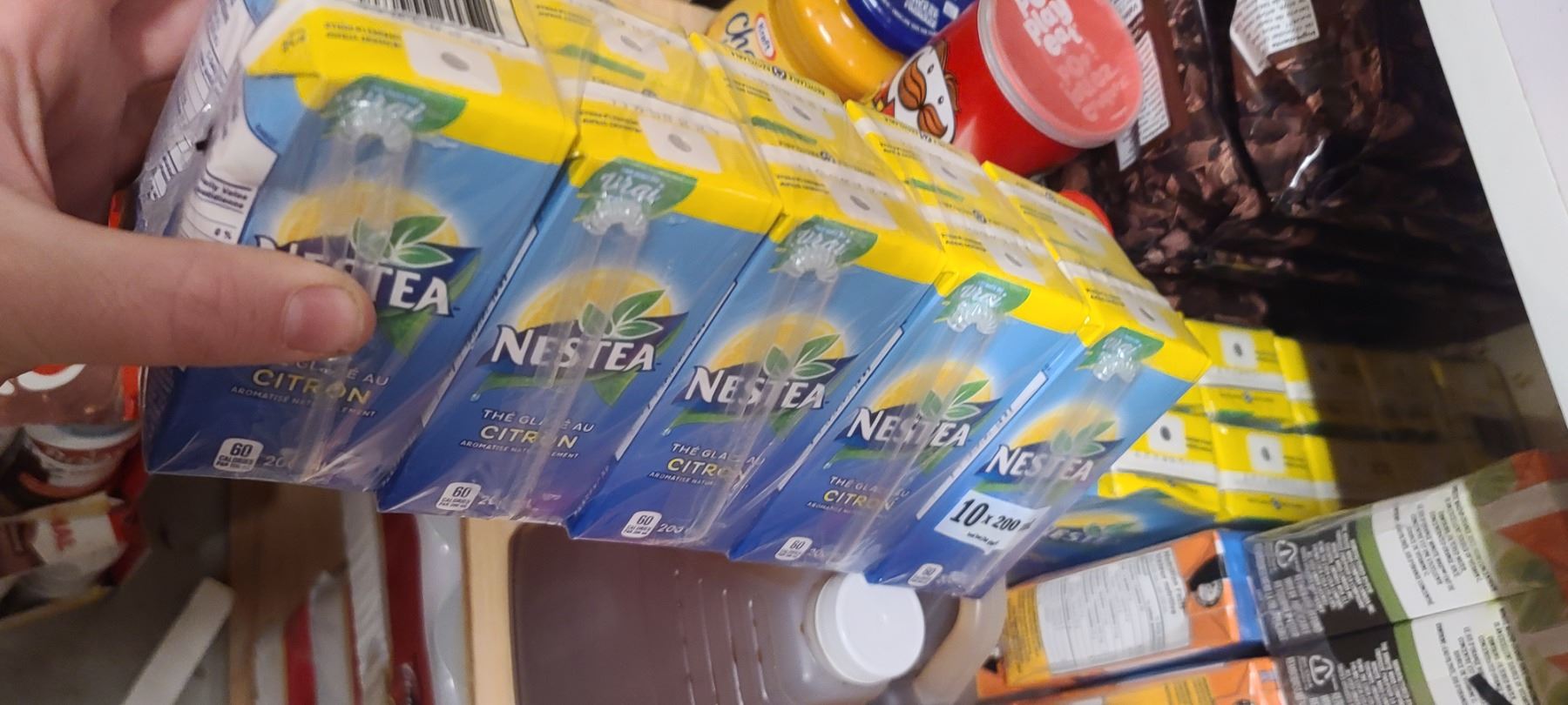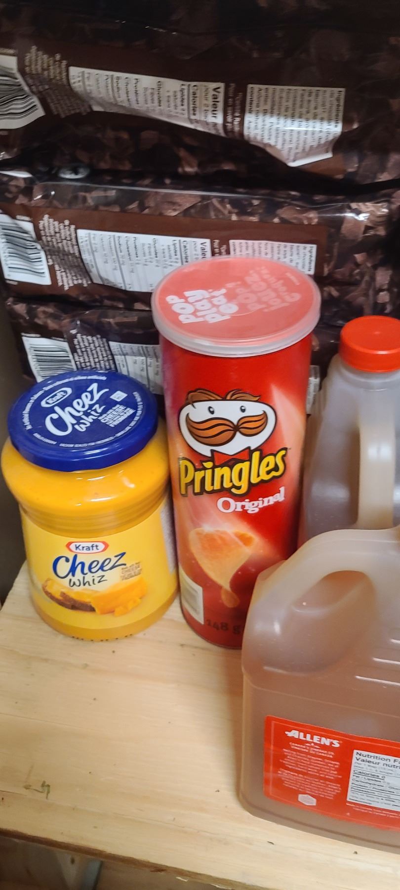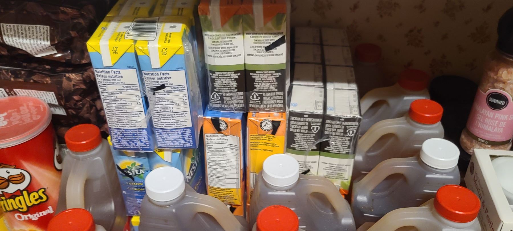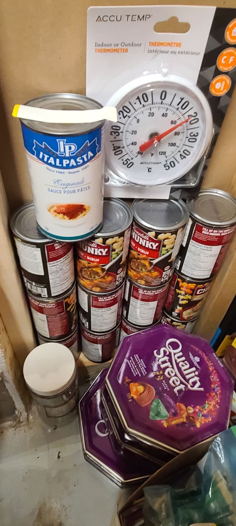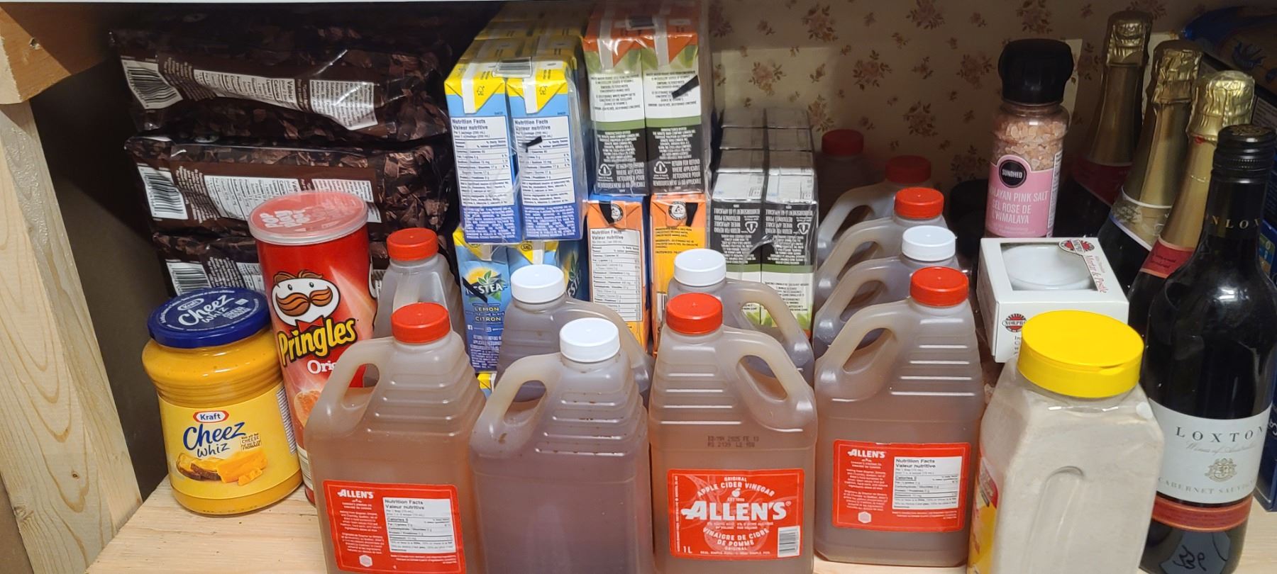 ASSORTED FOOD ITEMS ON FLOOR AND ON FIRST SHELF INCL WINE BOTTLES SEE NOTE IN LOT 300A
