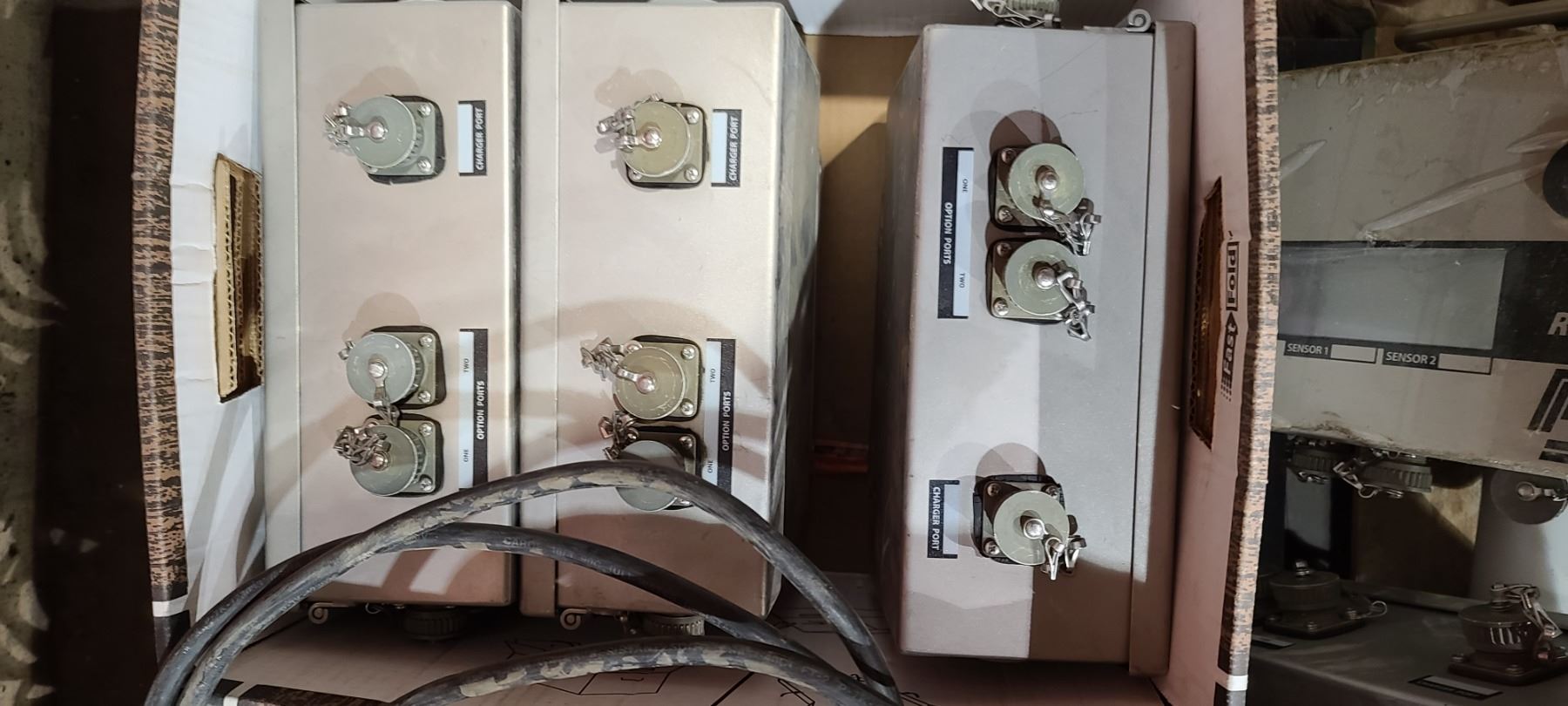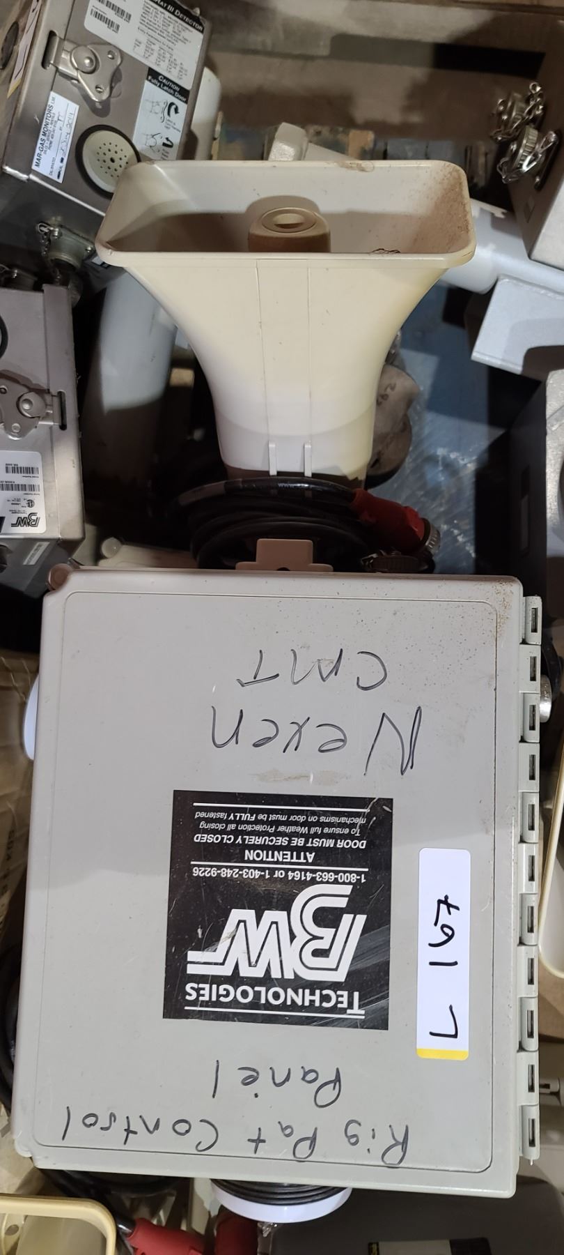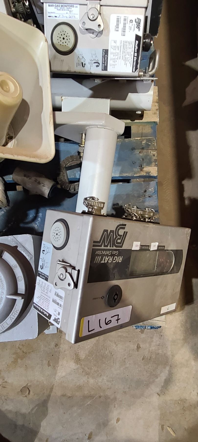 ASSORTED GAS DETECTORS QTY 7, CONTROL PANELS, OUTLET BOX, SOLAR PANEL