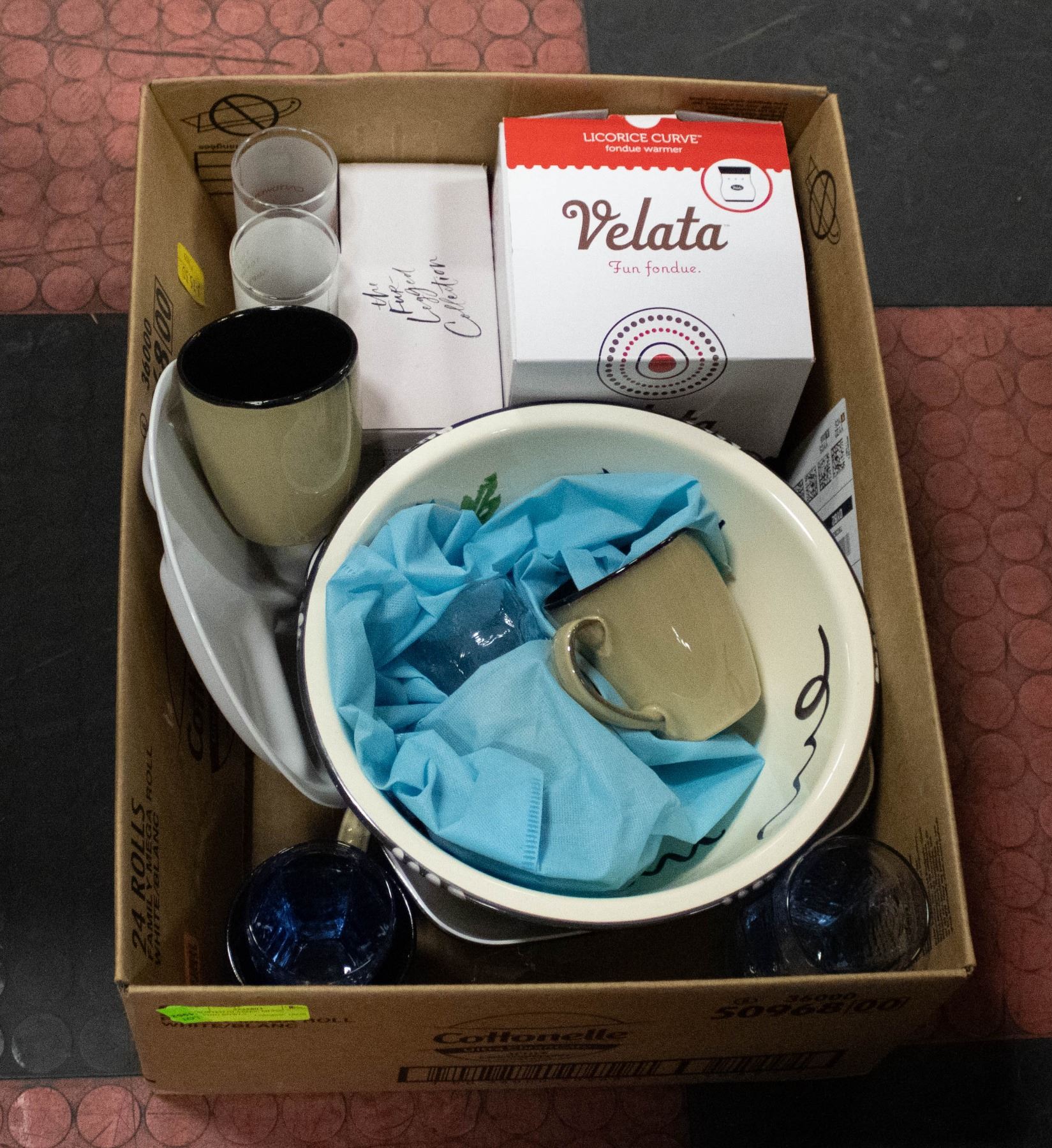 ASSORTED GLASSES, MUGS, + SERVING BOWLS