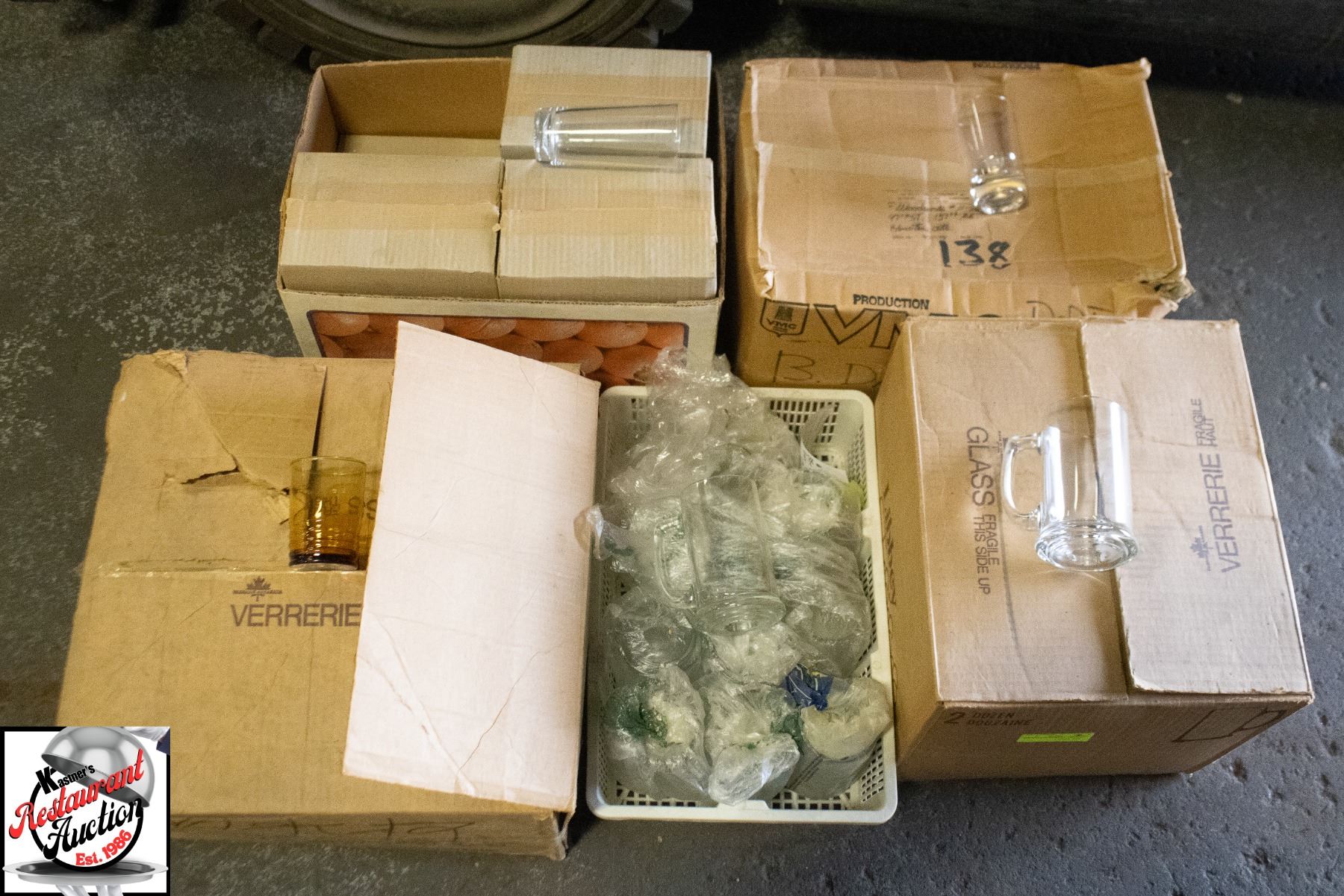 35 - 12 OZ GLASS BEER STIENS, 42 - 7X6 PACK PLAIN TALL COLLINS, 30 - 6X6+2 PLAIN SHORT COLLINS, 23 - SHORT AMBER HIGH BALL, 42 - 2 OZ APERTIF GLASS