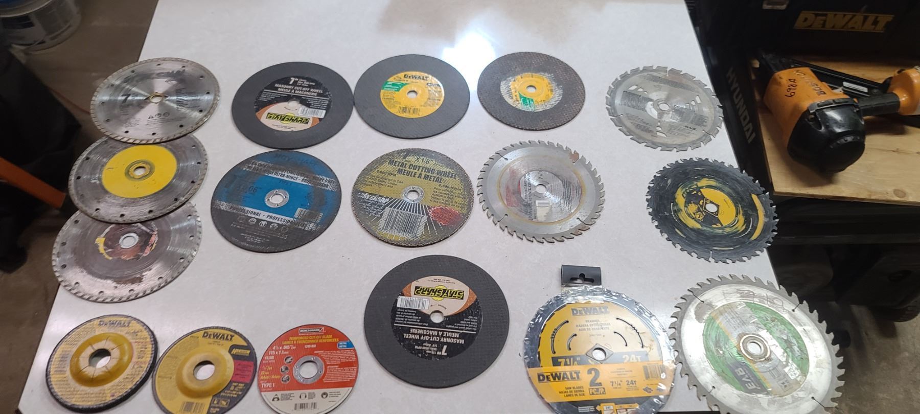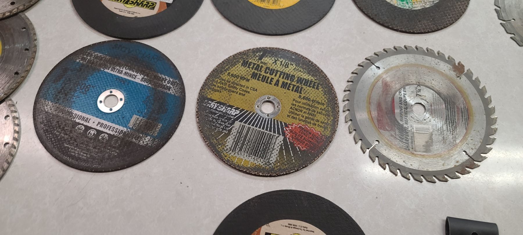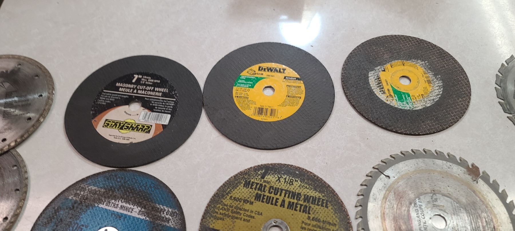 ASSORTED GRINDER WHEELS AND SAW BLADES