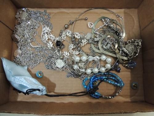 ASSORTED GROUP SILVER TONE LADYS JEWELRY ALL NECKLACES. AS SHOWN. VIEW PICTURE FOR DETAIL.