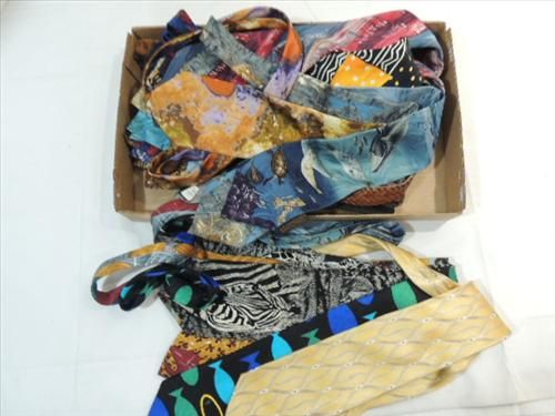 ASSORTED GROUP VINTAGE 1970S MEN'S NECKTIES & SUSPENDERS. WILD COLORS AND STYLES. AS SHOWN. VIEW PICTURE FOR DETAIL.