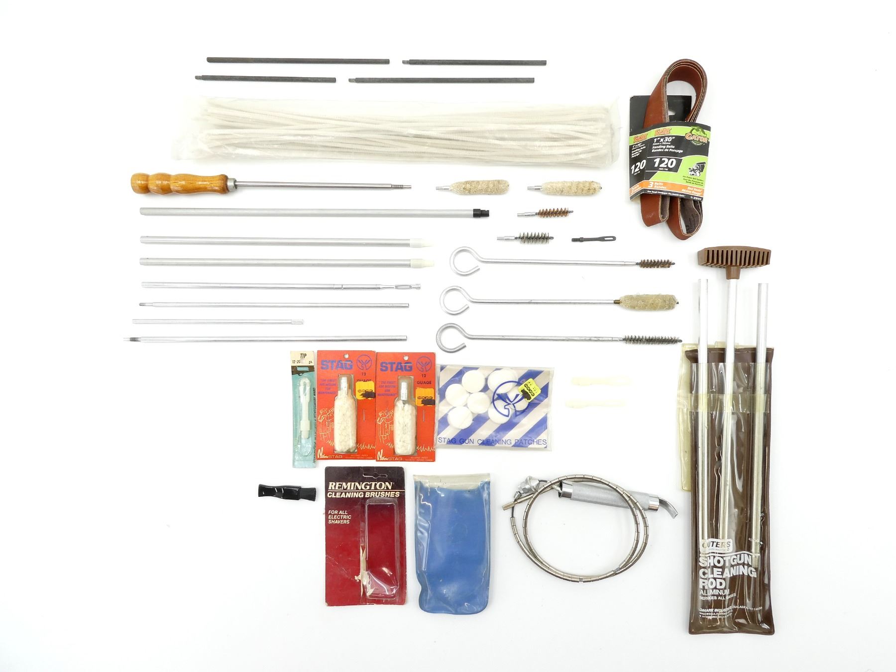 LOT INCLUDES; (18) ROD PIECES, (3) JAGS, (5) MOPS, (4) BRUSHES, (1) PACK OF PATCHES, ETC. SEE PHOTOS.