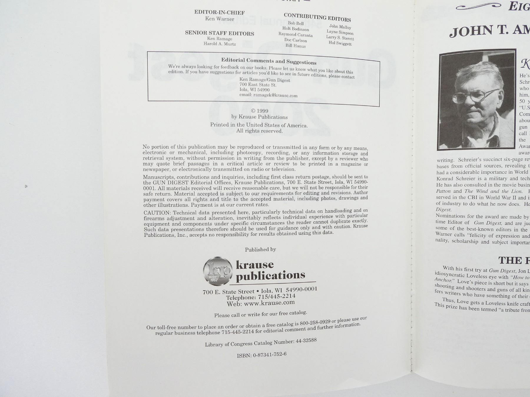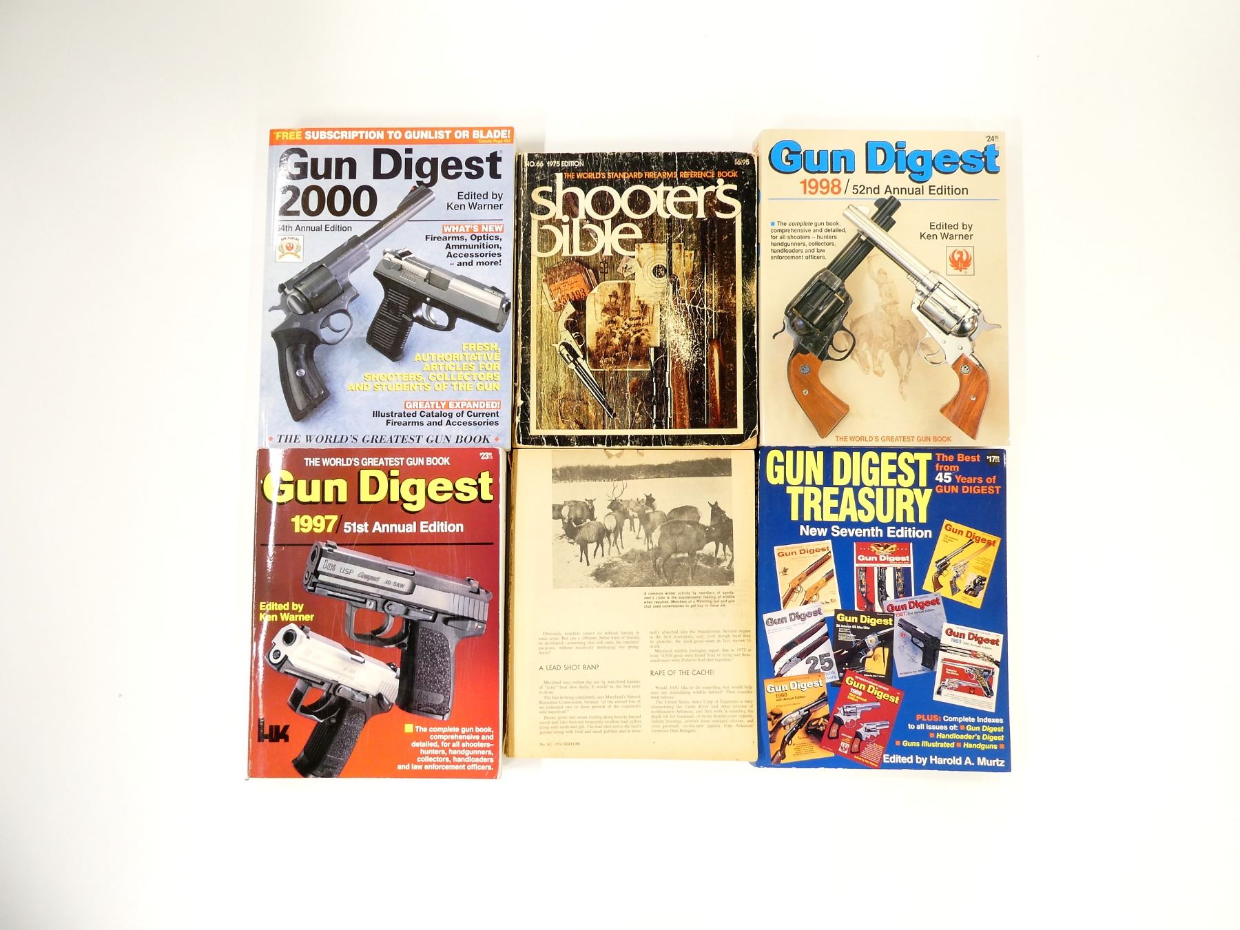 SOFT COVERS, LOT INCLUDES; (3) "GUN DIGEST" CATALOGUES, (1) "GUN DIGEST TREASURY" CATALOGUE & (2) "SHOOTER'S BIBLE" CATALOGUES, SERIES NOT COMPLETE / SOME ISSUES MISSING / MAY CONTAIN DUPLICATES. SEE PHOTOS.