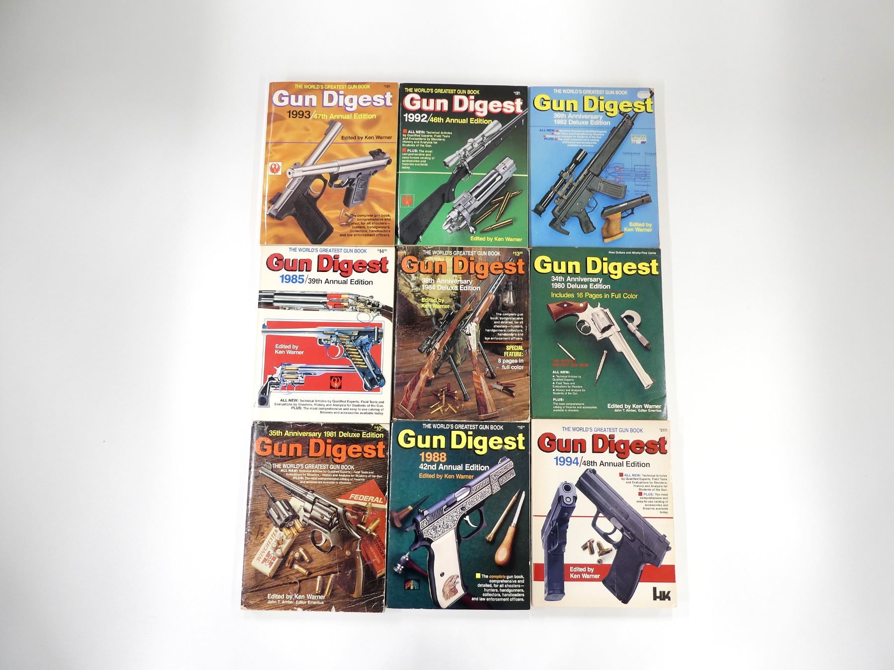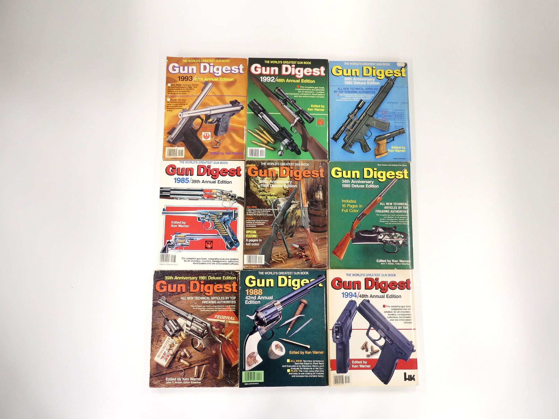 EDITED KEN WARNER, SOFT COVERS, LOT INCLUDES; (1) "36TH ANNIVERSARY", ISBN: 0-910676-26-7, 1982 DELUXE EDITION, (1) " 38TH ANNIVERSARY", ISBN: 0-910676-57-7, 1984 DELUXE EDITION, (1) "46TH ANNUAL EDITION", ISBN: 0-87349-117-3, 1992, (1) "42ND ANNUAL EDITION", ISBN: 0-87349-010-X, 1988, "39TH ANNUAL EDITION", ISBN: 0-910676-75-5, 1985, (1) "47TH ANNUAL EDITION", ISBN: 0-87349-131-9, 1993, (1) "48TH ANNUAL EDITION", ISBN: 0-87349-141-6, 1994, (1) "35TH ANNUAL" EDITED BY KEN WARNER AND JOHN T. AMBER, ISBN: 0-910676-09-7, 1981 DELUXE EDITION & (1) "34TH ANNIVERSARY" EDITED BY KEN WARNER AND JOHN T. AMBER, ISBN: 0-695-81309-9, 1980 DELUXE EDITION. SEE PHOTOS.