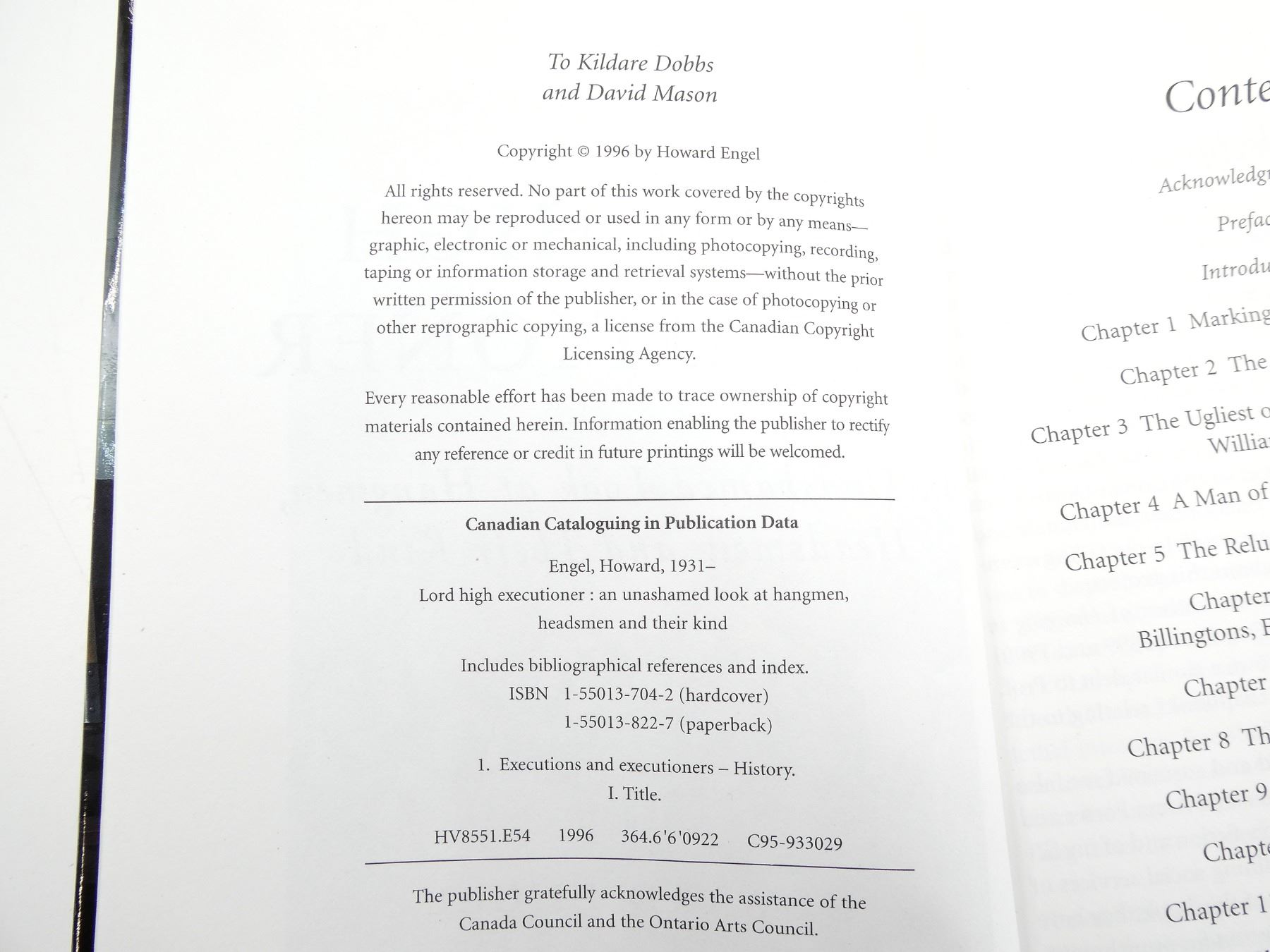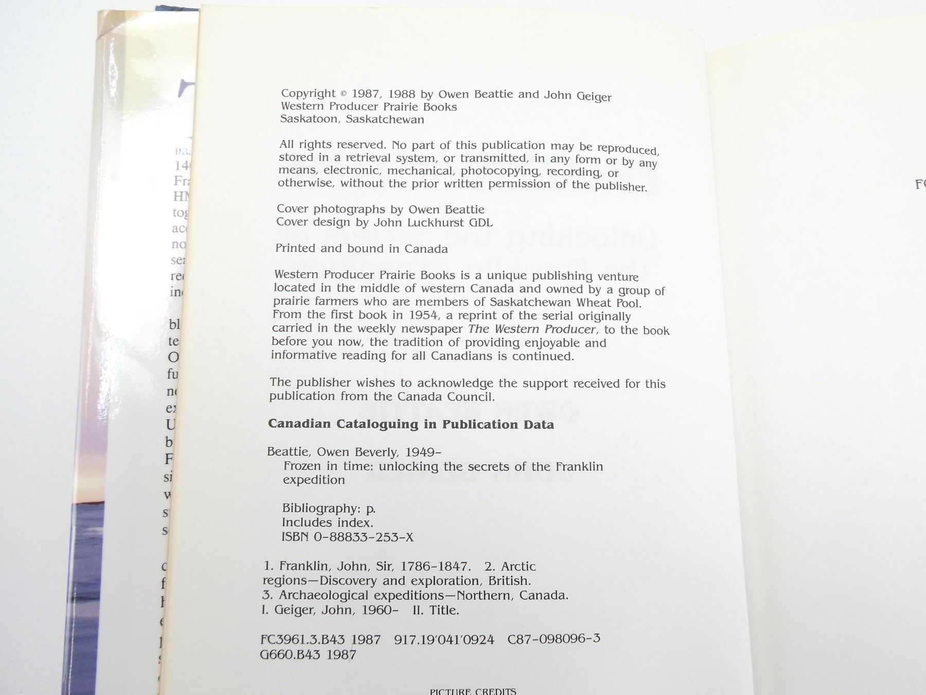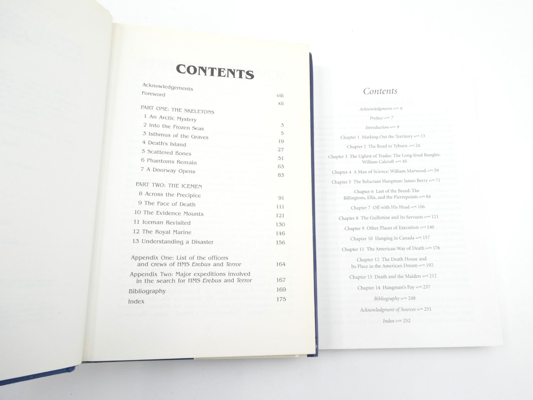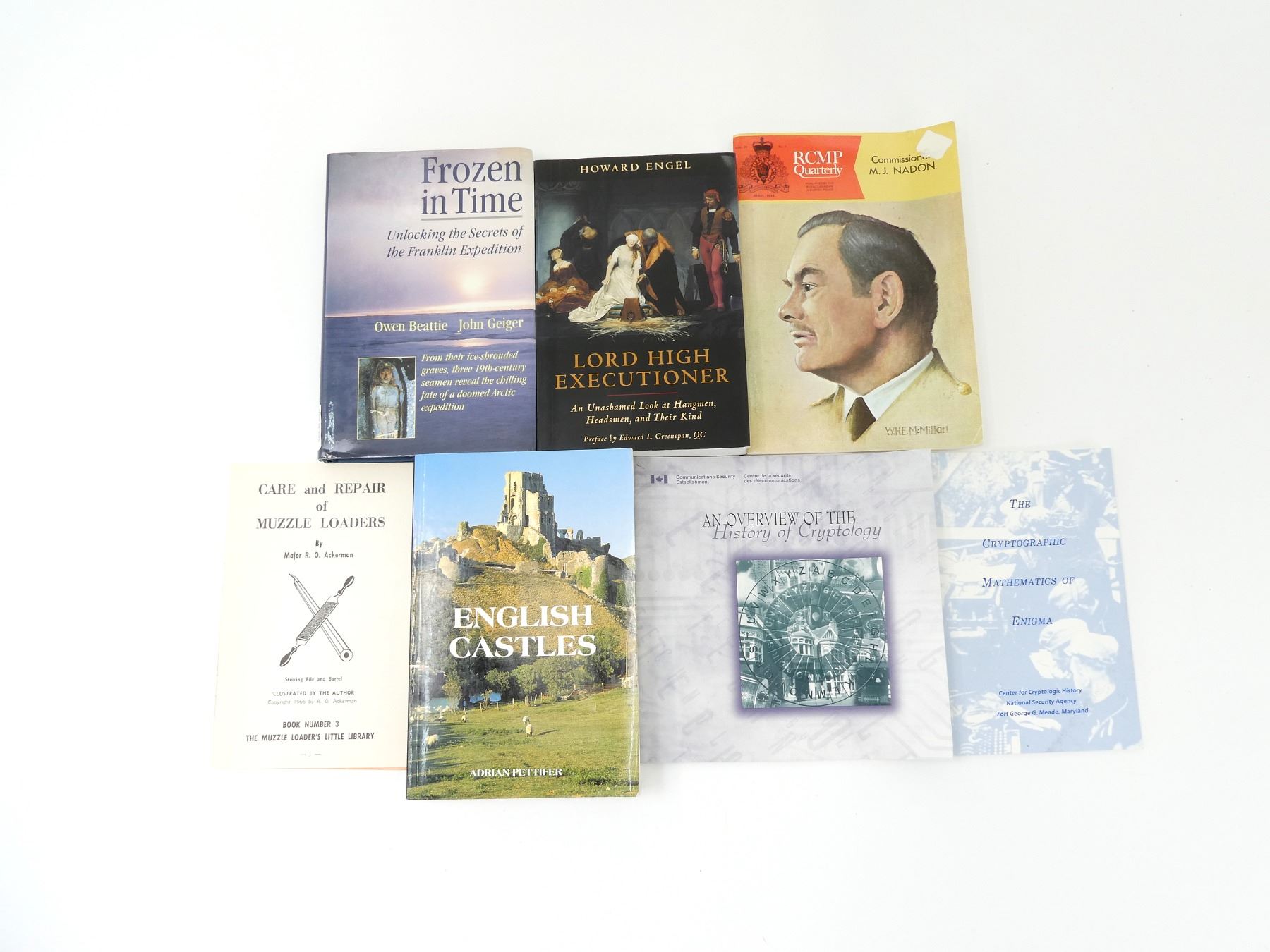 LOT INCLUDES; (1) "CARE AND REPAIR OF MUZZLE LOADERS, BOOK 3, THE MUZZLE LOADER'S LITTLE LIBRARY" BOOK BY R.O. ACKERMAN, SOFT COVER, (1) "RCMP QUARTERLY, APRIL 1974" BOOKLET, SOFT COVER, (1) "LORD HIGH EXECUTIONER, AN UNASHAMED LOOK AT HANGMEN, HEADSMEN, AND THEIR KIND" BOOK BY HOWARD ENGEL, SOFT COVER, ISBN: 1-55013-822-7, (1) "FROZEN IN TIME, UNLOCKING THE SECRETS OF THE FRANKLIN EXPEDITION" BOOK BY OWEN BEATTIE & JOHN GEIGER, HARD COVER WITH DUST COVER, ISBN: 0-88833-253-X, ETC. SEE PHOTOS.