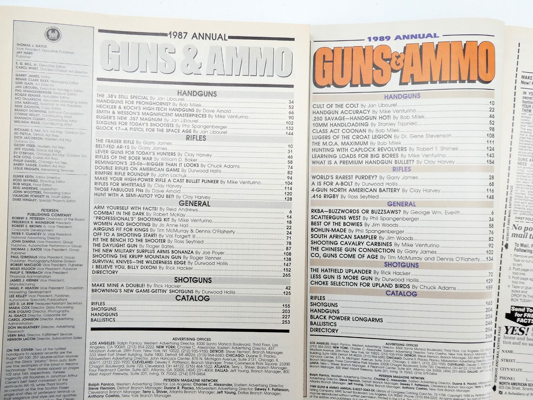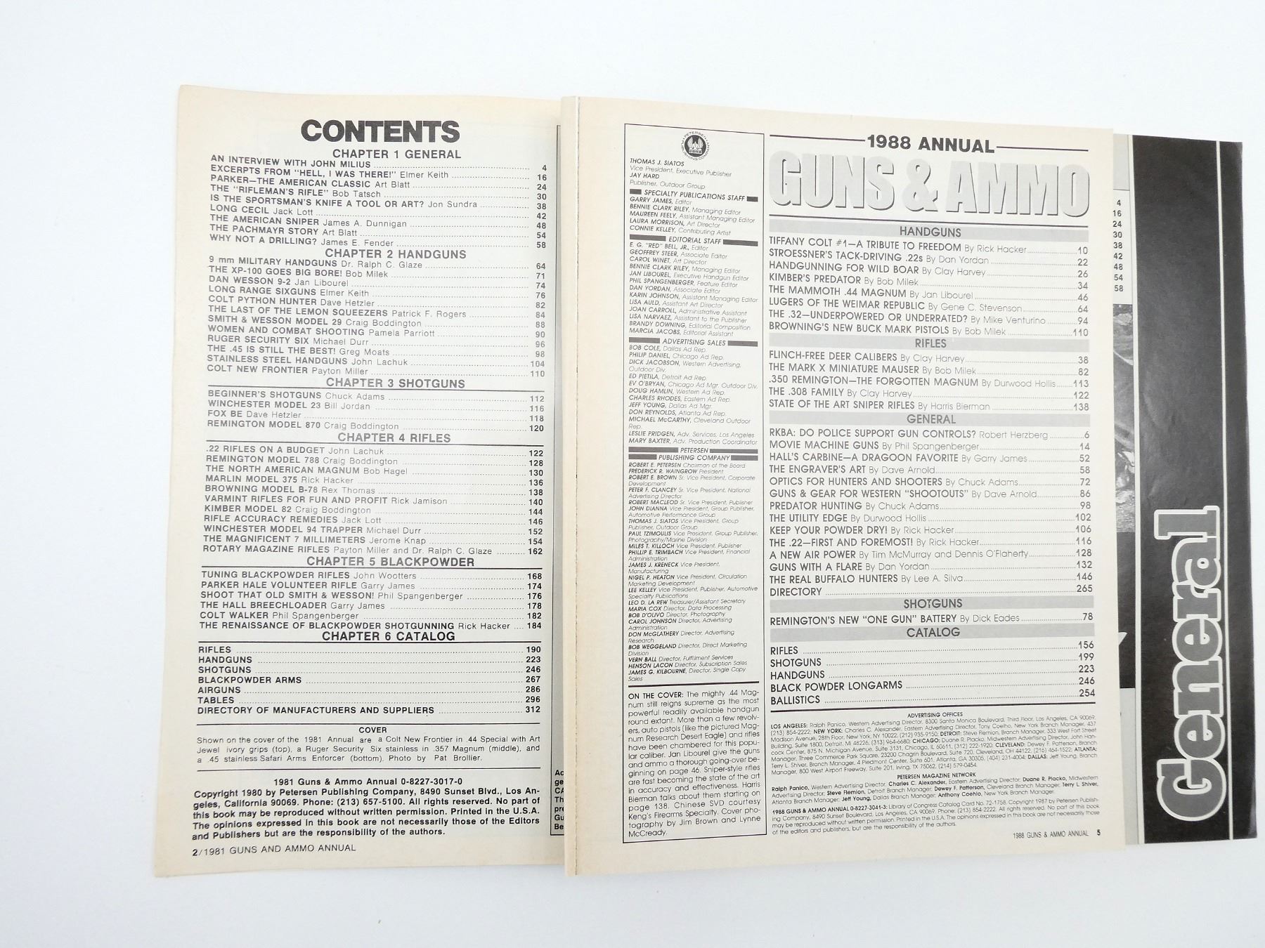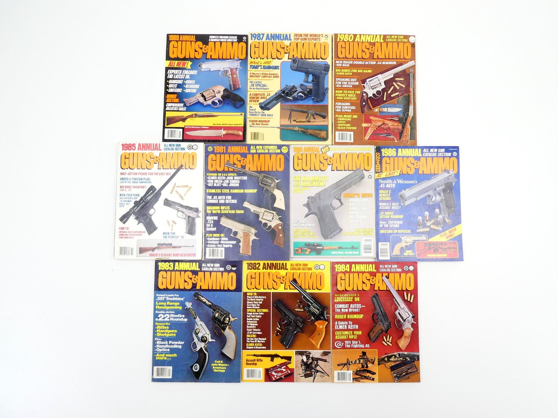 SOFT COVERS, LOT INCLUDES; (10) "GUNS & AMMO" ANNUAL CATALOGUES FROM 1980 TO 1989, SERIES NOT COMPLETE / SOME ISSUES MISSING / MAY CONTAIN DUPLICATES. SEE PHOTOS.