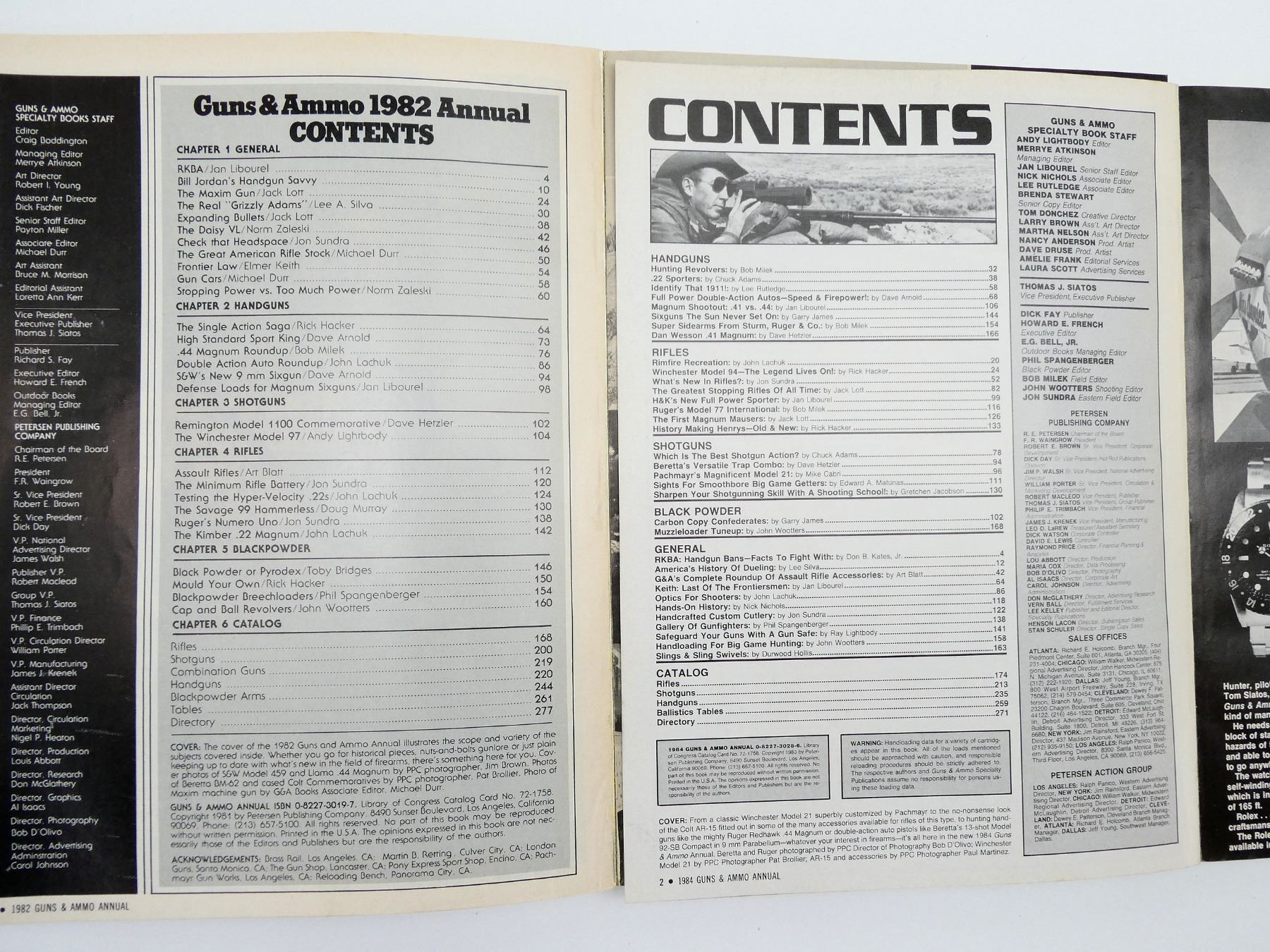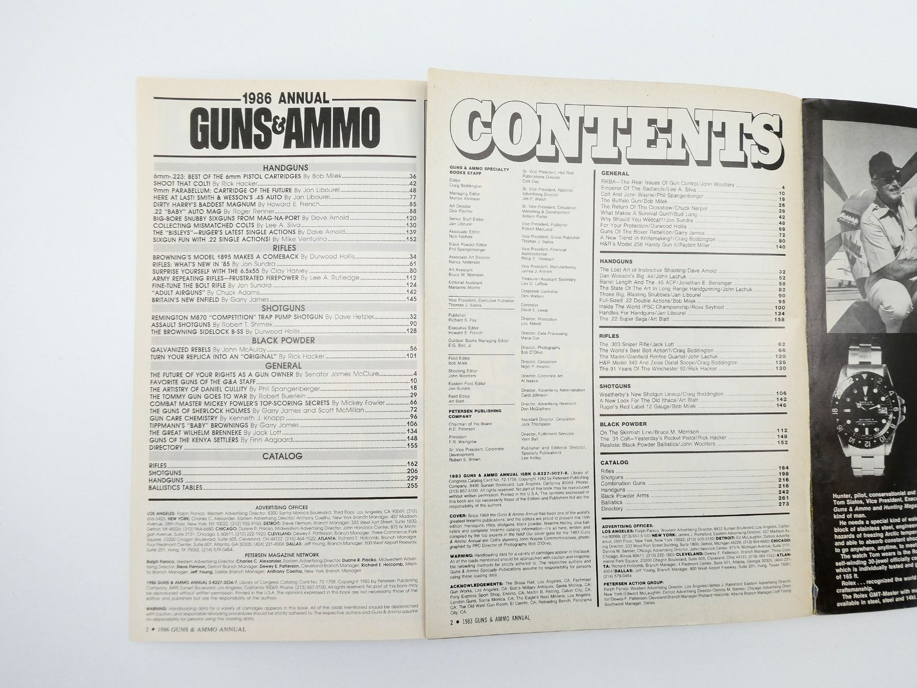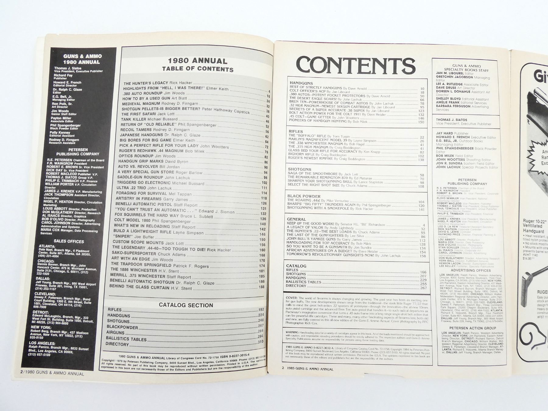 SOFT COVERS, LOT INCLUDES; (10) "GUNS & AMMO" ANNUAL CATALOGUES FROM 1980 TO 1989, SERIES NOT COMPLETE / SOME ISSUES MISSING / MAY CONTAIN DUPLICATES. SEE PHOTOS.
