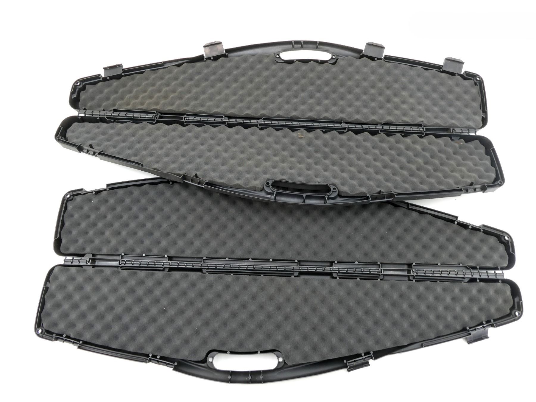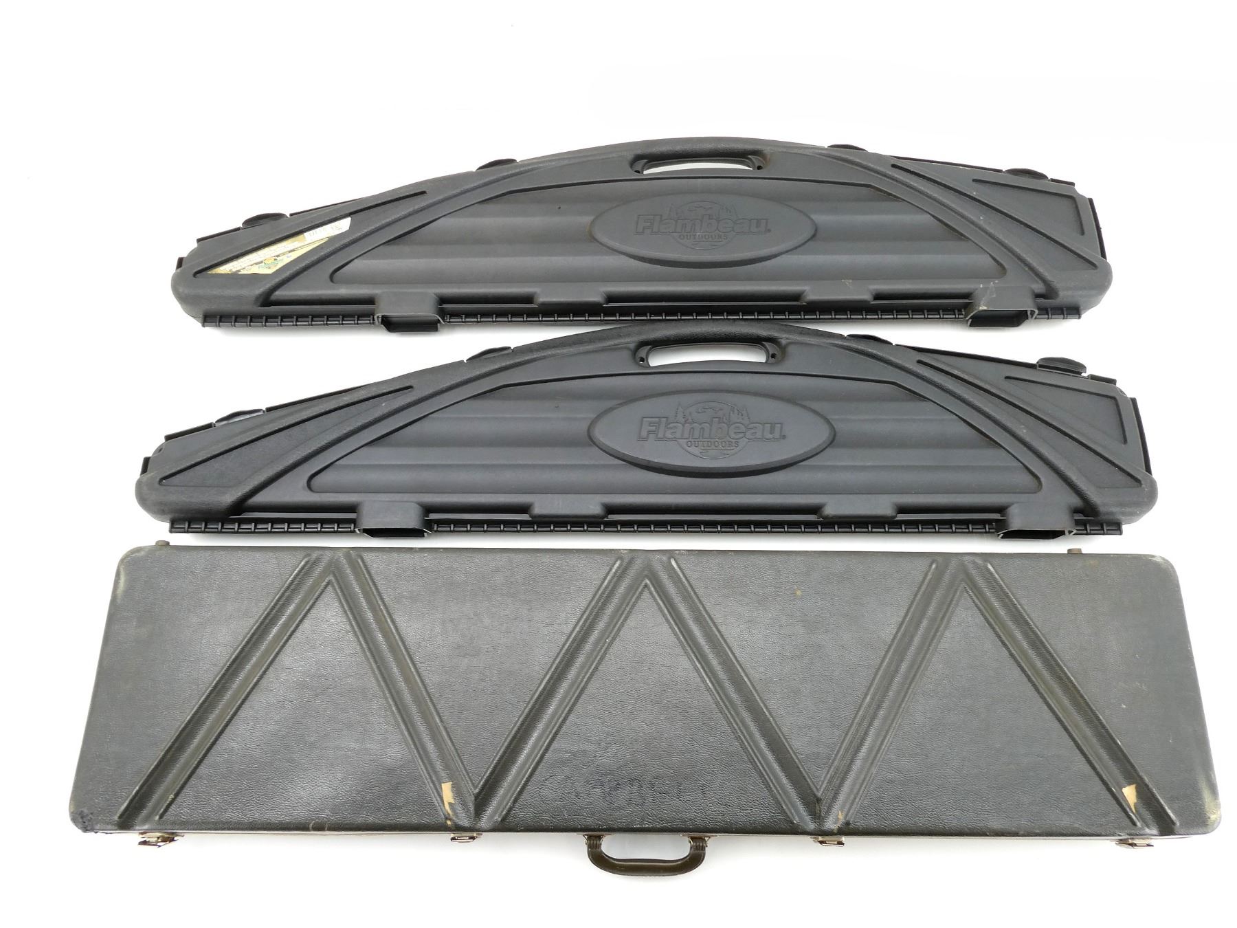 LOT INCLUDES; (3) HARD PADDED GUN CASES, CARRY HANDLES, (4) LATCHES, (2) ARE LOCKING WITH NO KEYS, APPROX. OVERALL LENGTH 50"-51", SHOWS WEAR AND TEAR FROM USAGE, SEE PHOTOS.