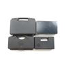 ASSORTED HARD PISTOL CASE LOT. LOT OF 4: (1) BERETTA BLACK, FORMED PLASTIC INTERIOR, U22 NEOS; (1) BERETTA NAVY, PADDED, U22 NEOS, ORIGINAL BOX; (1) STI INTERNATIONAL BLACK, FOAM PADDED, 7"X13" APPROX.; (1) STOEGER BLACK, FOAM PADDED, SN # M698952, SEE PHOTOS