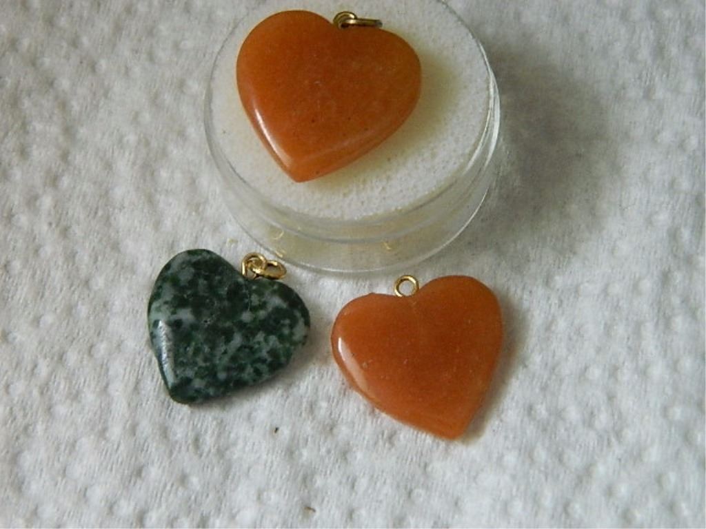 ASSORTED HEART PENDANTS - JASPER GEMSTONE - 3 TTL
